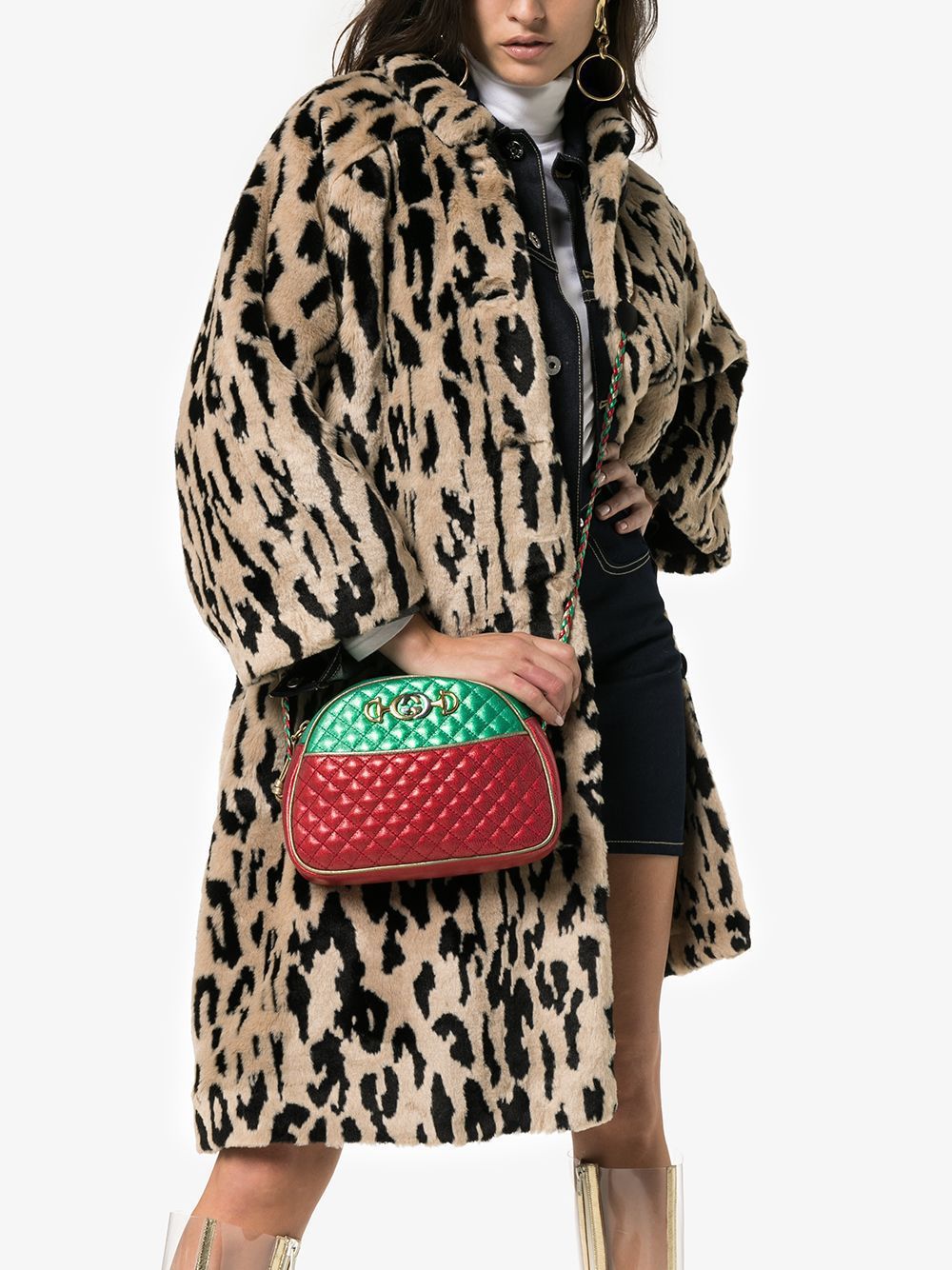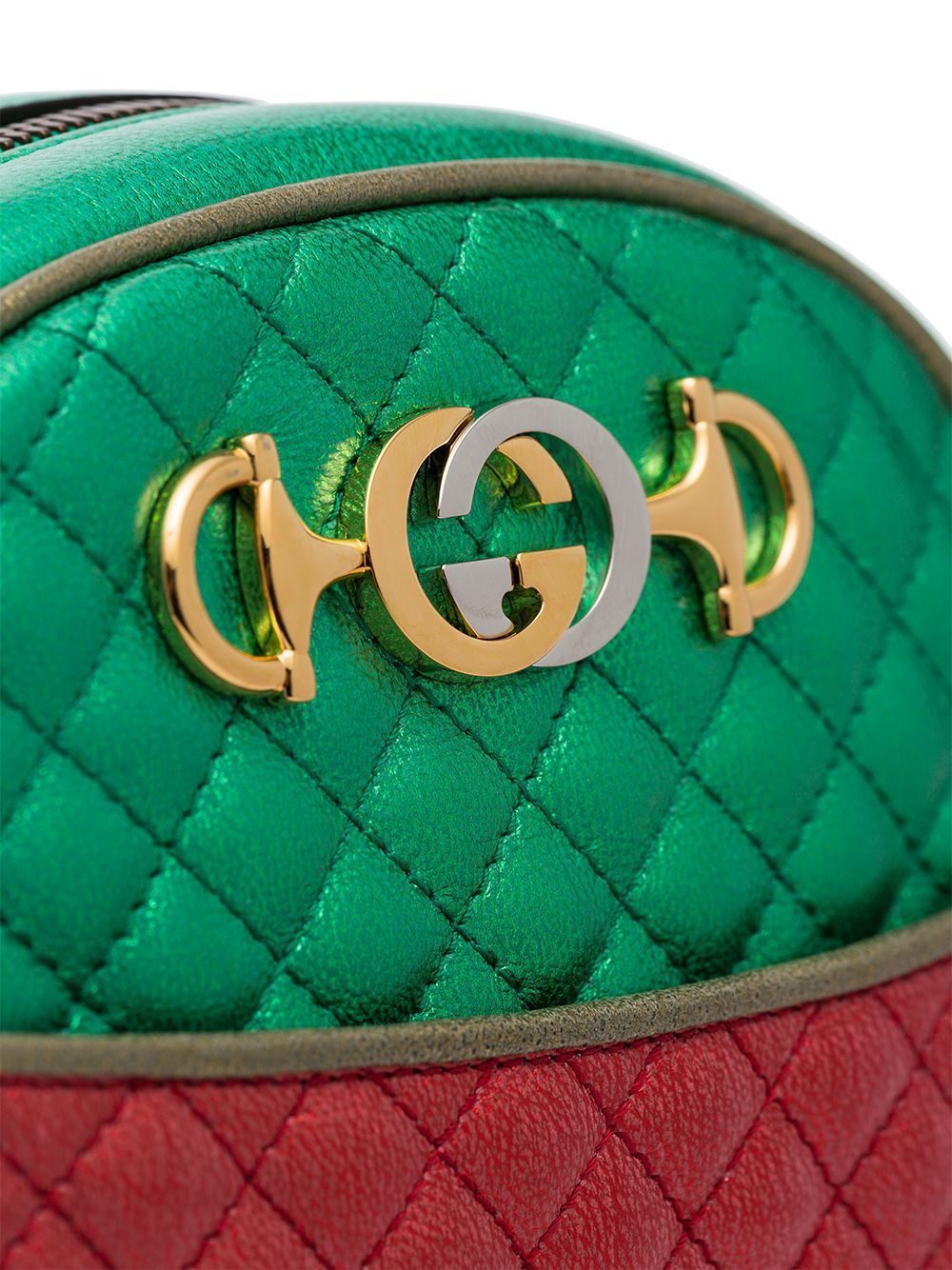 تتميز مجموعة غوتشي لخريف وشتاء 2018 بمزيج انتقائي من المواضيع، إلا أن السمة الأبرز لهذه التشكيلة هي شغف العلامة الواضح بالشعارات ومزجها الفني للألوان. صُنعت هذه الحقيبة المبطنة "ترابونتاتا" من الجلد المعدني باللون الذهبي والأحمر والأخضر، وهي تُحمل عبر الجسم من غوتشي، وتتميز بحزام كتف على شكل سلسلة، وسحاب للإغلاق، وتصميم منحني، وشعار G المتشابك المميز.
