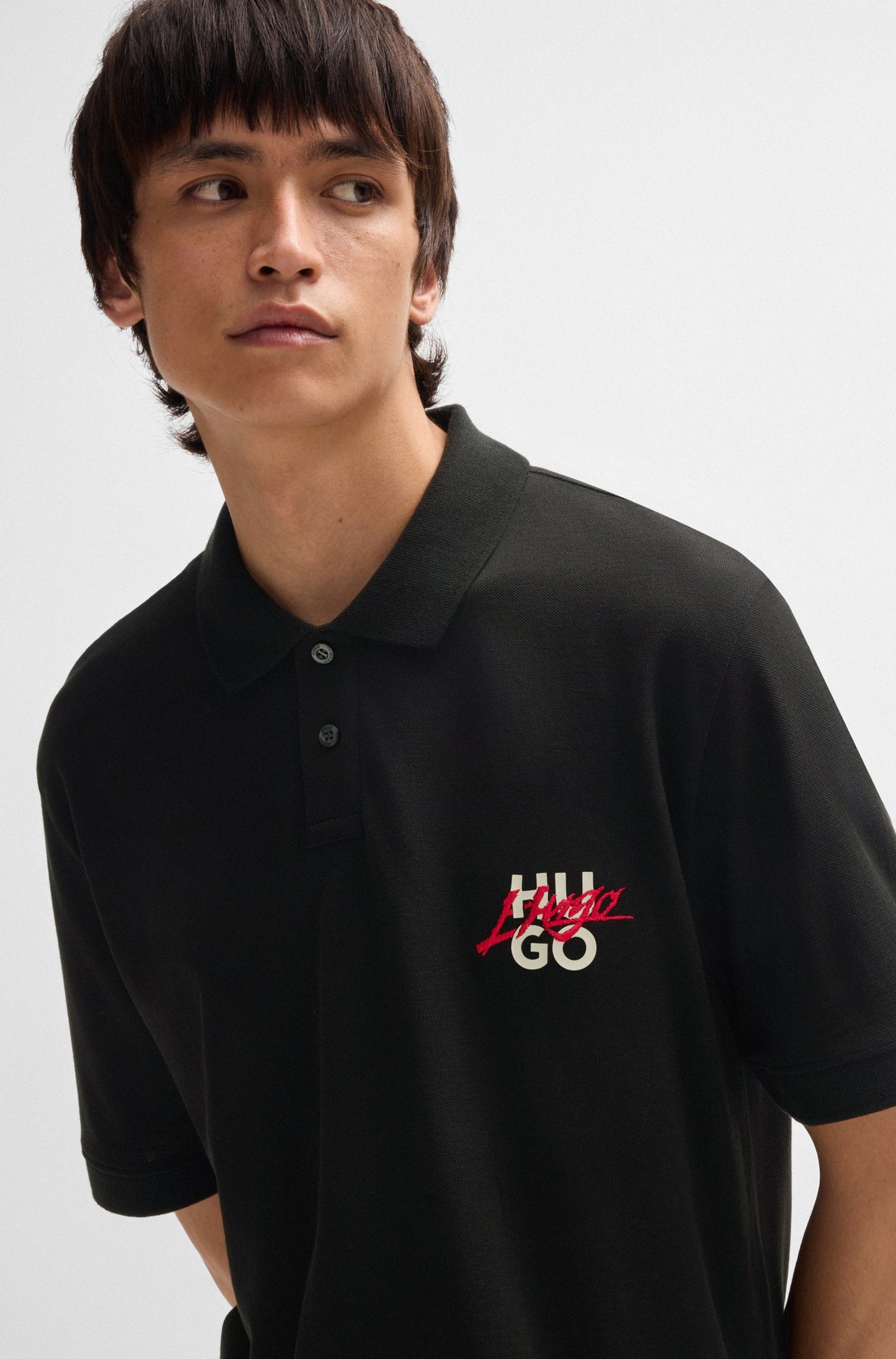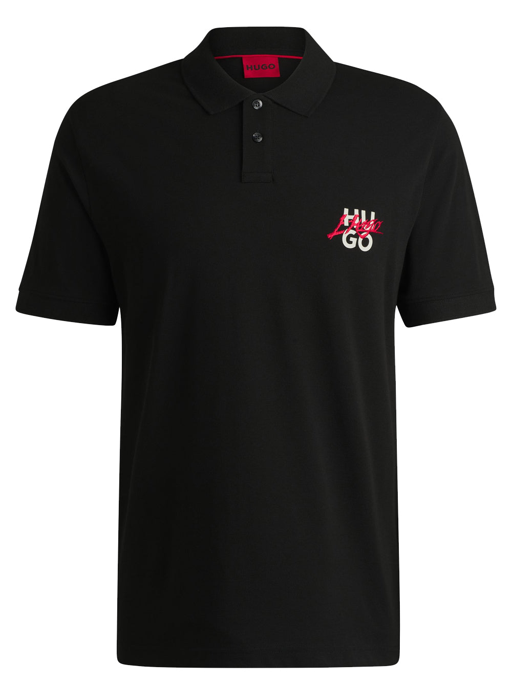 قميص بولو جرافيكي بشعار HUGO Dalogpolo باللون الأسود