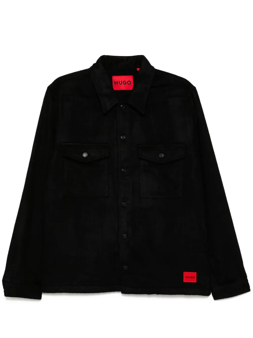 قميص Enalu أسود بأكمام طويلة ومقاس كبير وشعار HUGO