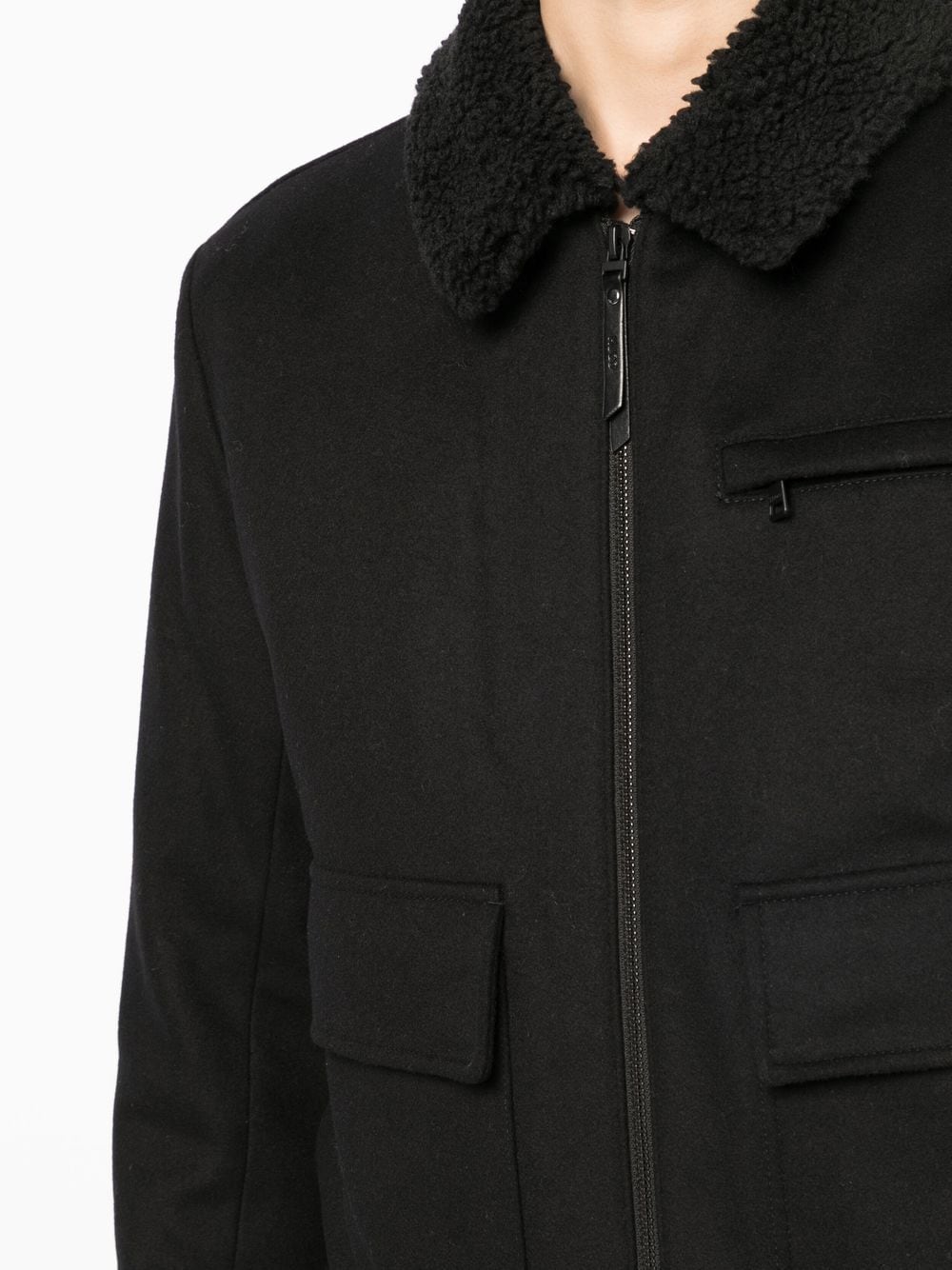 جاكيت HUGO من الصوف البكر بياقة من الفرو باللون الأسود