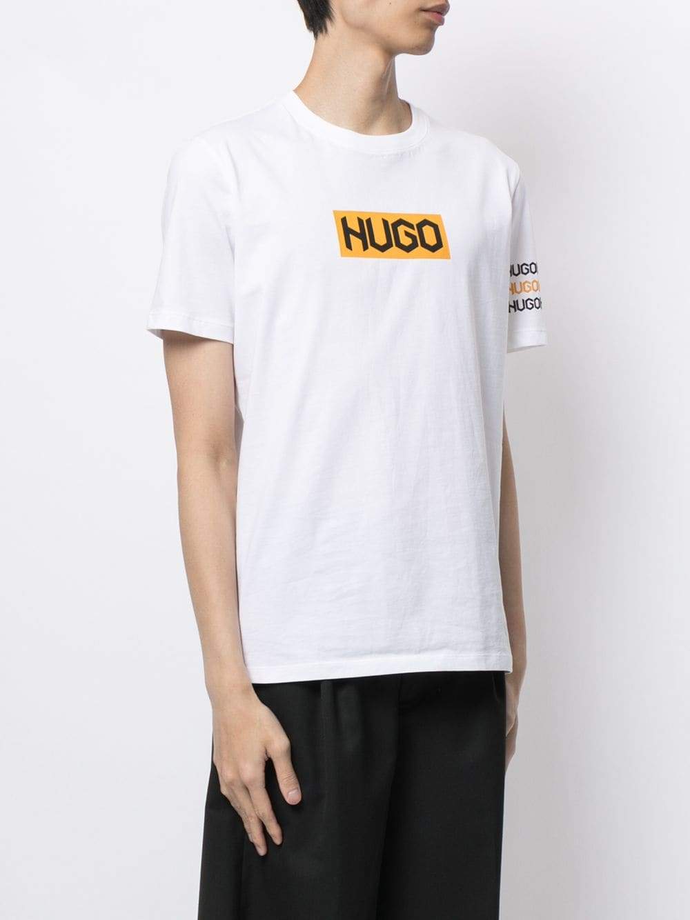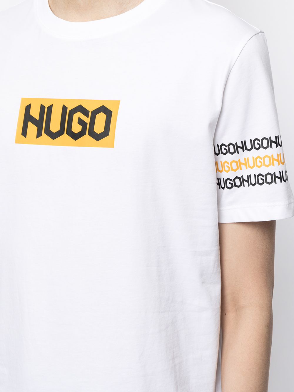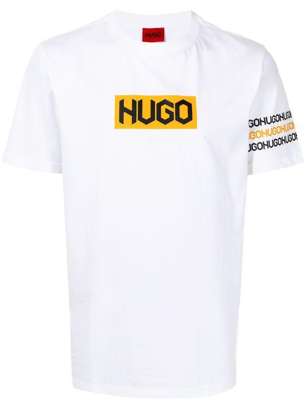 تي شيرت أبيض مطبوع عليه شعار إطارات هوجو