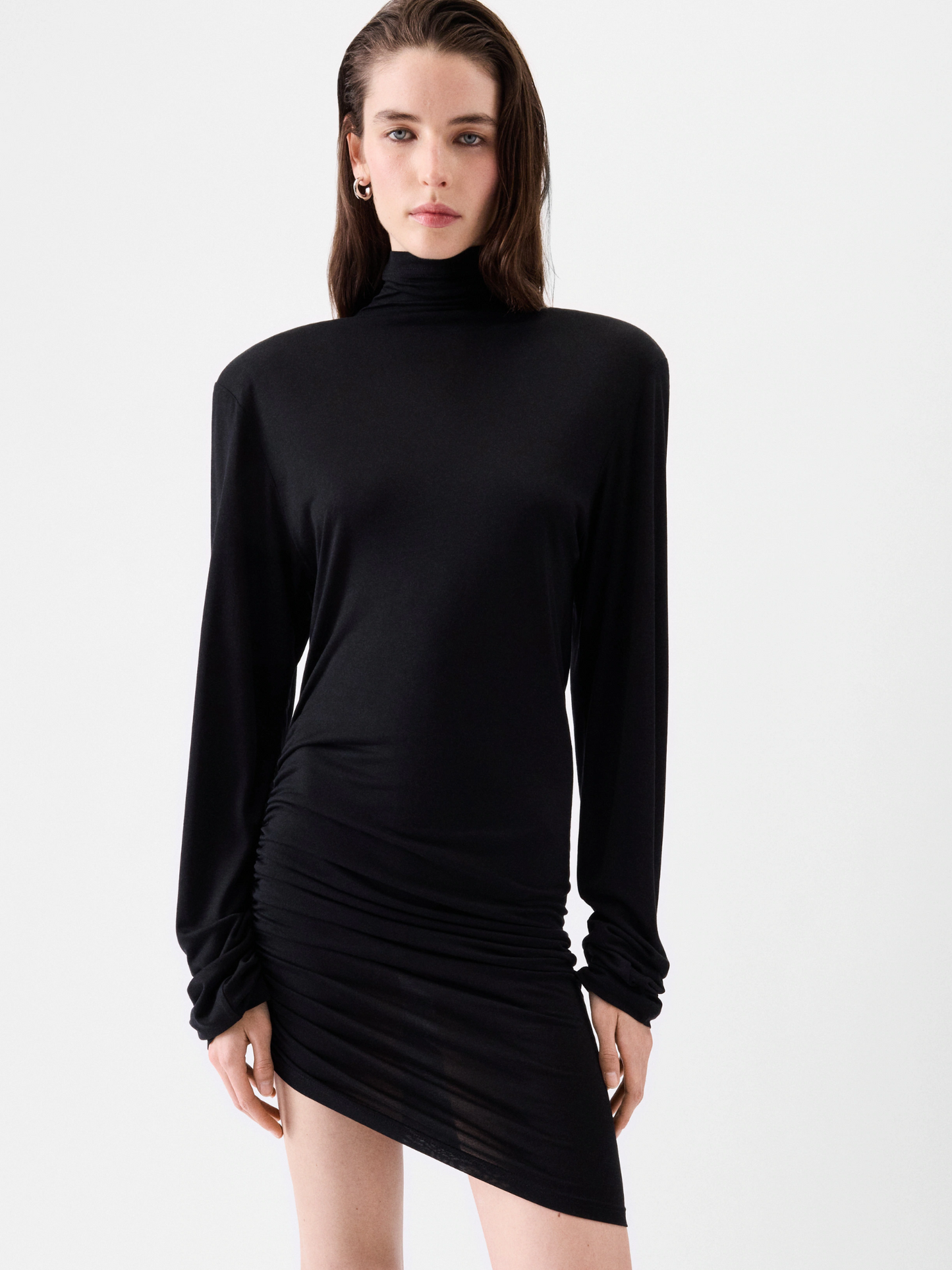 JACQUEMUS WOMEN The Spallina Draped Turtleneck Dress Black