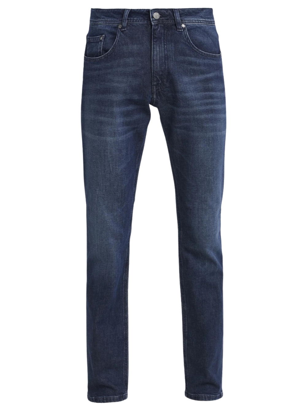 بنطال جينز مستقيم الساق متوسط الارتفاع أزرق داكن