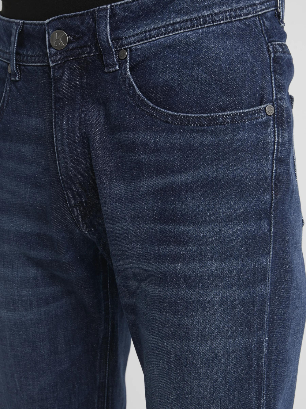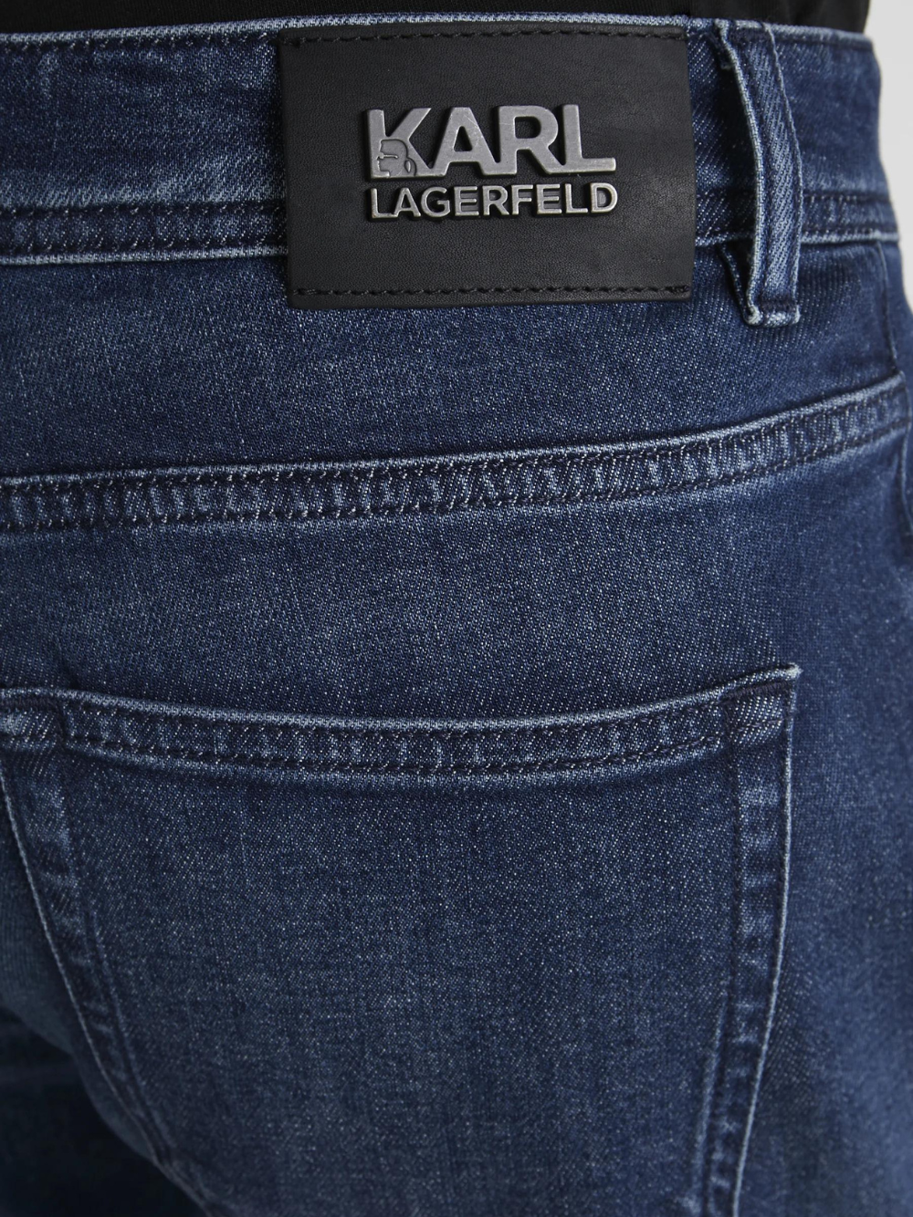 بنطلون جينز كارل لاغرفيلد متوسط الارتفاع وذو ساق مستقيمة، أزرق داكن
