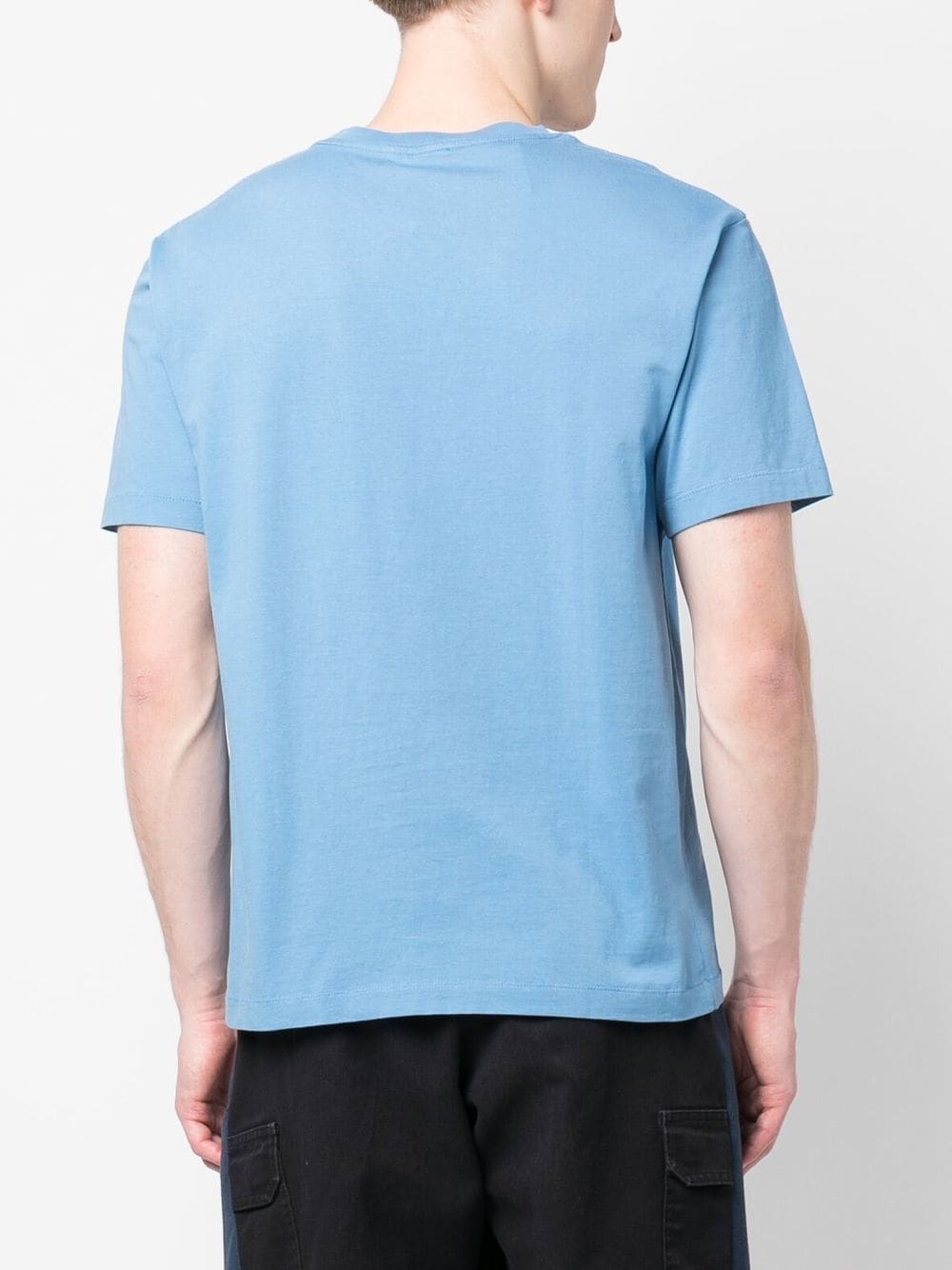 تي شيرت مزين بطبعة زهور بوكي من كينزو، مصنوع من القطن والجيرسيه المحبوك باللون الأزرق السماوي، مع نقش زهور بوكي المميز، وشعار مطرز على الصدر، ورقبة دائرية، وأكمام قصيرة، وحاشية مستقيمة.