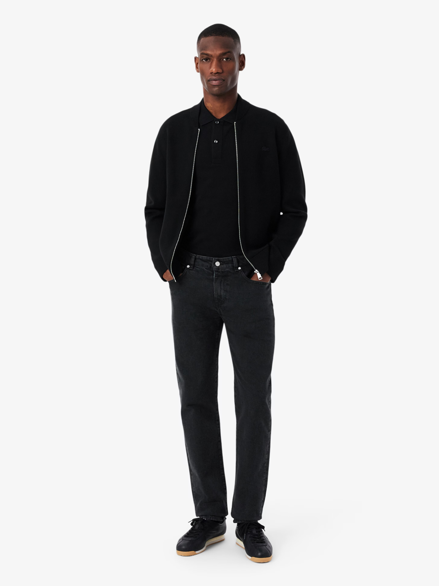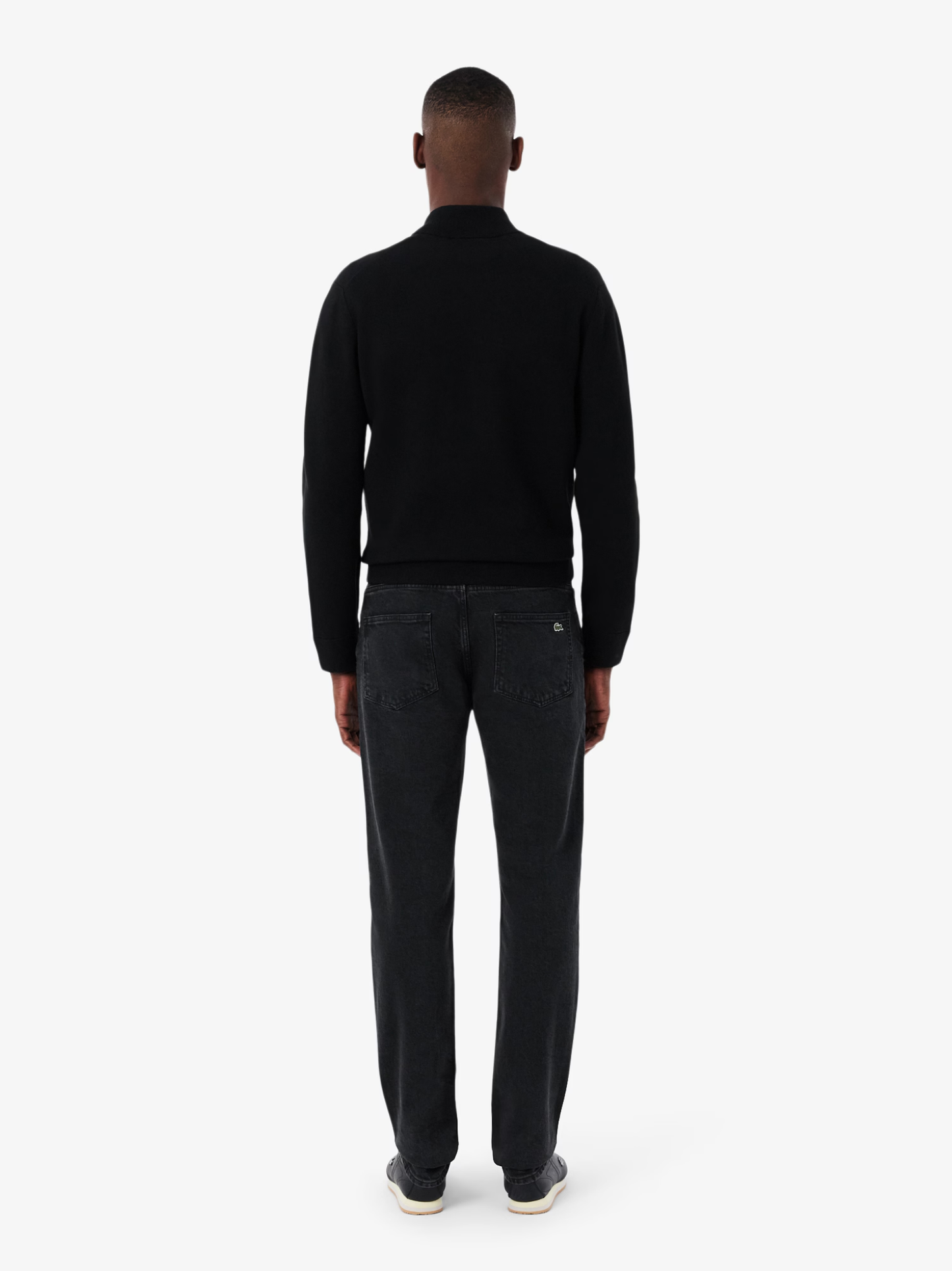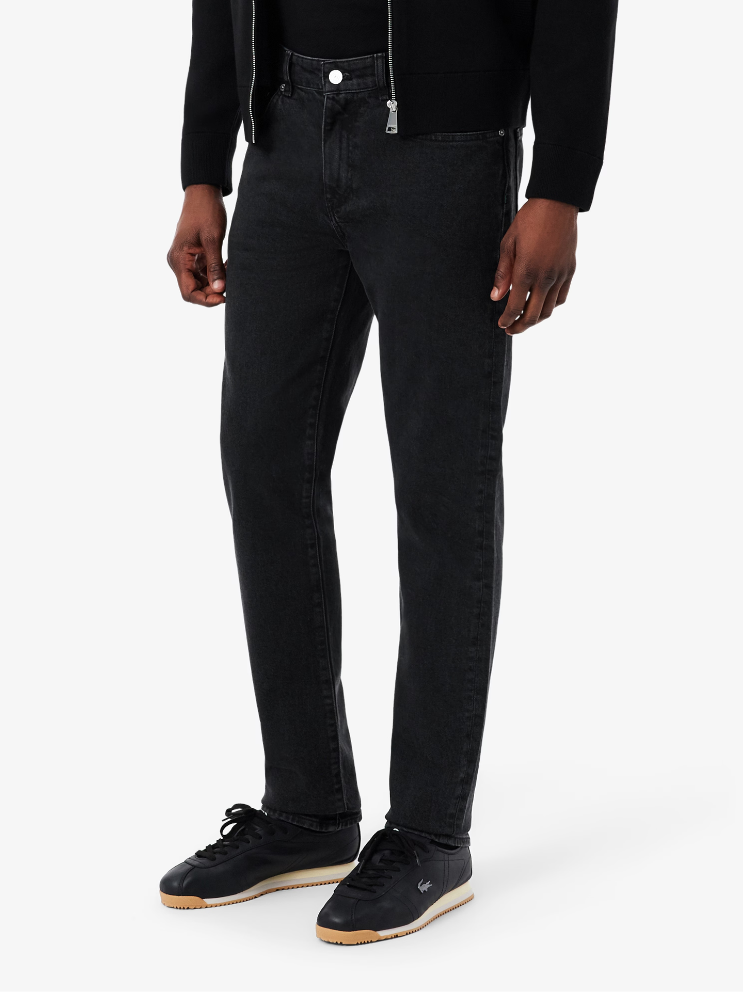 These jeans are a menswear essential, with a modern fitted cut and a comfortable stretch denim fabric. The classic five-pocket design is finished with classic Lacoste details: a rivet coated in our signature shade of green, topstitching features, and the print inside the pockets.