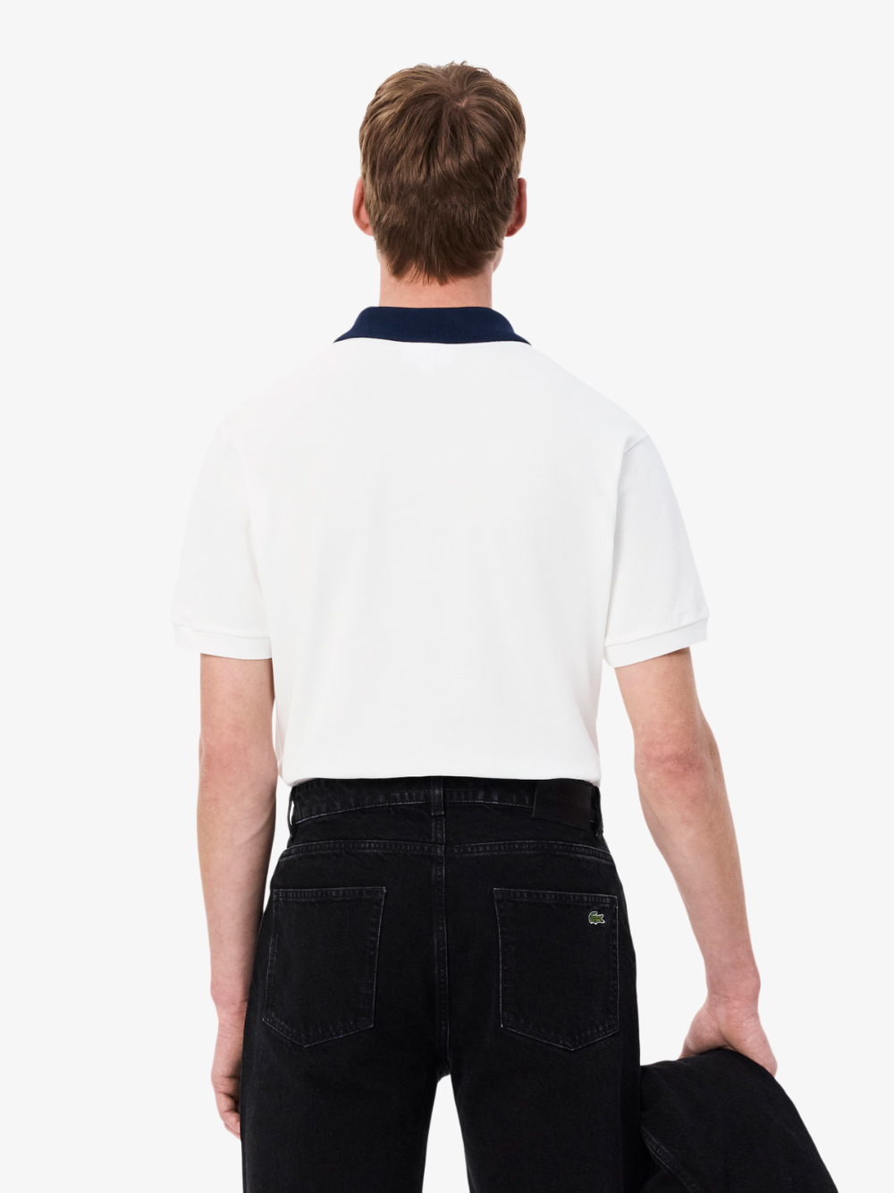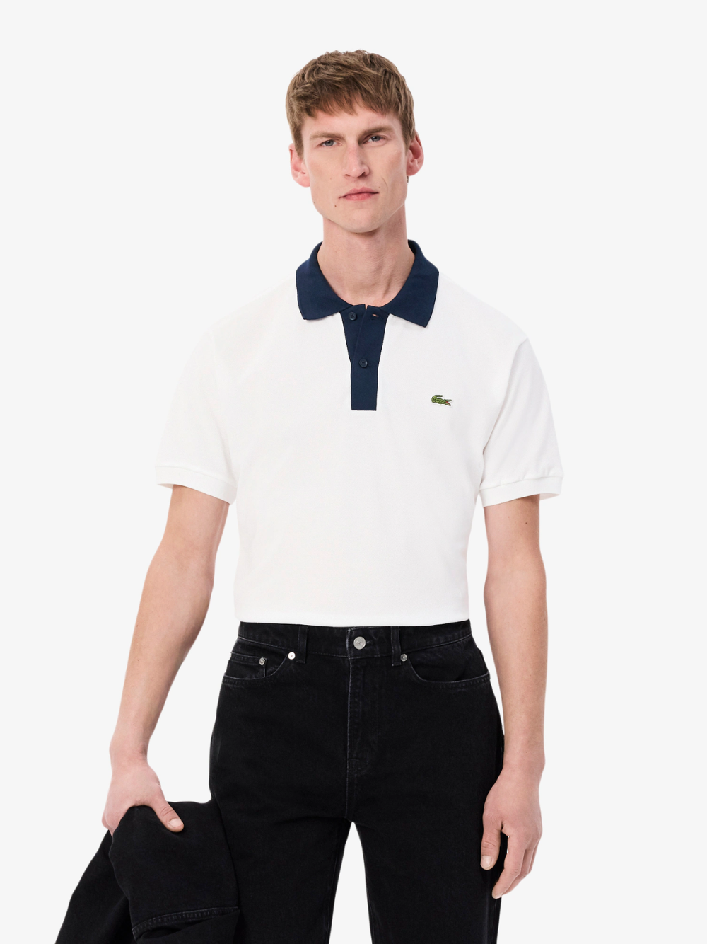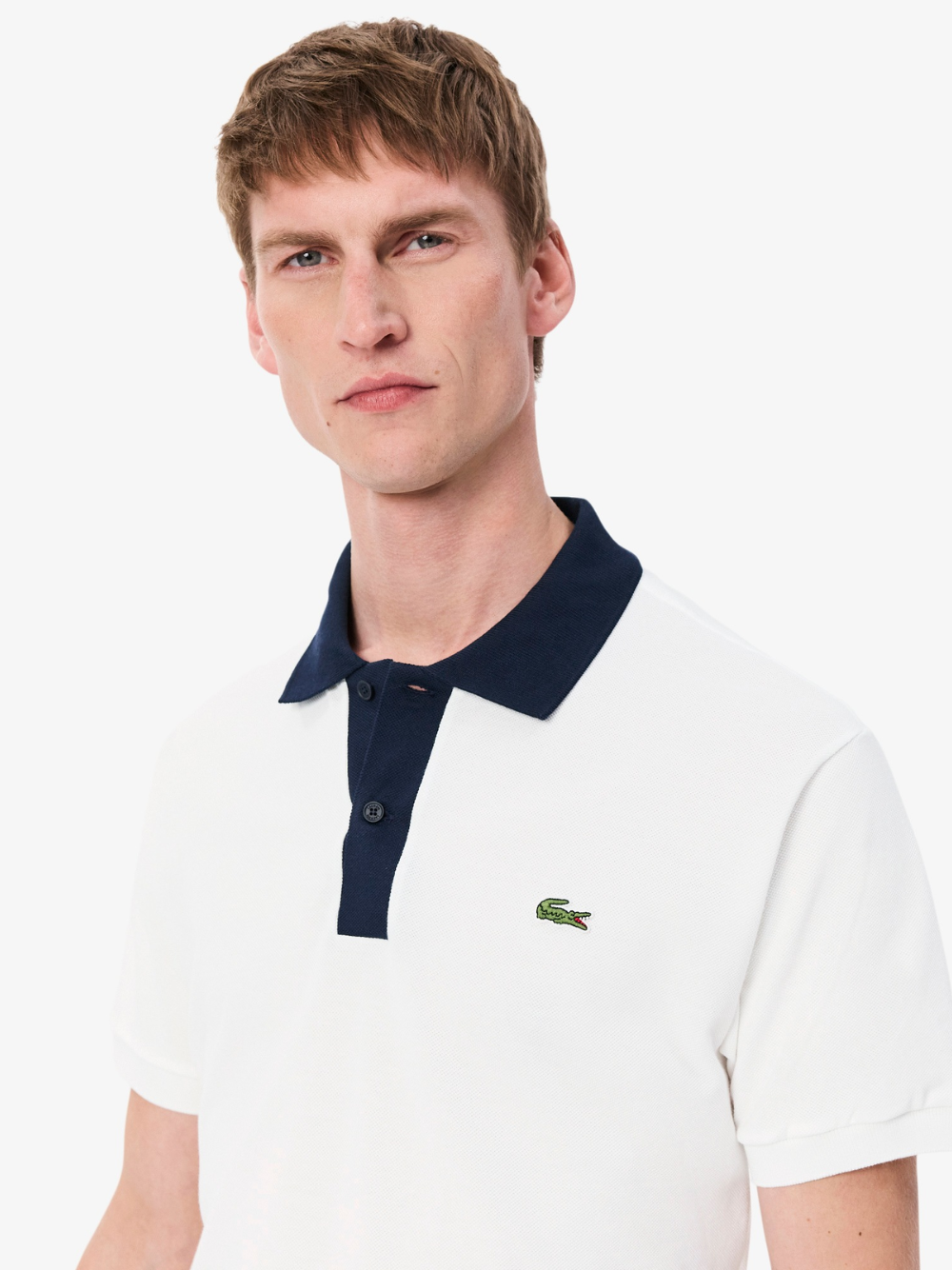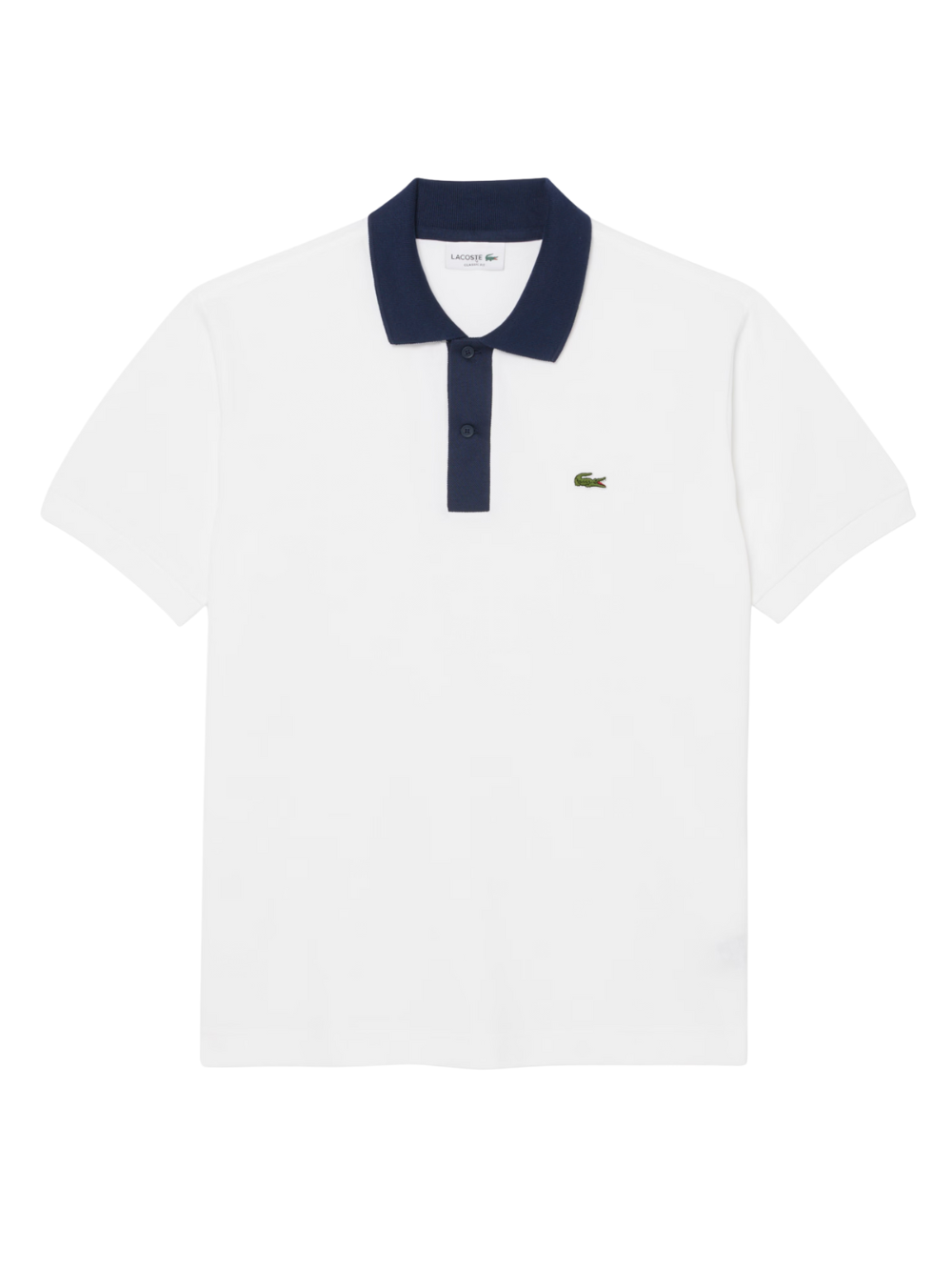 LACOSTE Classic Fit Contrast Collar L.12.12 Polo Shirt White/Navy