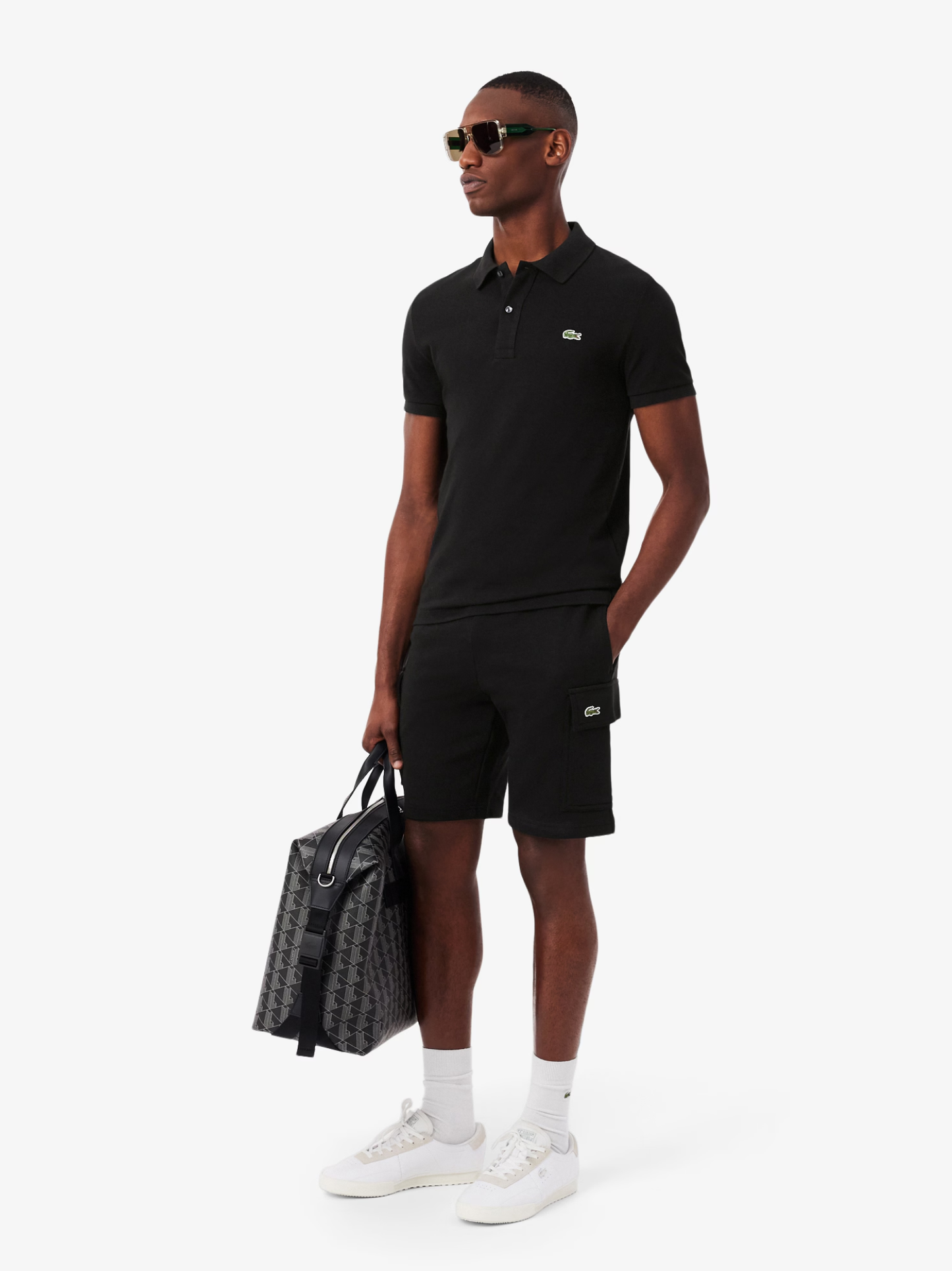 LACOSTE Cotton Fleece Cargo Shorts Black