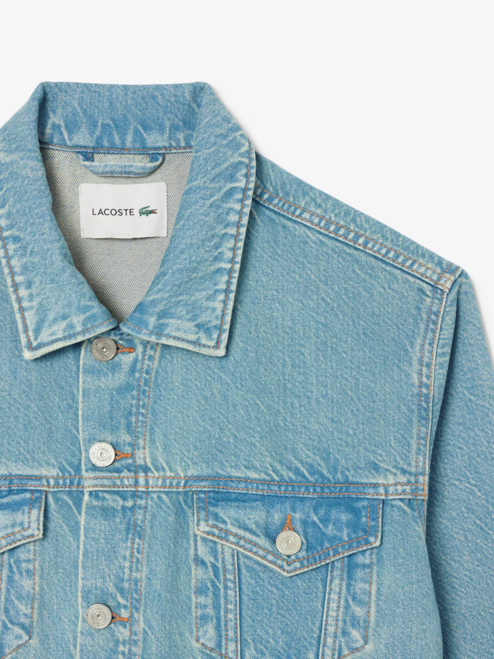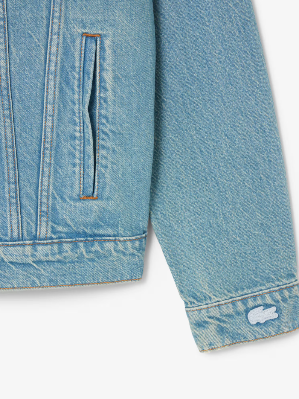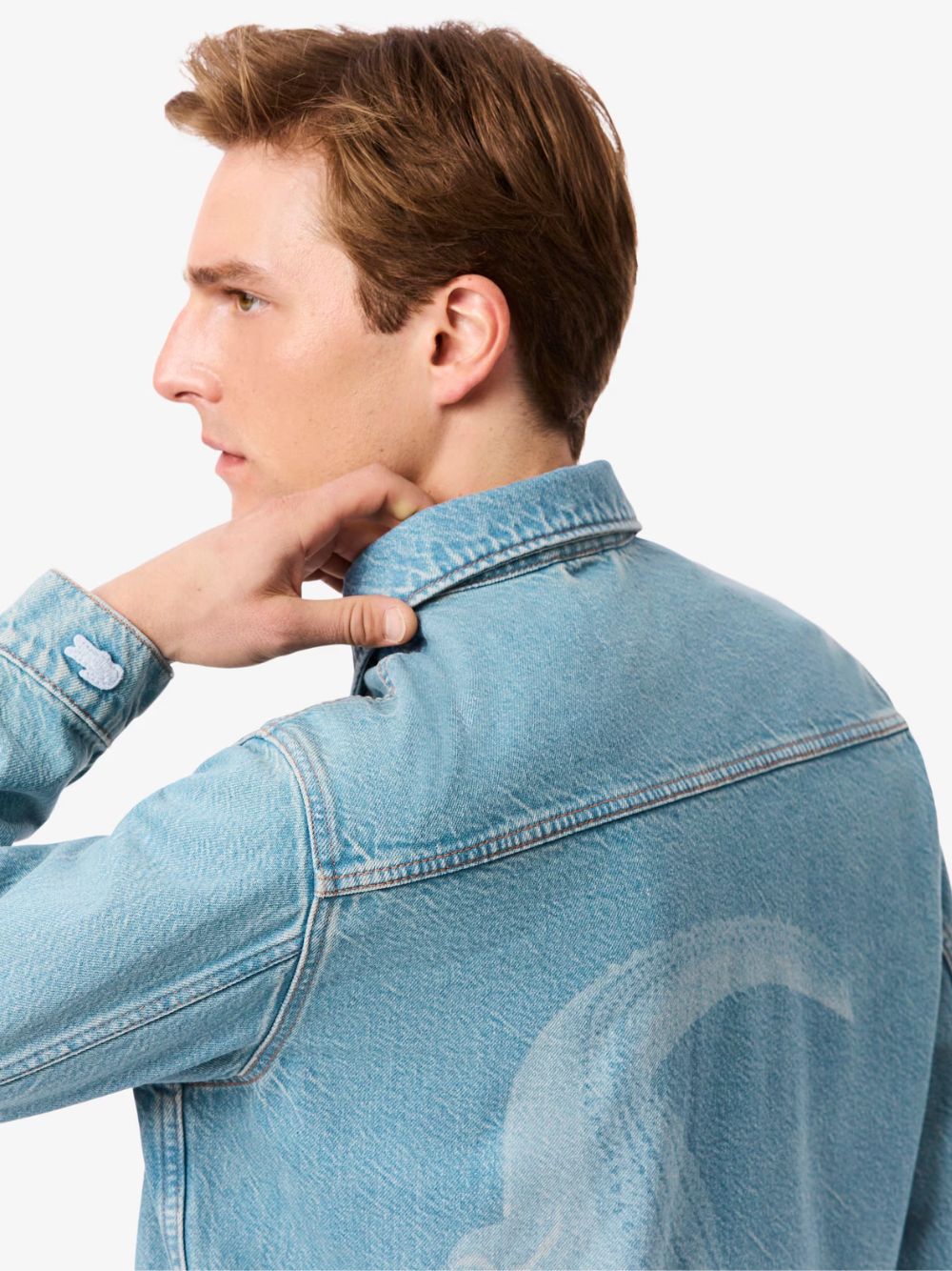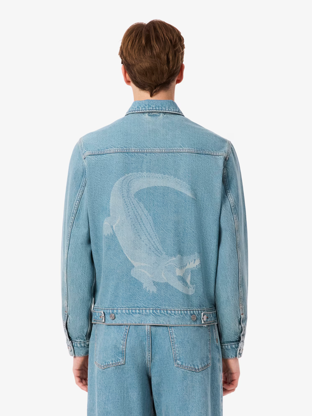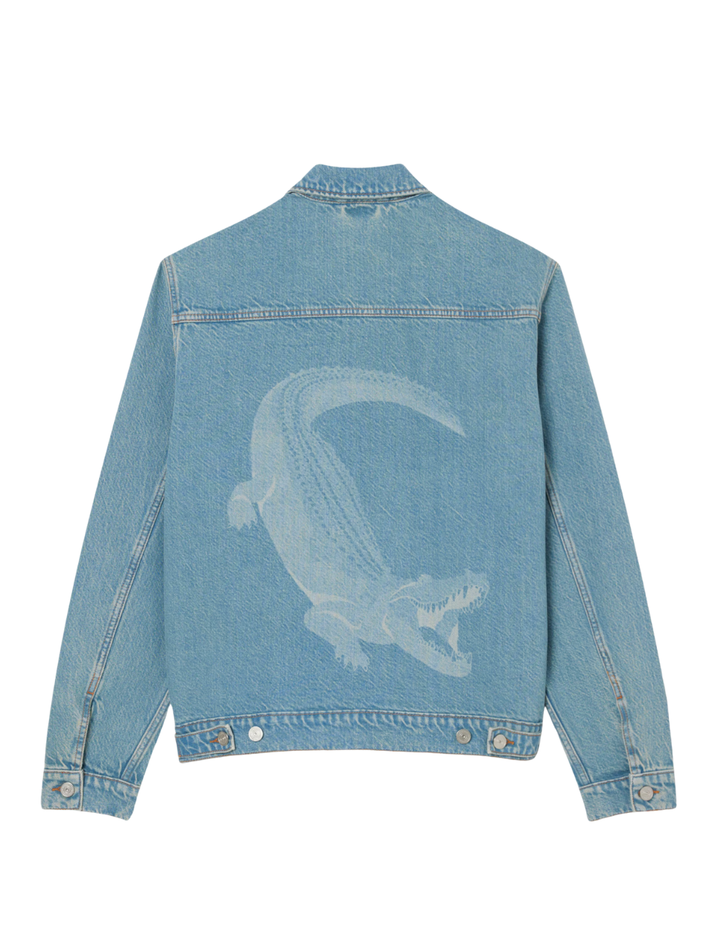 This denim jacket is a shining example of Lacoste elegance and design expertise. An updated take on the classic men's denim jacket, with natural indigo-dyed fabric and a large laser-drawn crocodile motif. A bold, signature style.