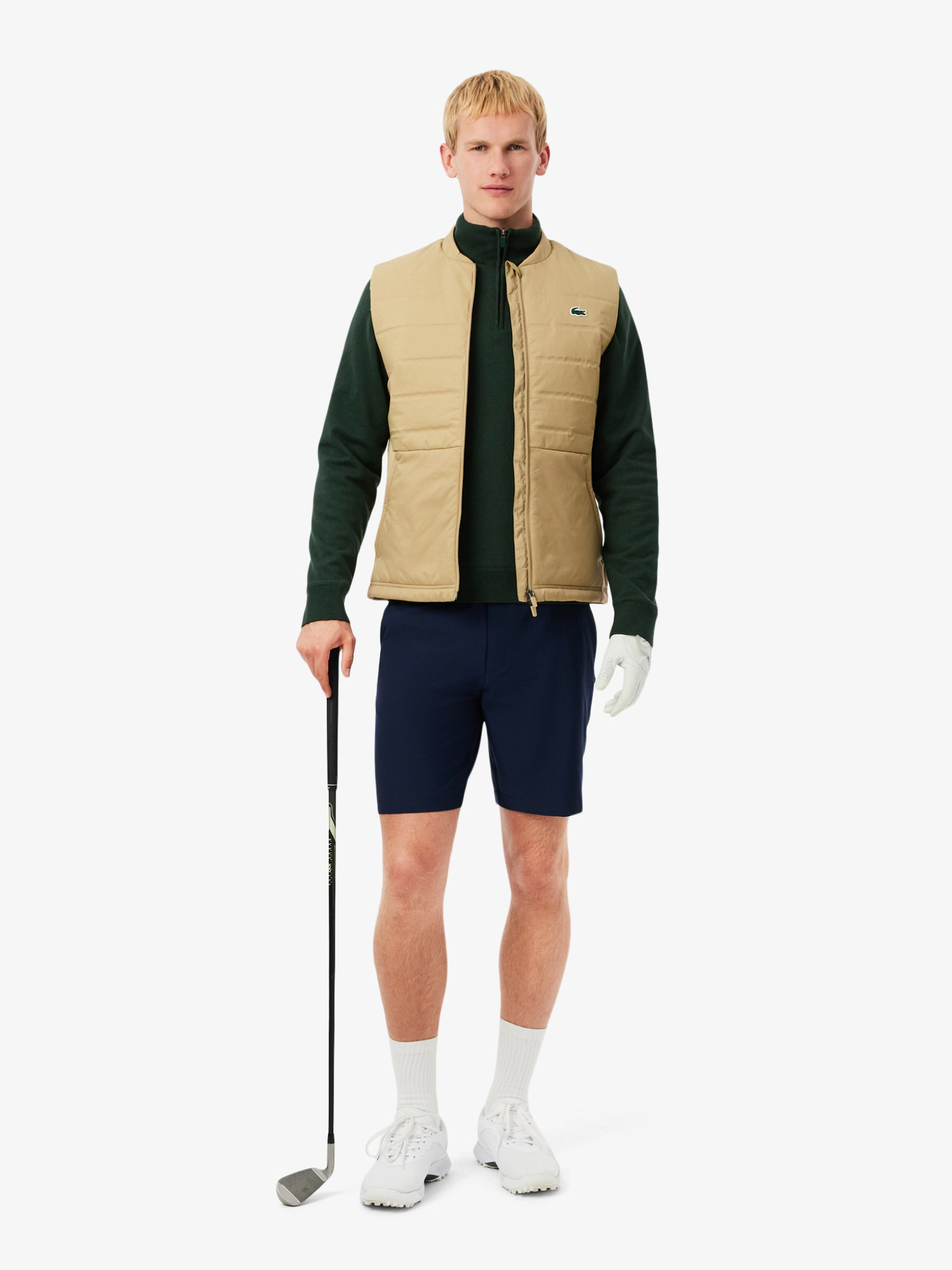This quarter-zipped sweater, tried and tested by Lacoste players, is an essential addition to any golfing wardrobe. Made from a warm wool and cotton blend knit fabric with a wind-resistant lining for comfort and weather protection. A technical piece with a minimalist design, finished with a signature crocodile for an elegant look on the green.