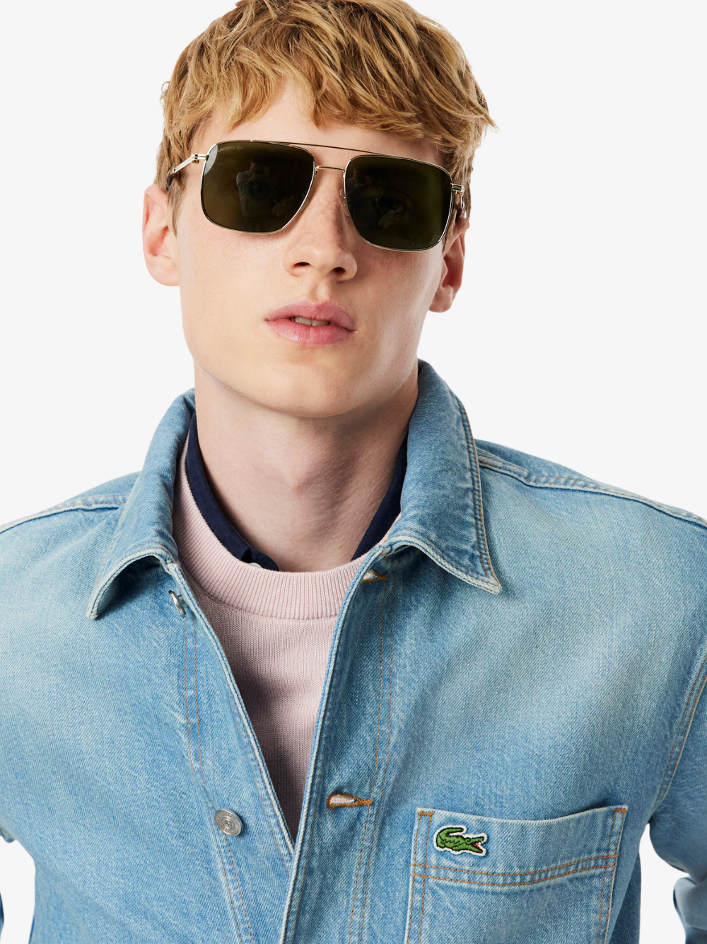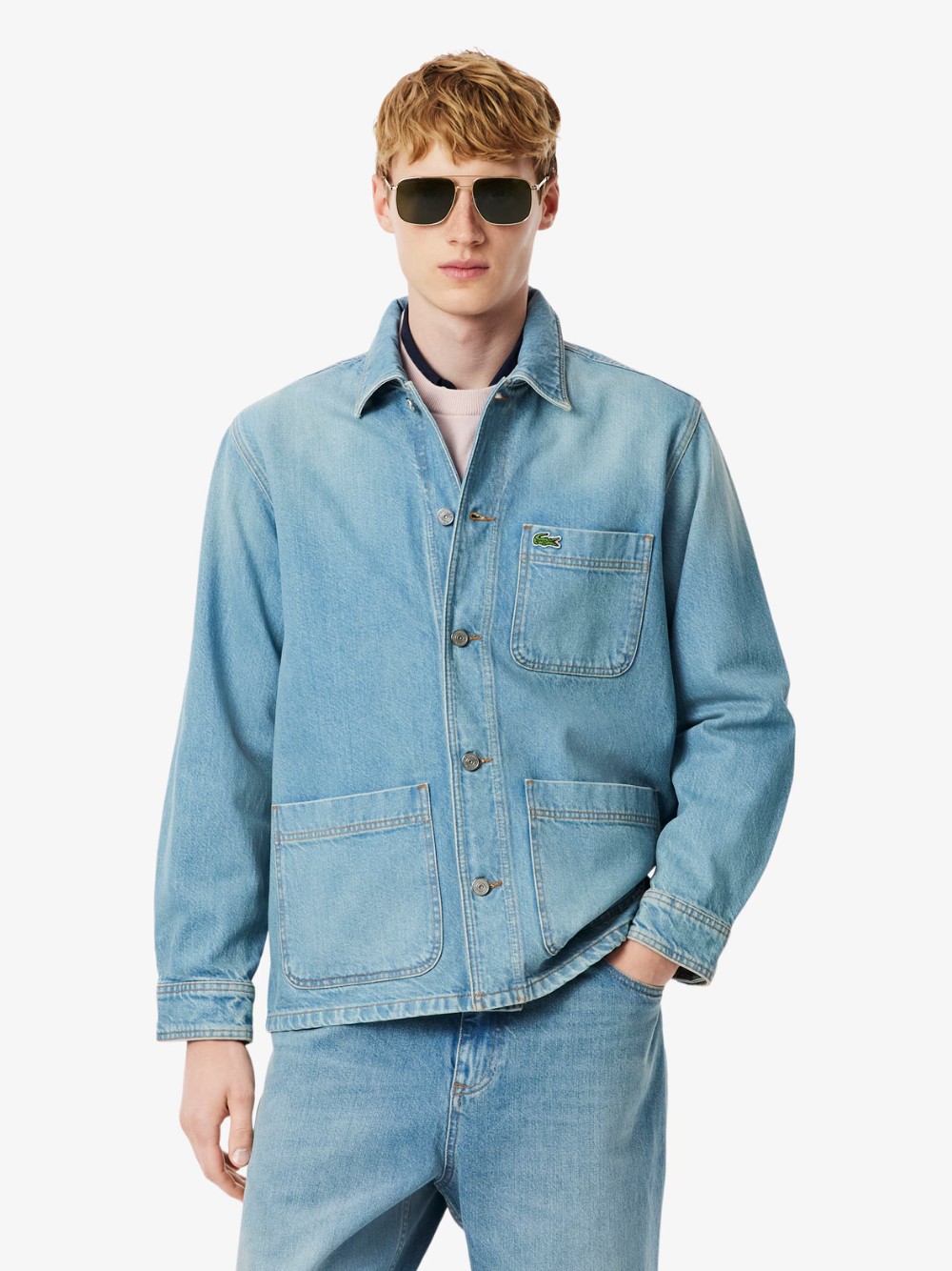 - Sewn-on embroidered crocodile on chest pocket