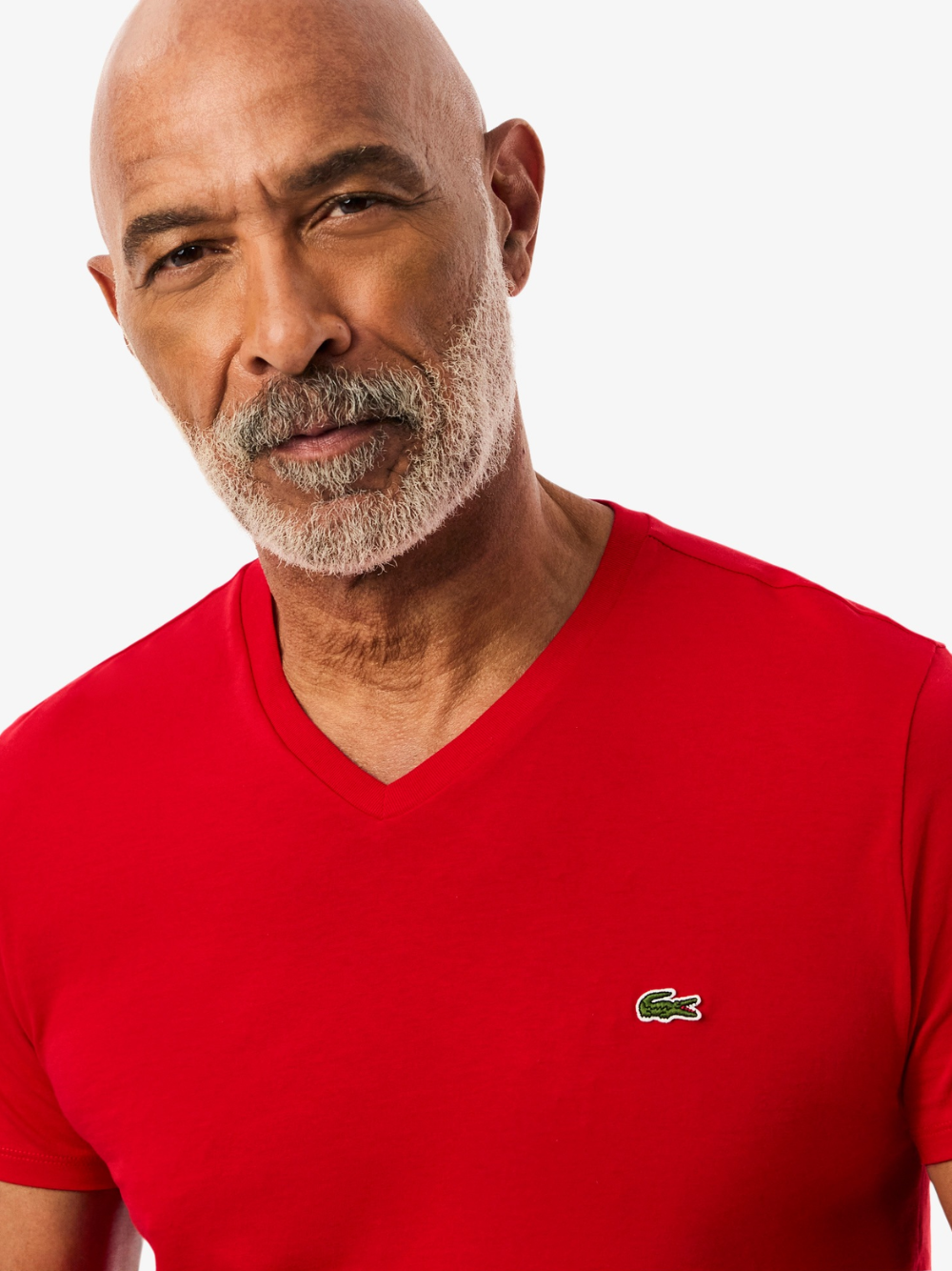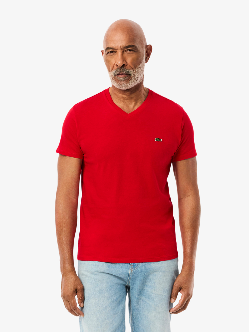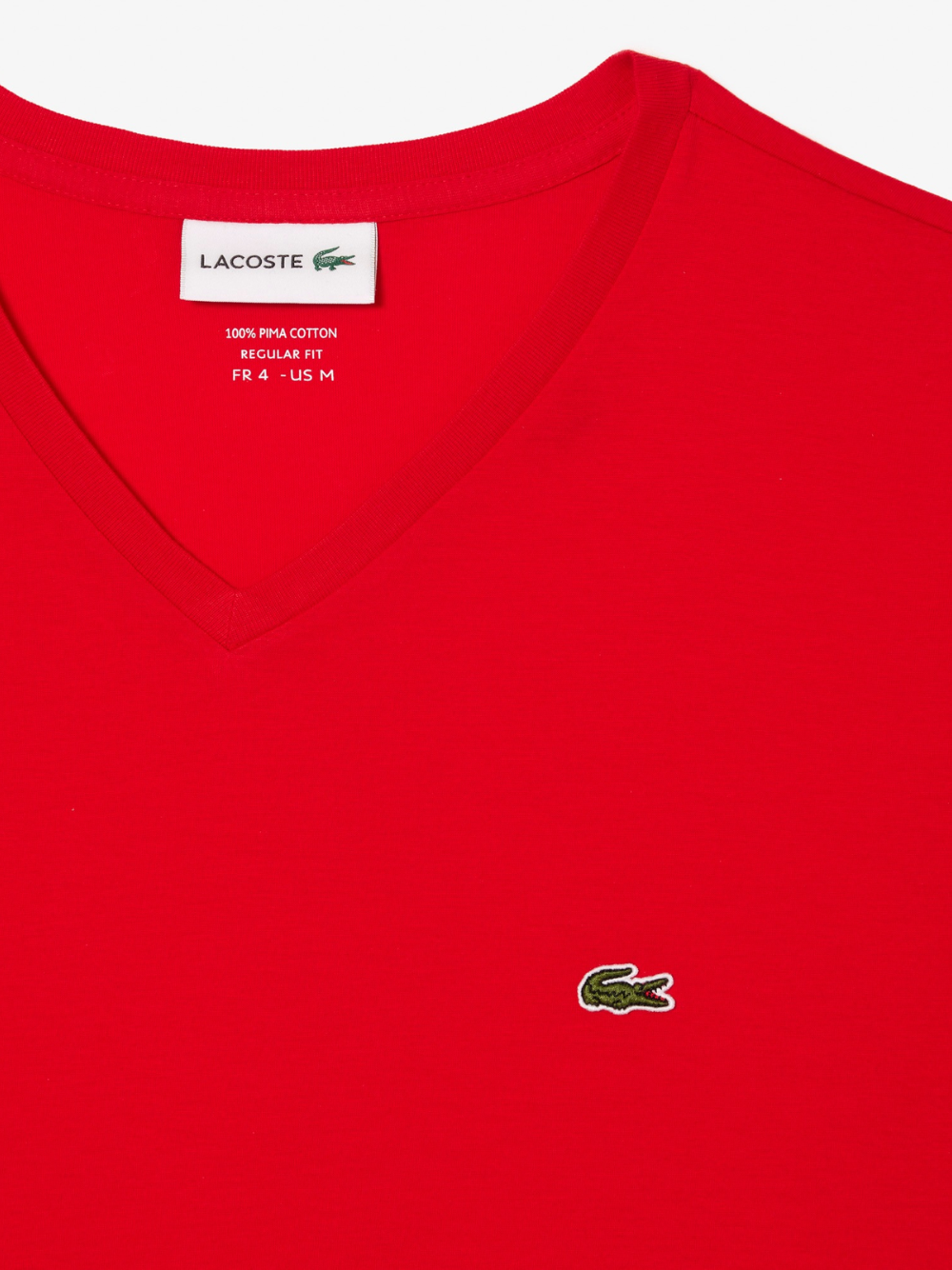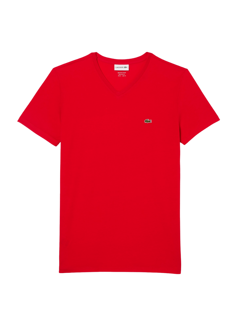 LACOSTE Lightweight Cotton Pima V Neck T-shirt Red
