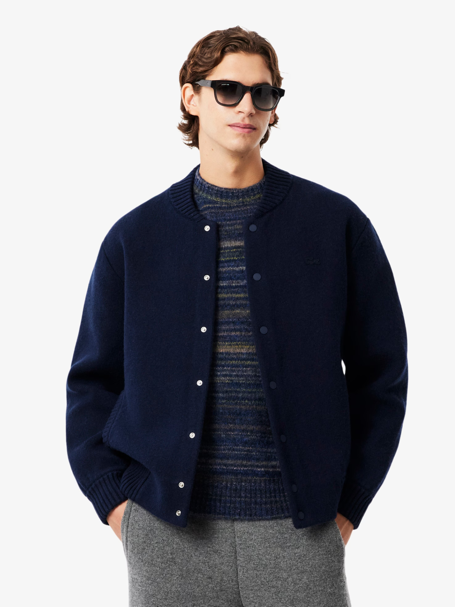 LACOSTE Merino Wool Jersey Bomber Jacket Midnight Blue