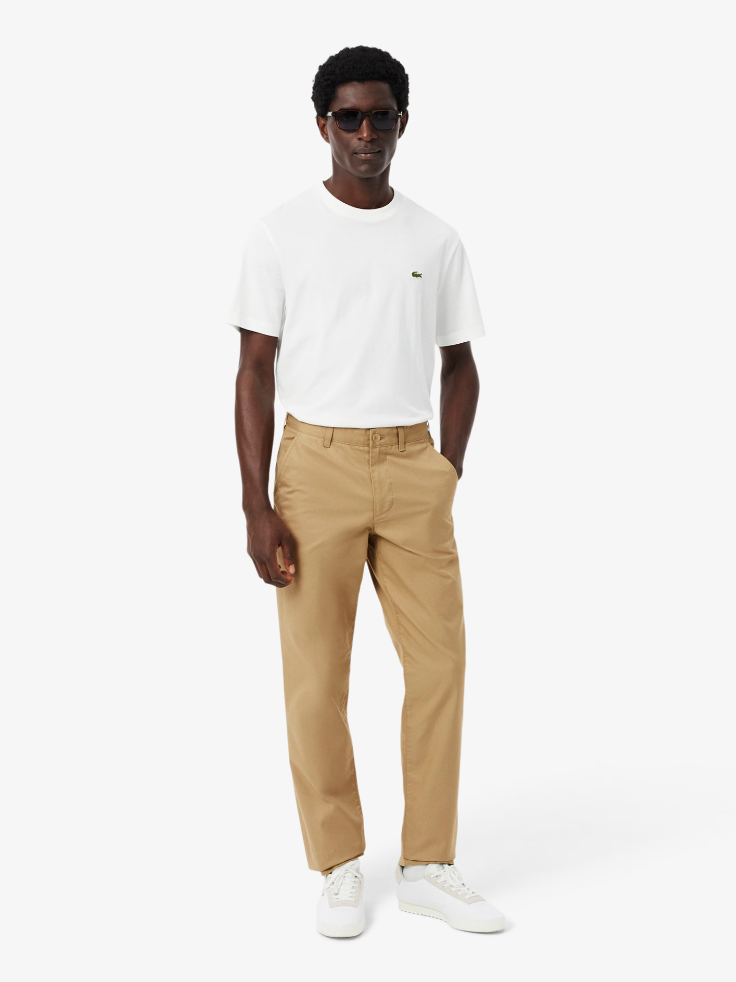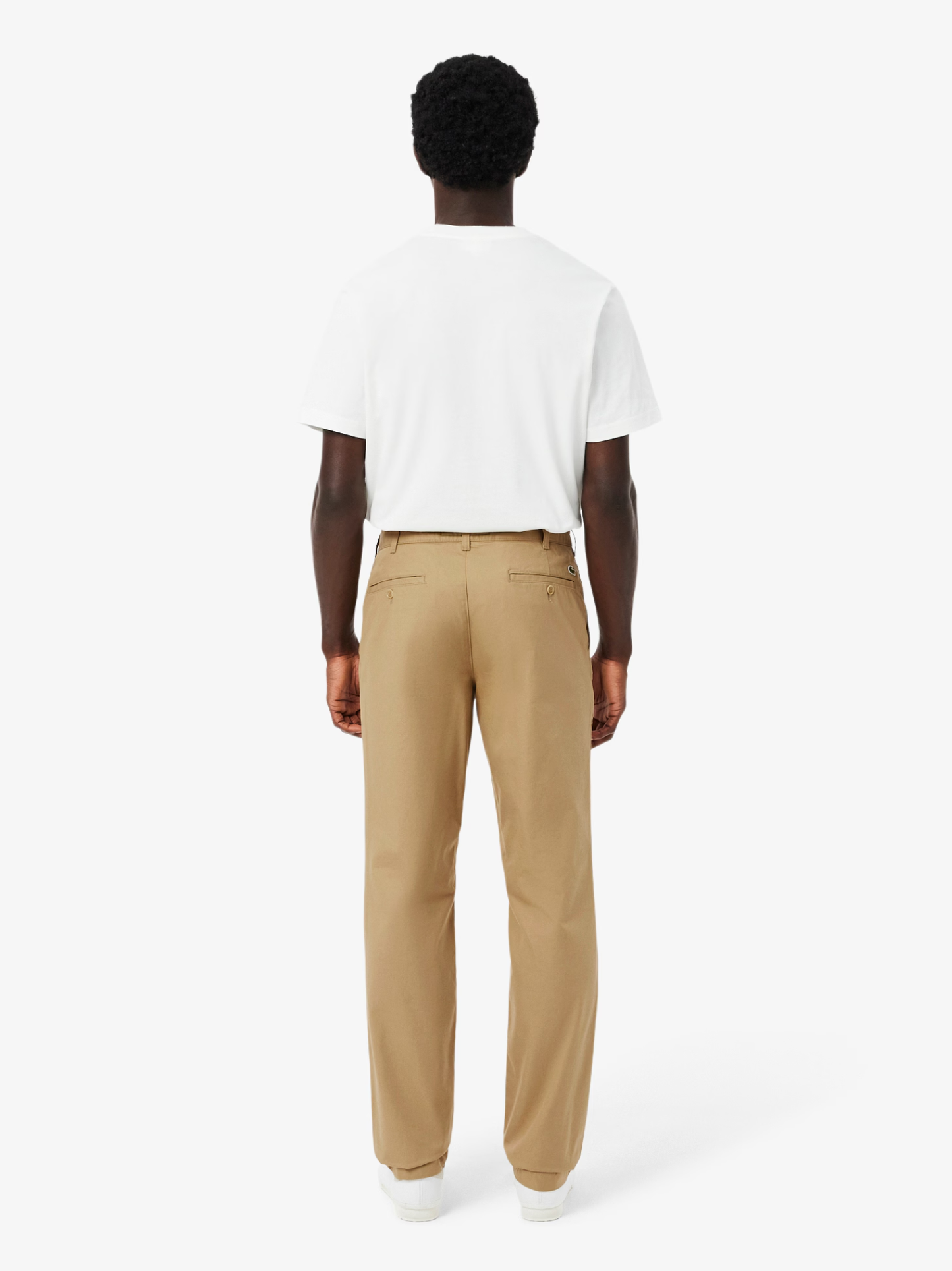 These chino pants are a Lacoste wardrobe essential. A straight cut design made from supple but hardwearing stretch cotton gabardine, the perfect weight for year-round wear. A timeless essential with sophisticated finish details, including an embroidered signature crocodile.