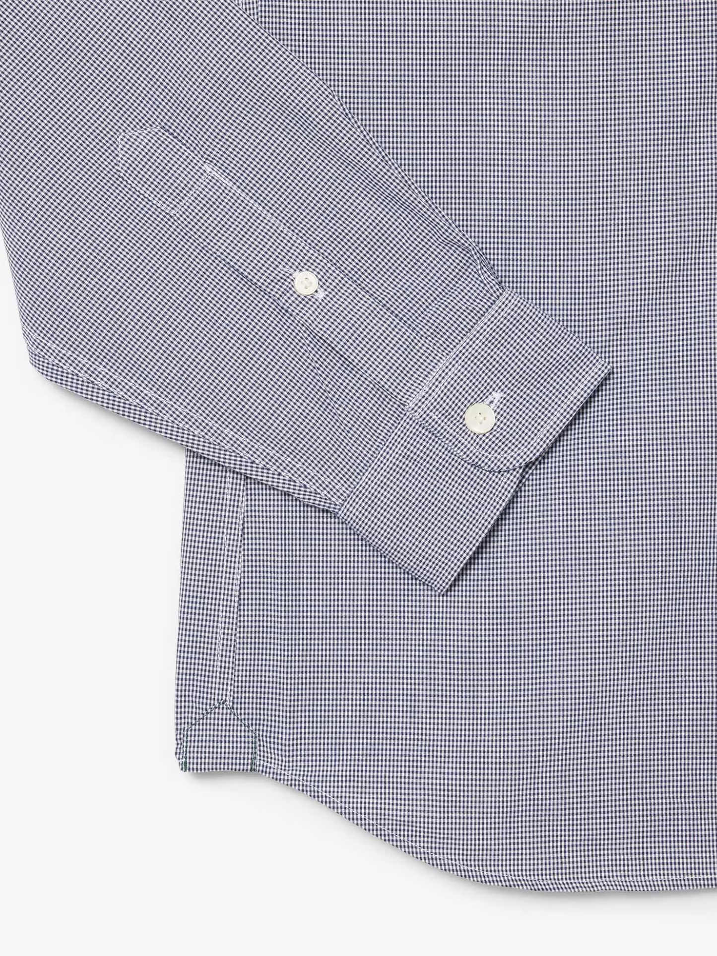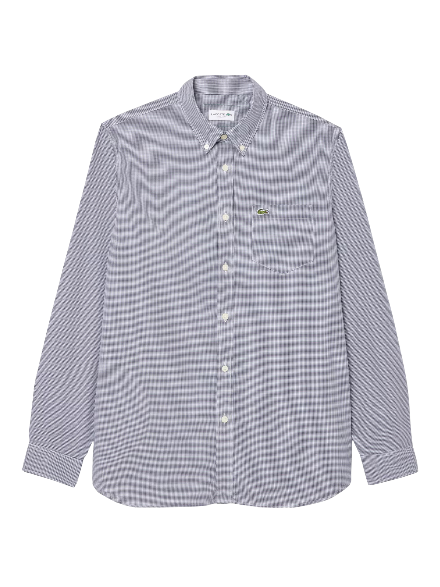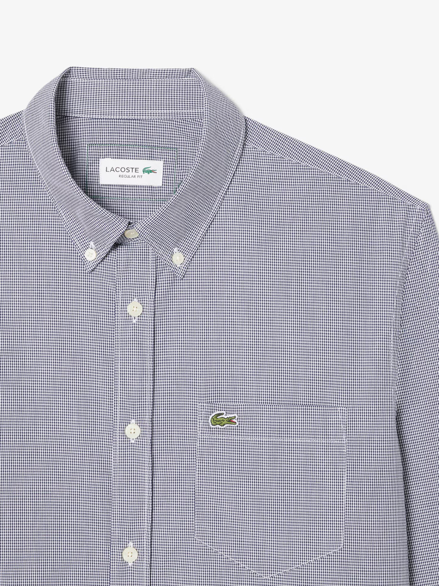 LACOSTE Regular Fit Gingham Poplin Shirt White/Navy Blue