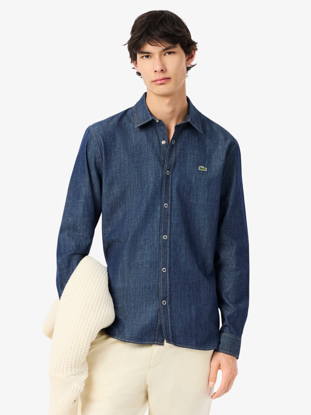 LACOSTE Regular Fit Lightweight Denim Shirt Blue