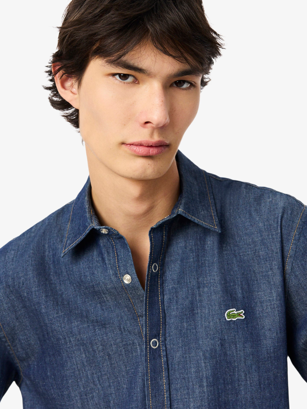 This shirt is an essential style, packed with Lacoste elegance and expertise. A versatile piece for all seasons, made from a lightweight denim fabric with a subtle wash treatment, contrast topstitching, and metallic-edged snaps. The ultimate in casual chic, finished with an embroidered signature crocodile.