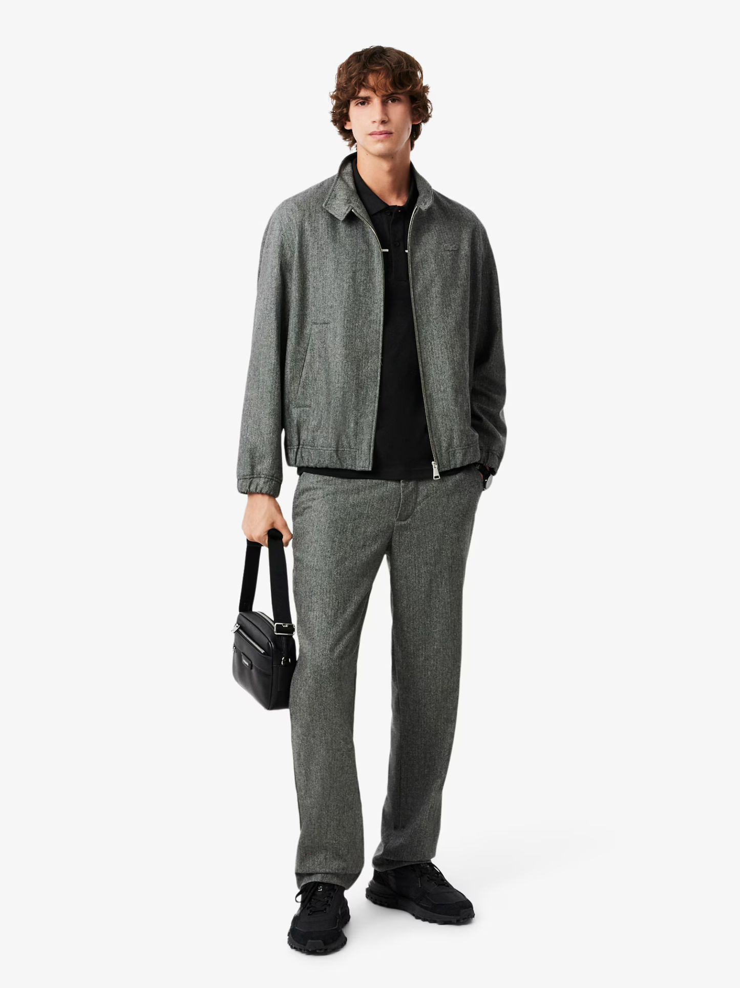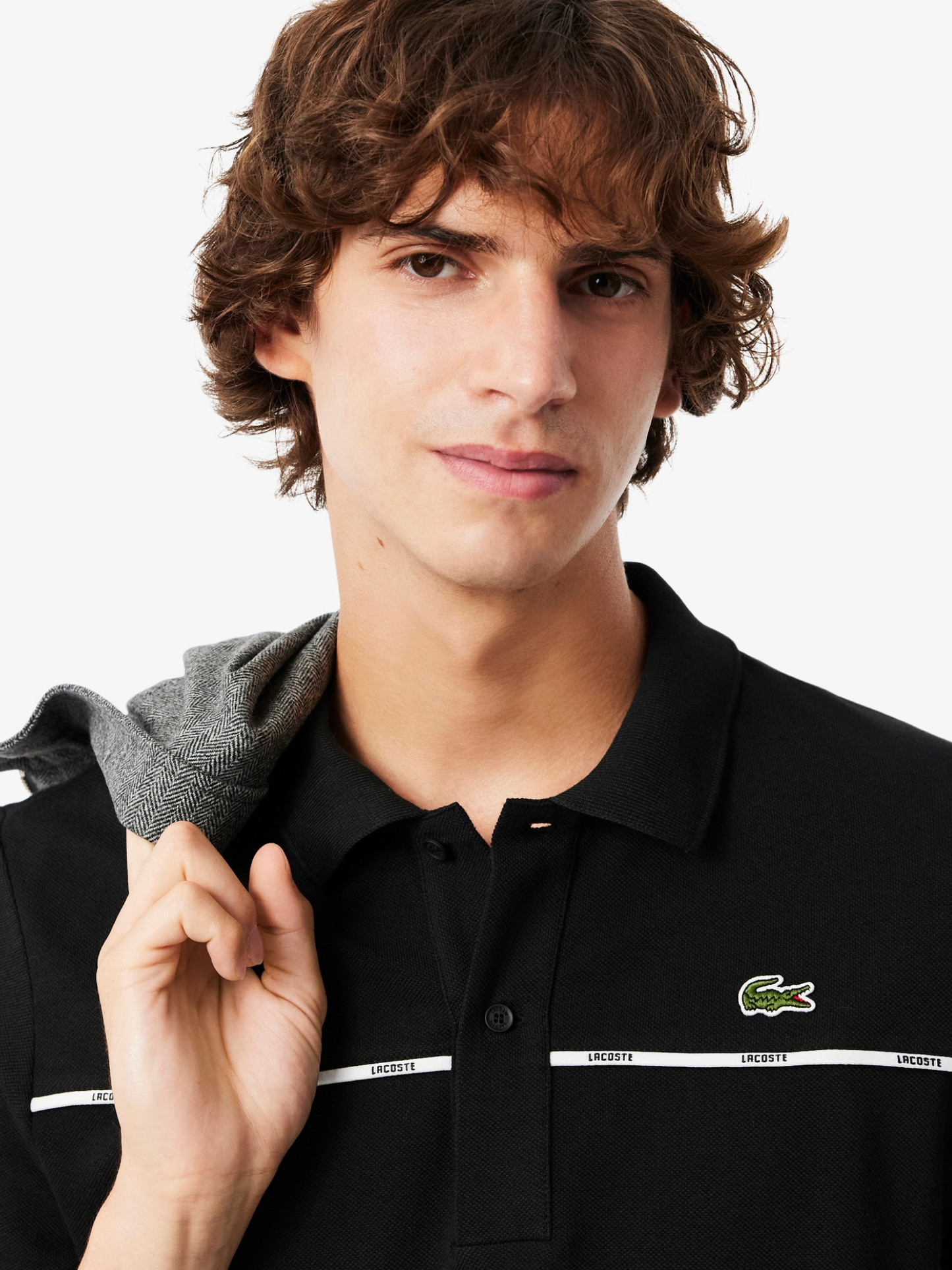 - Central contrast trim detail with Lacoste branding.