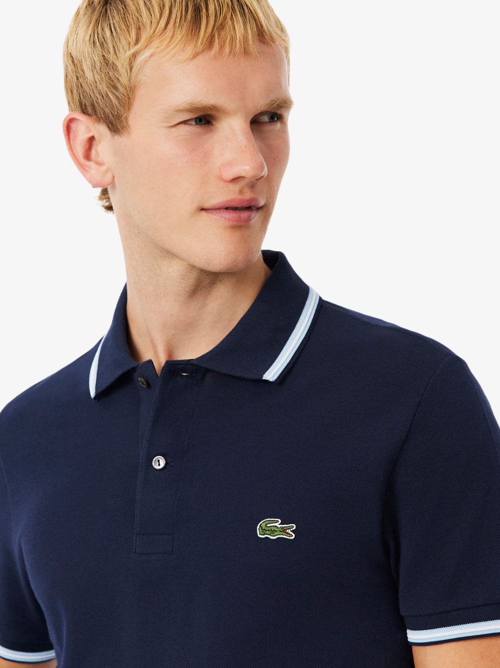- Sewn-on embroidered crocodile on chest