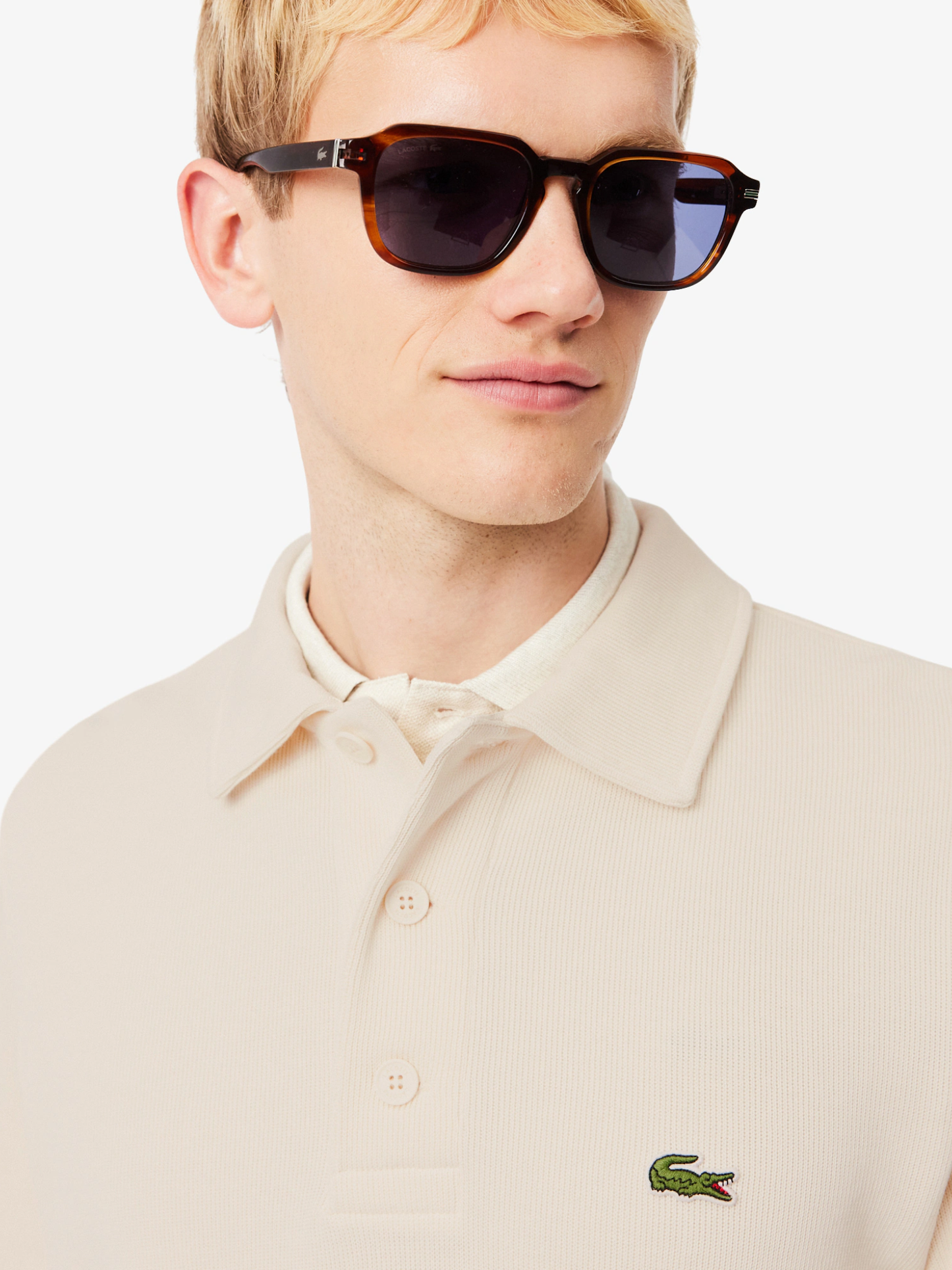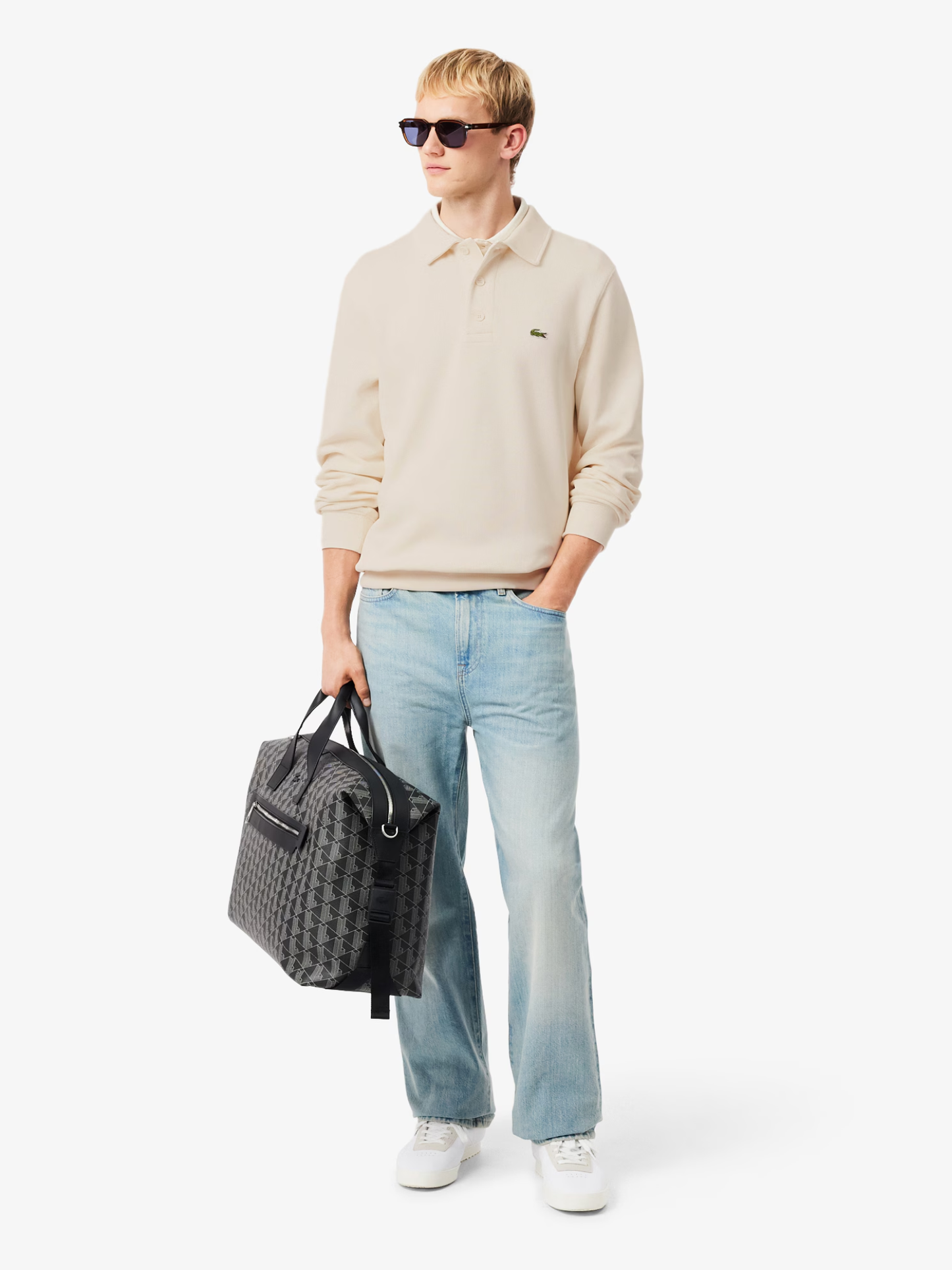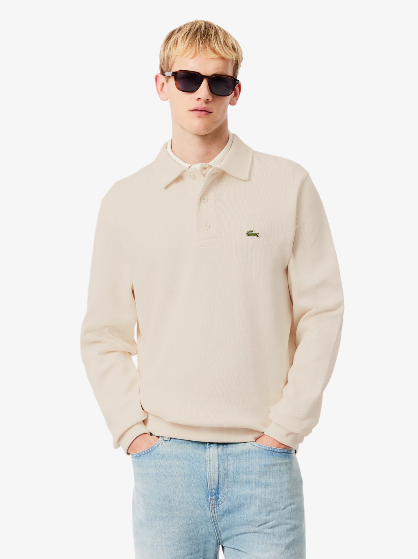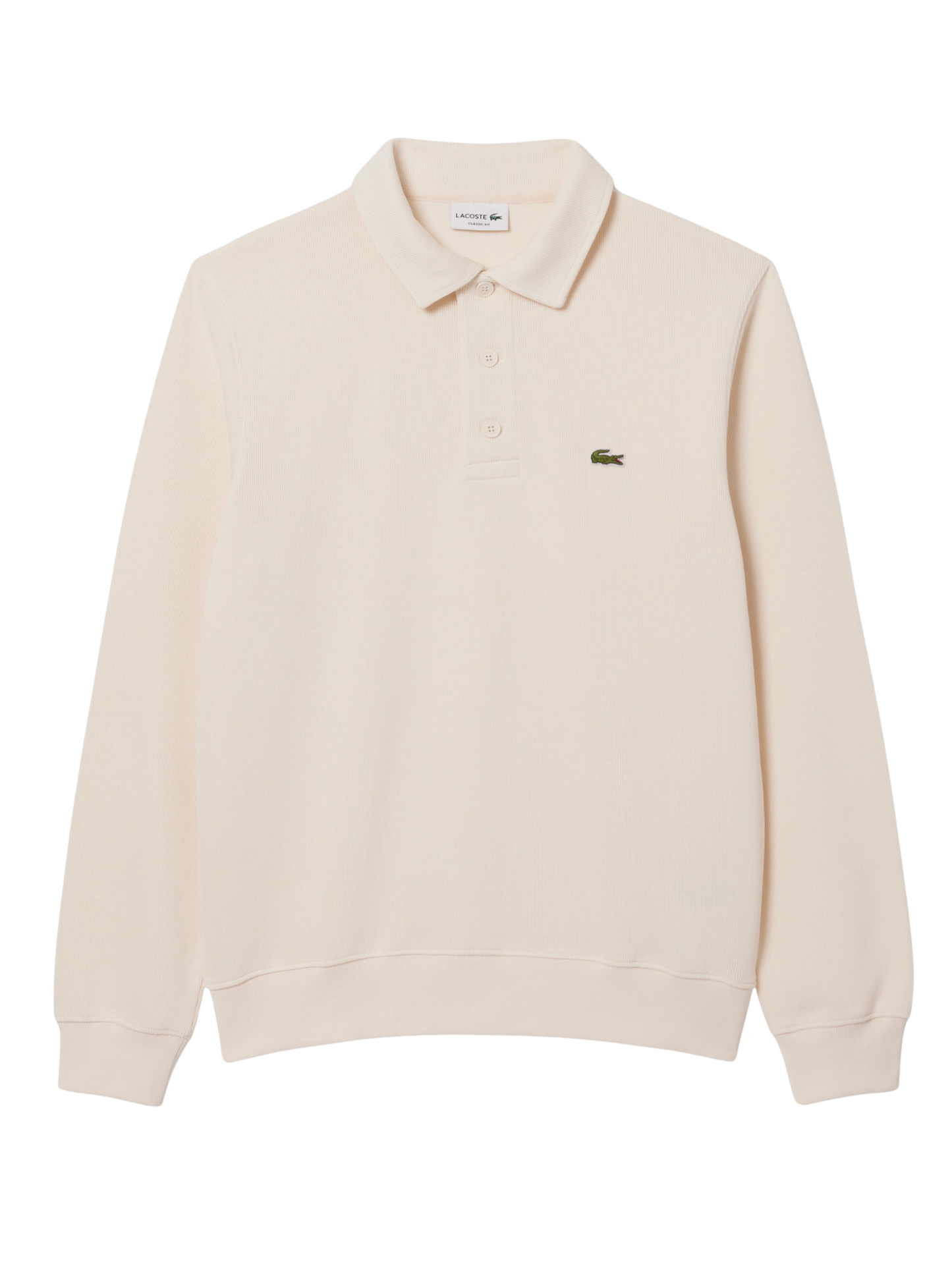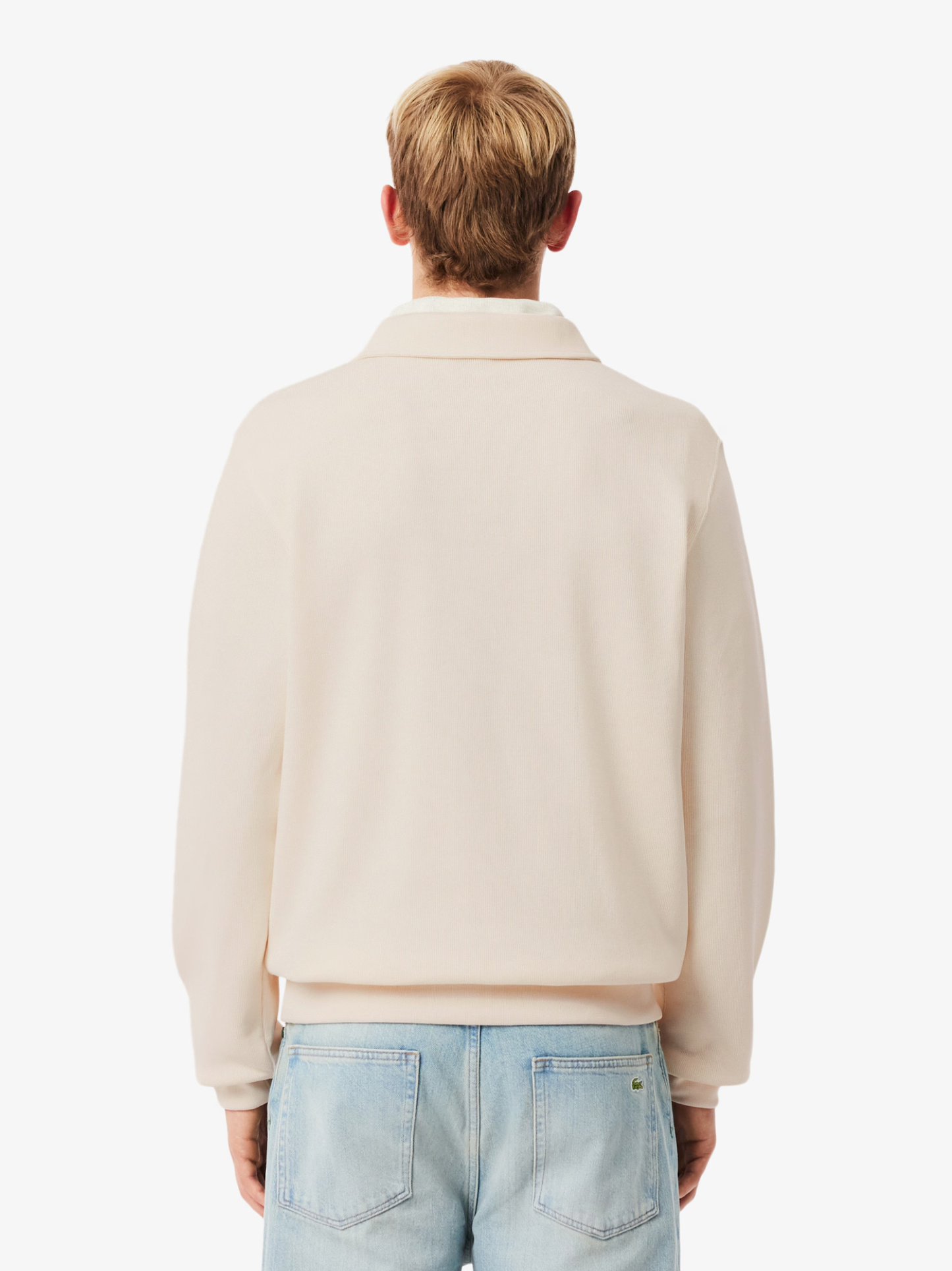 LACOSTE Ribbed Cotton Polo Collar Sweatshirt Ecru White