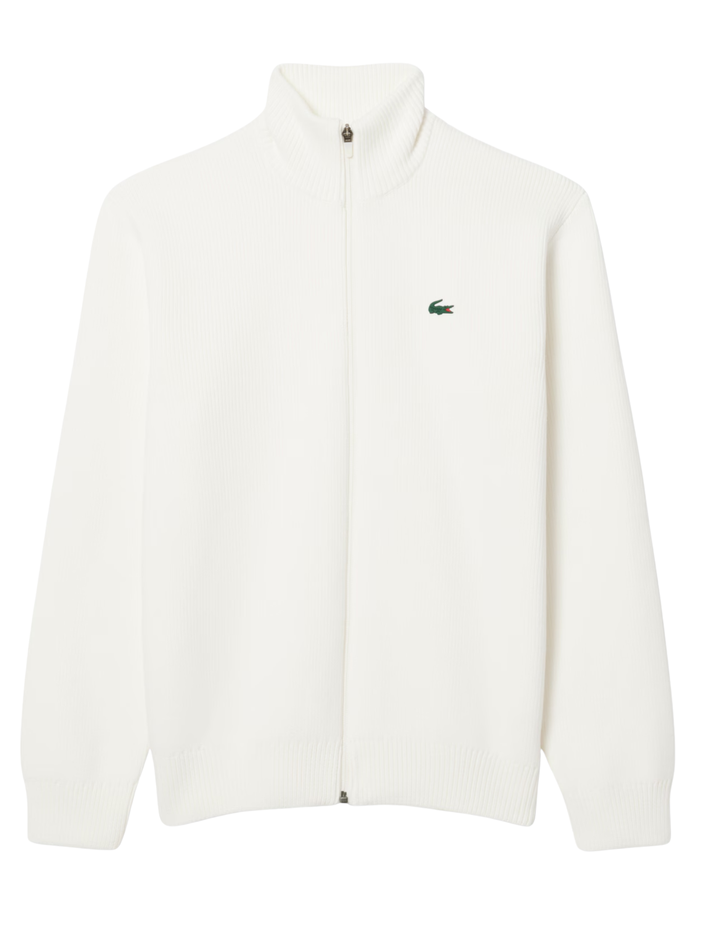 LACOSTE Ribbed Knit Zipped Golf Sweater White