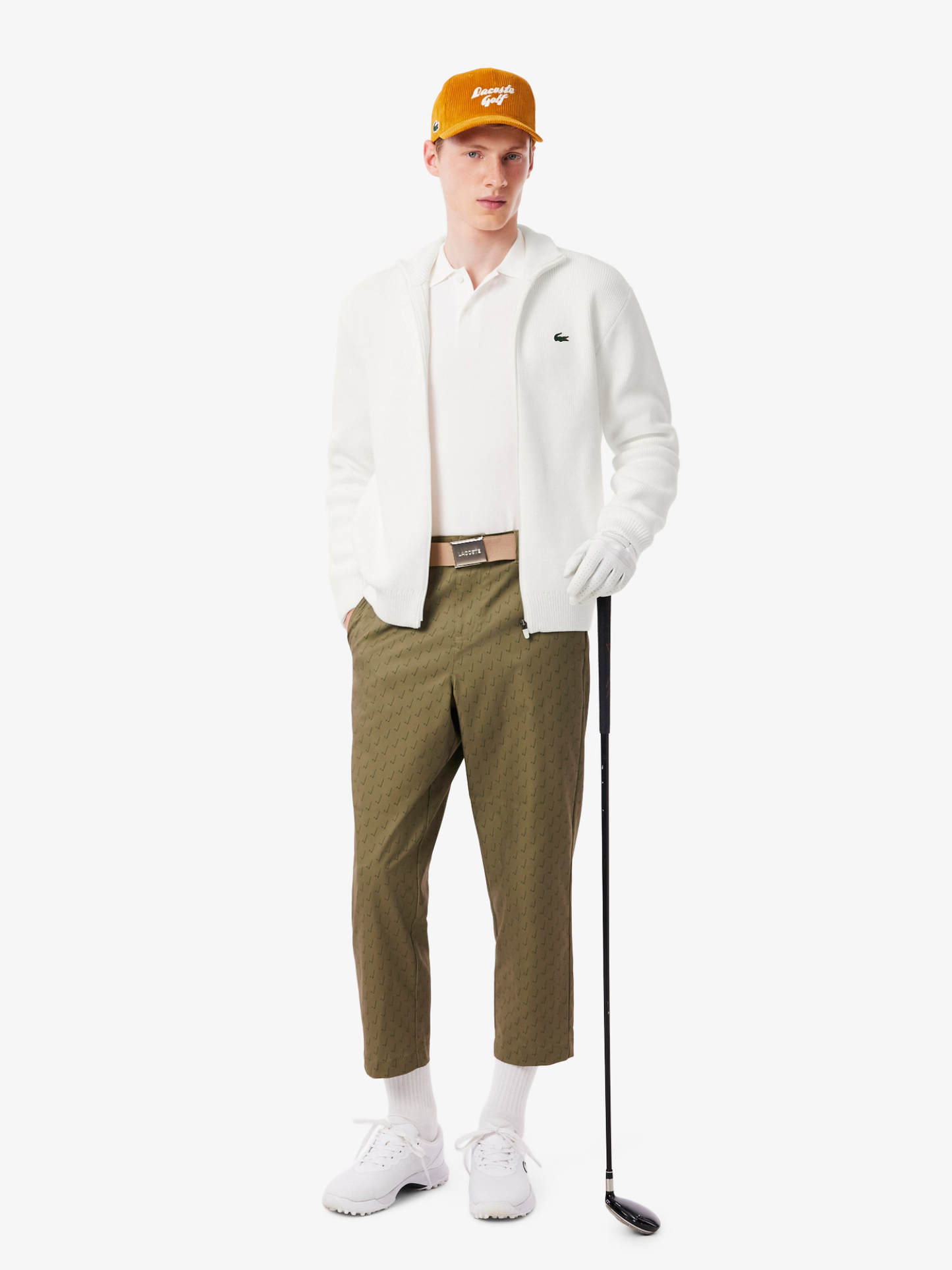 This zipped sweater, tried and tested by Lacoste players, is a golfing wardrobe essential. A straight-cut piece with a high neck, made from warm, comfortable ribbed knit cotton. A practical piece with a minimalist design, finished with a signature crocodile for an added touch of timeless elegance.