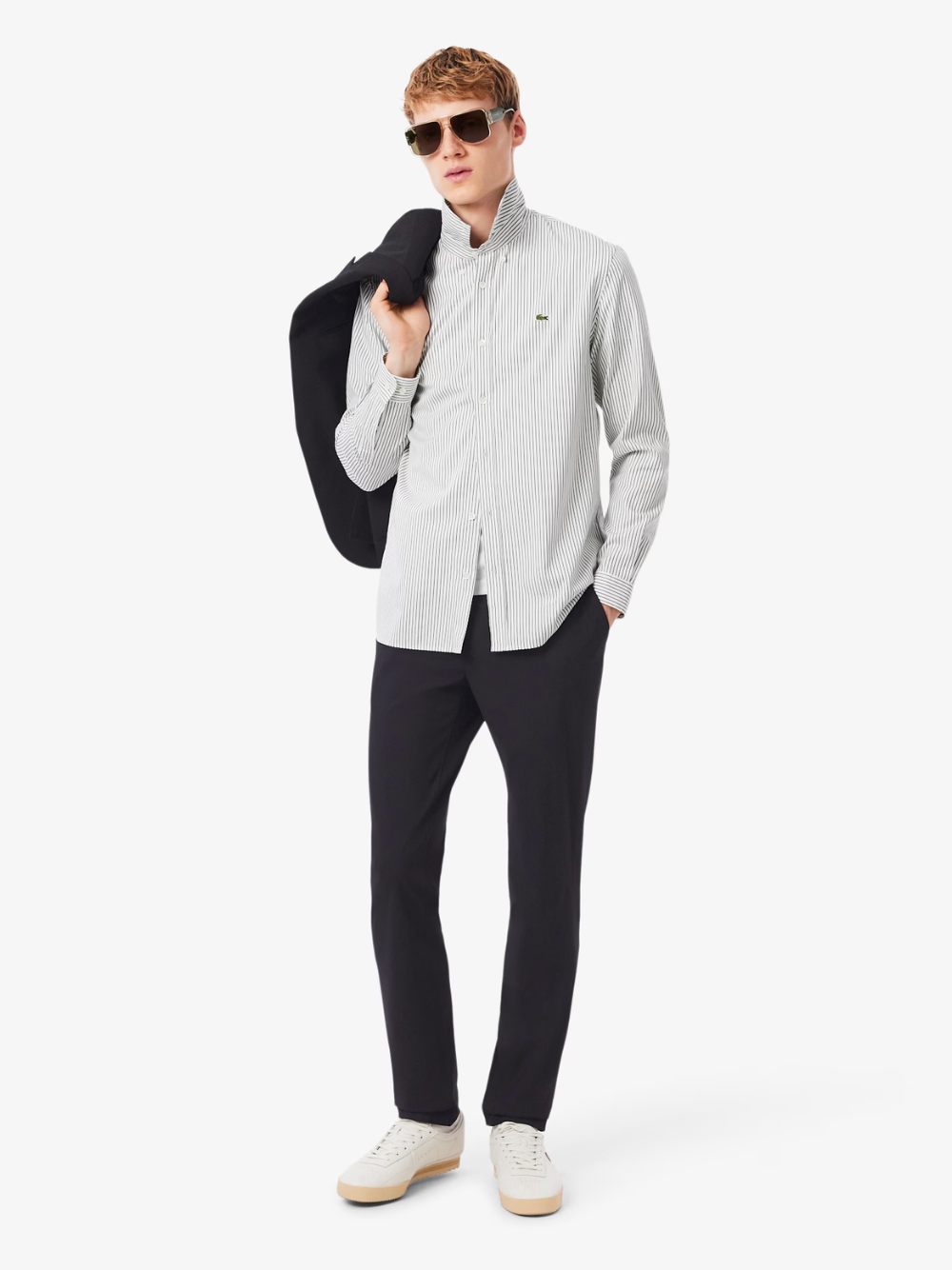 Comfortable, elegant chino pants from Lacoste, perfect for any occasion. Made from a lightweight, crease-resistant and water-repellent stretch fabric with a fitted cut for elegance. A timeless, must-have style with ergonomic details, finished with a subtle embroidered crocodile.