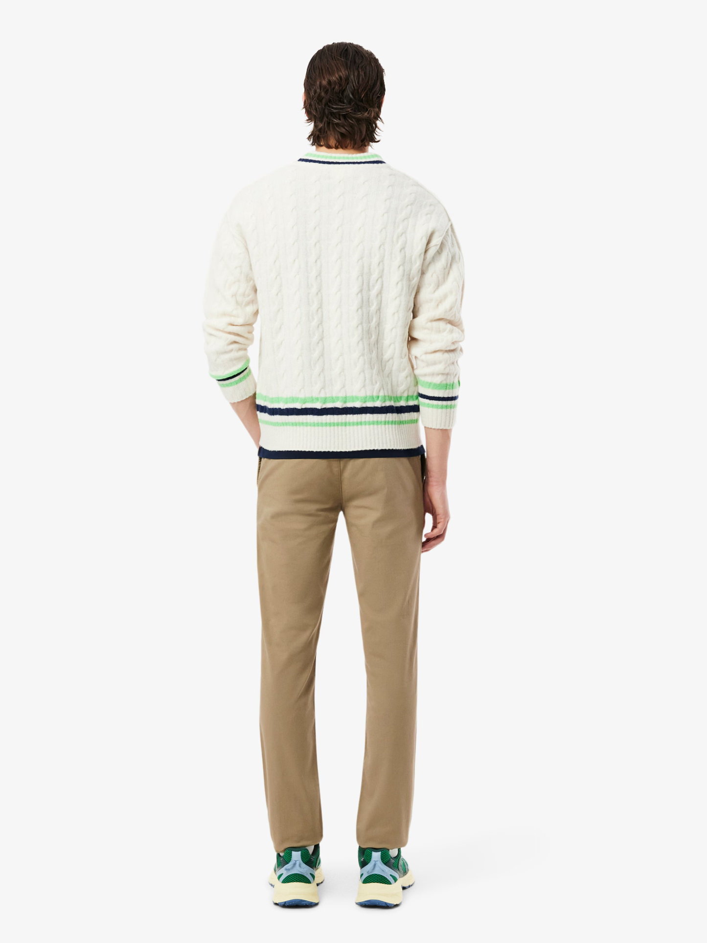 These chino pants are a Lacoste wardrobe essential. Made from supple but hardwearing stretch cotton gabardine, the perfect weight for year-round wear, with a fitted cut. A timeless essential with subtle finish details, including a crocodile above one of the welt pockets.