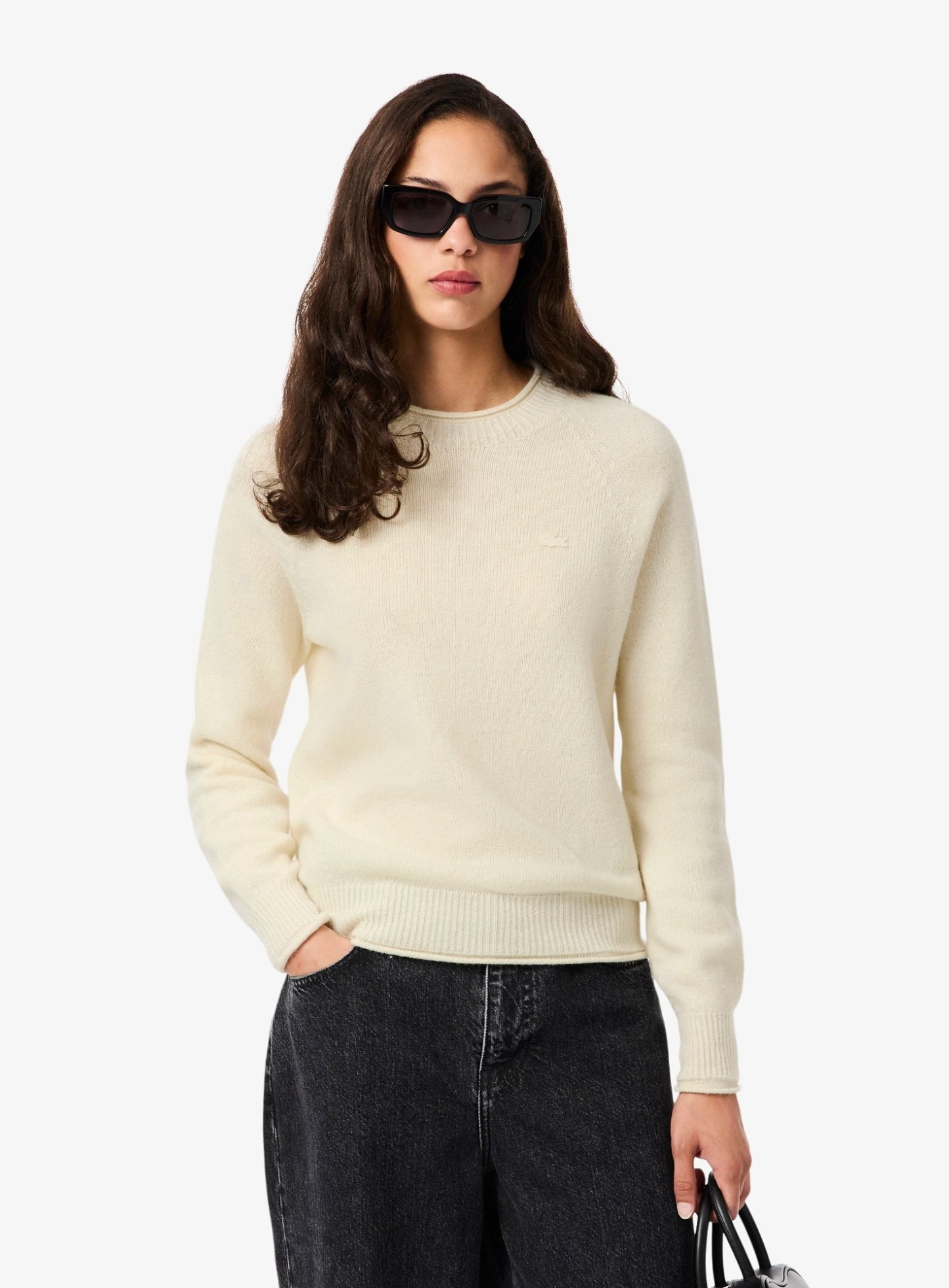 السعر العادي Dhs. 552.00 AEDLACOSTE WOMEN 3D Knit Carded Wool Sweater Ecru White