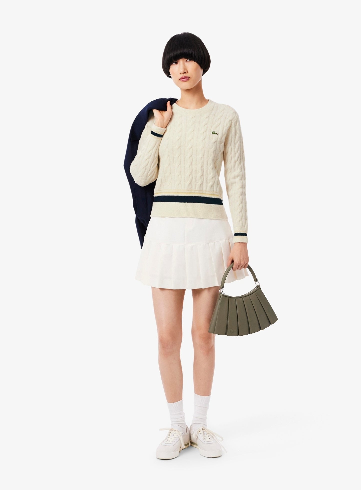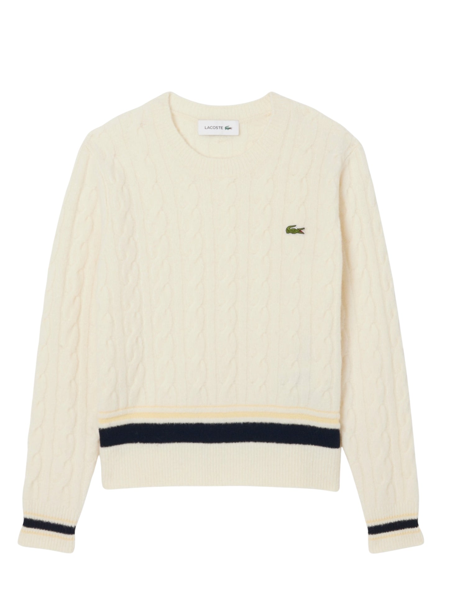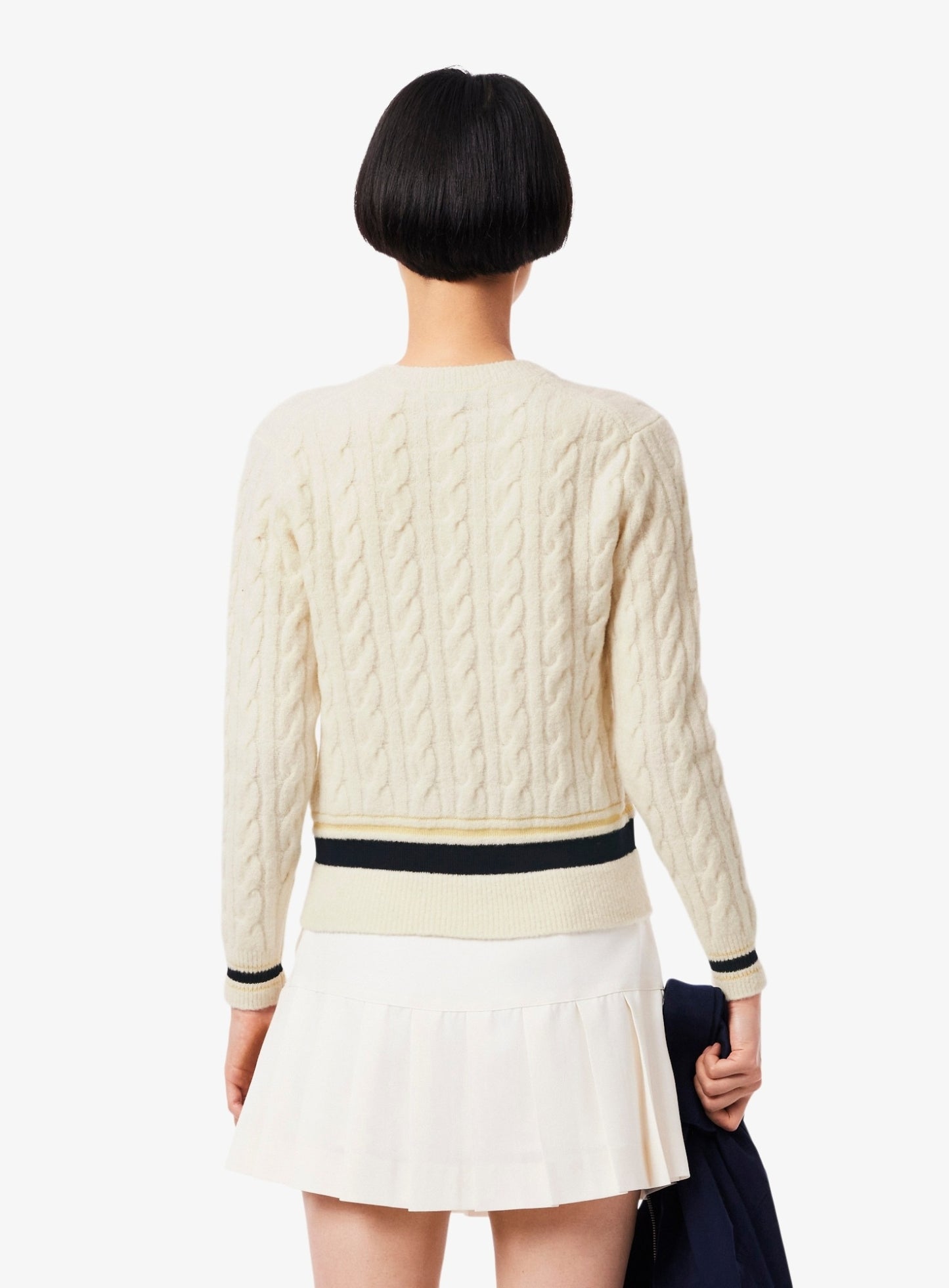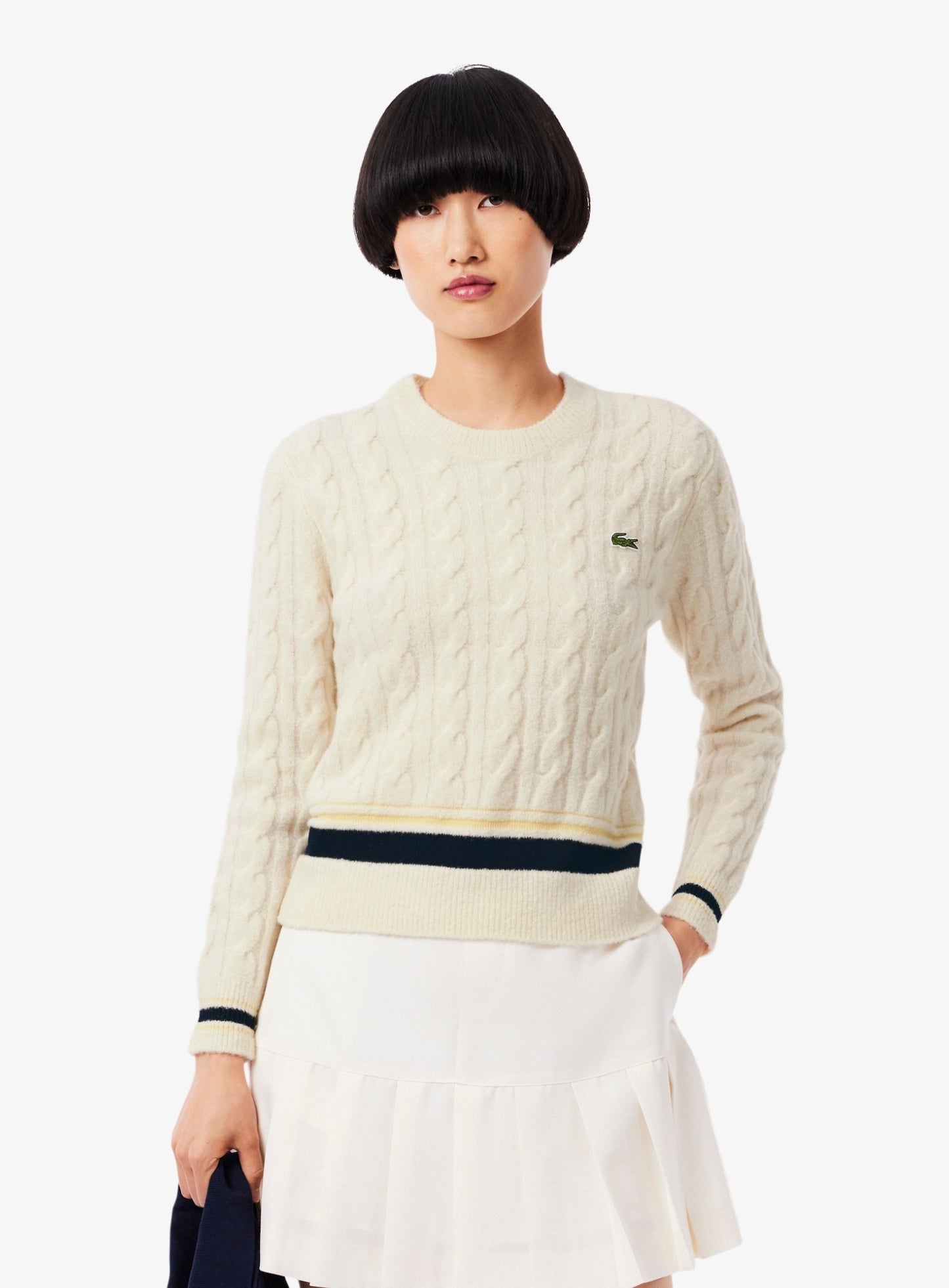 LACOSTE WOMEN Cable Knit Wool Sweater Ecru White