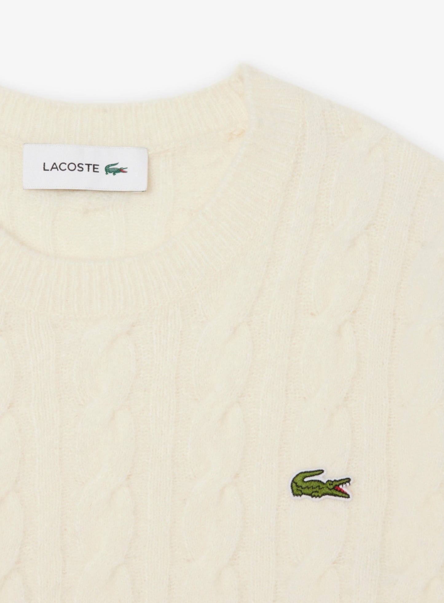السعر العادي Dhs. 586.00 AEDLACOSTE WOMEN Cable Knit Wool Sweater Ecru White
