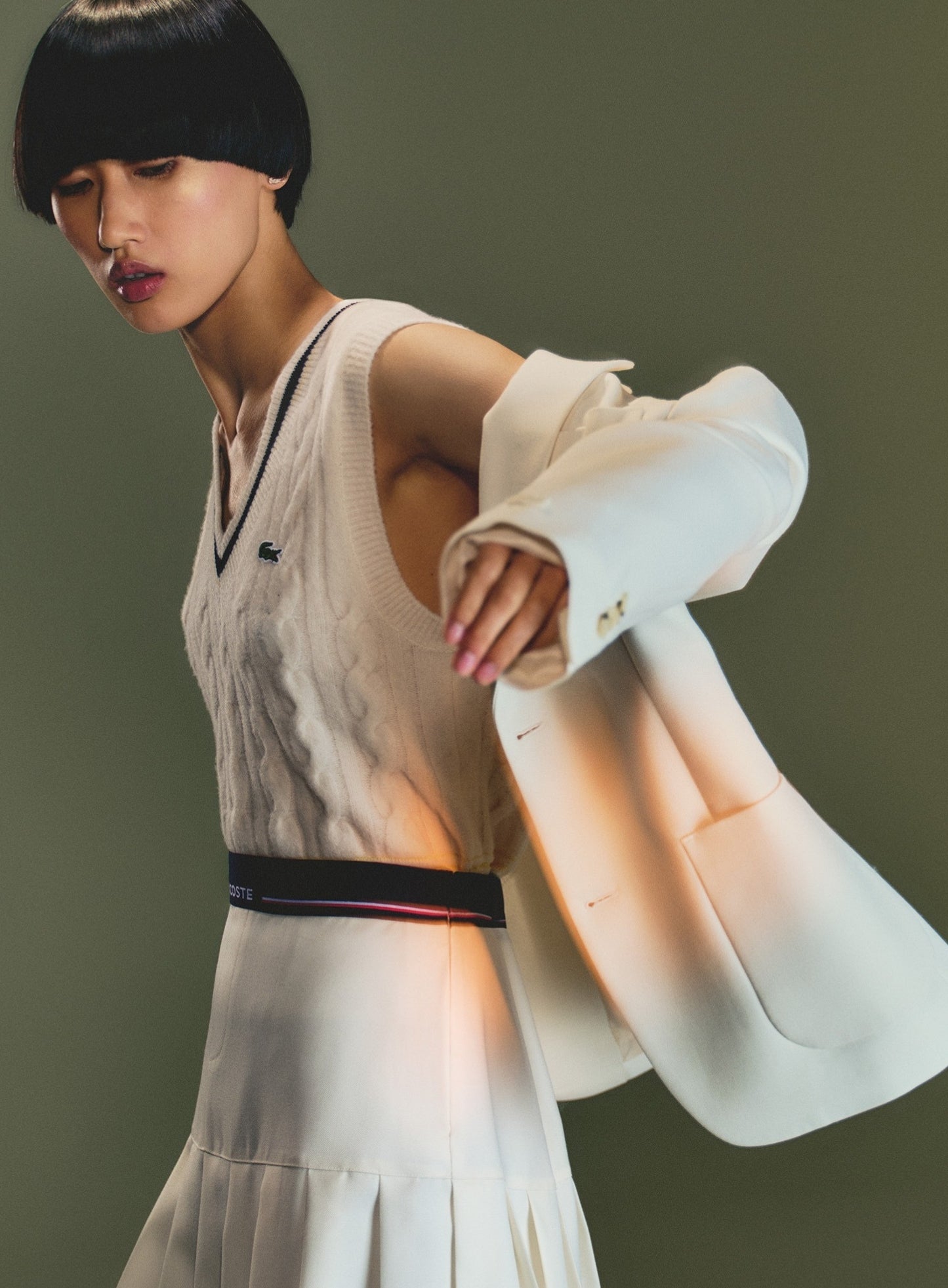 السعر العادي Dhs. 517.00 AEDLACOSTE WOMEN Cable Knit Wool Sweater Vest Ecru White