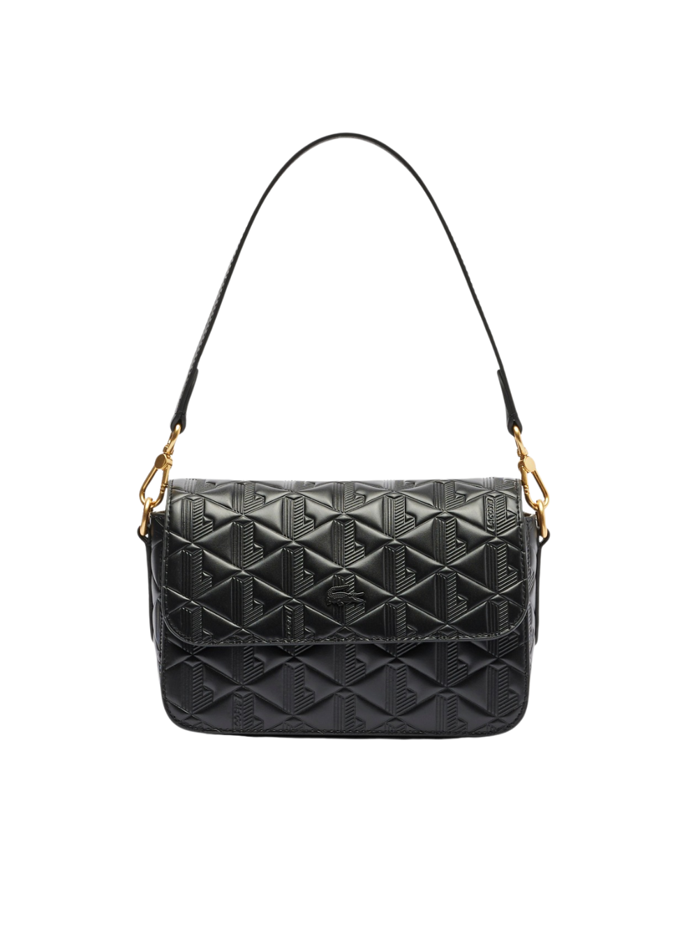 LACOSTE WOMEN Maheki Embossed Leather Shoulder Bag Black