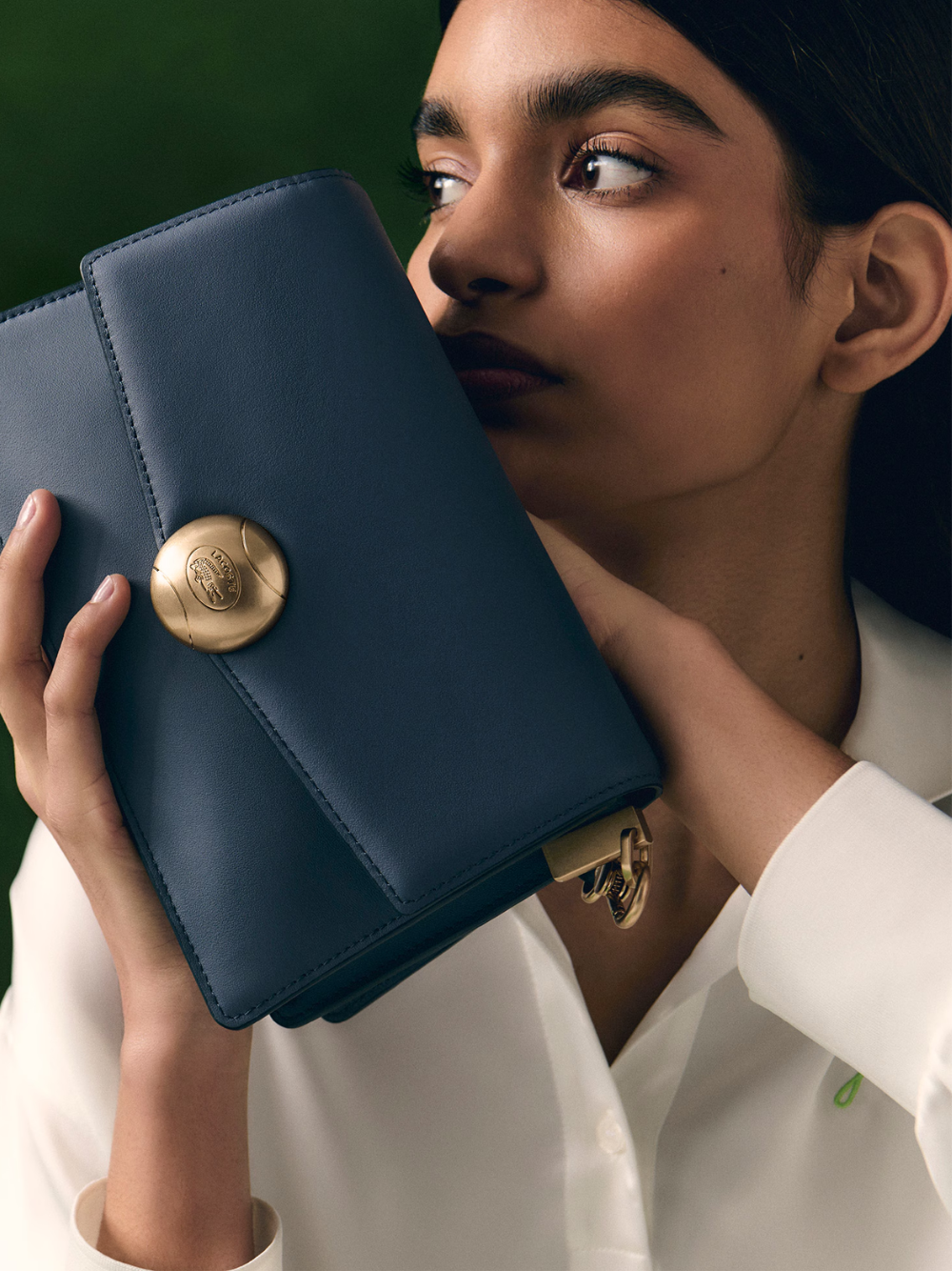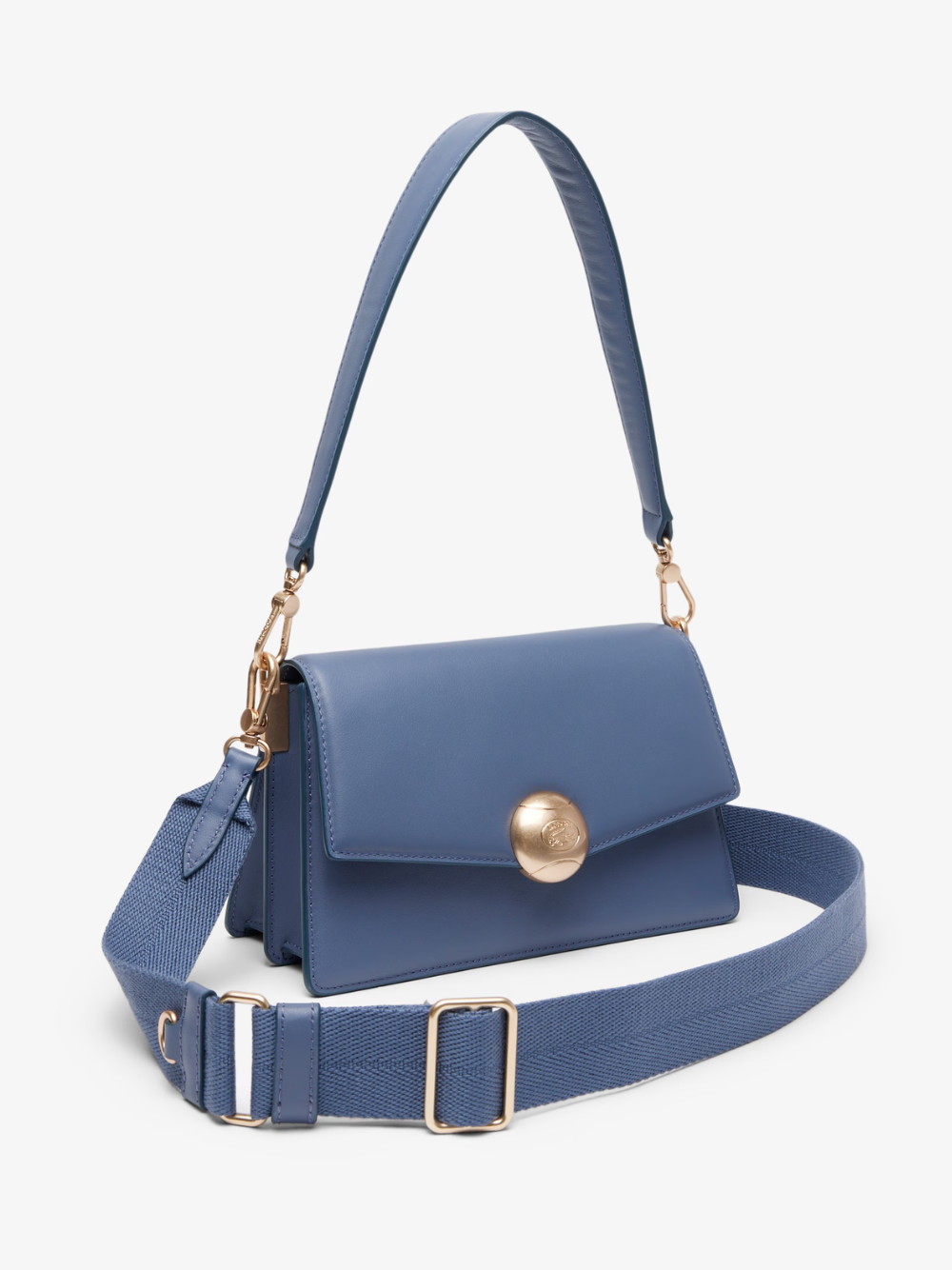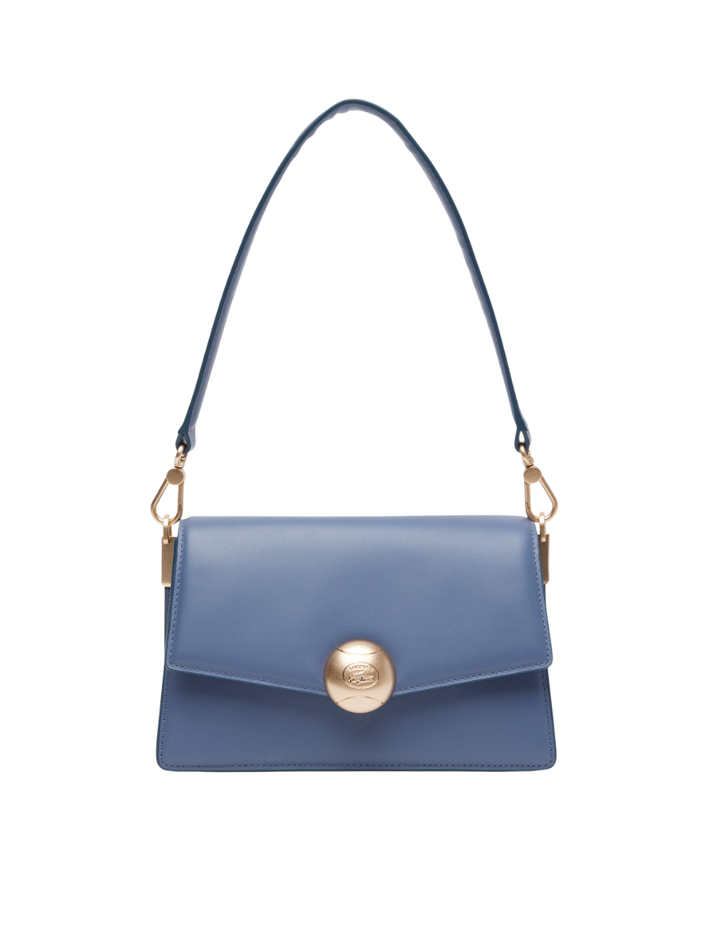 Inspired by the design of a tennis ball, the Tennis Bliss line offers a feminine approach. This elegant flap bag has an adjustable, removable shoulder strap and plenty of storage space.
