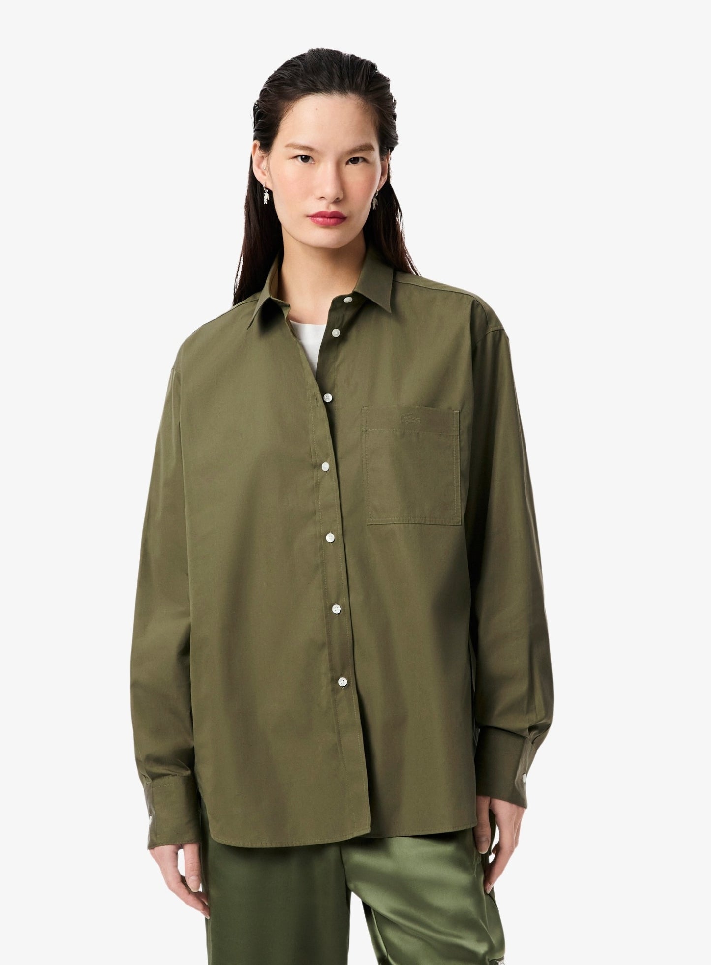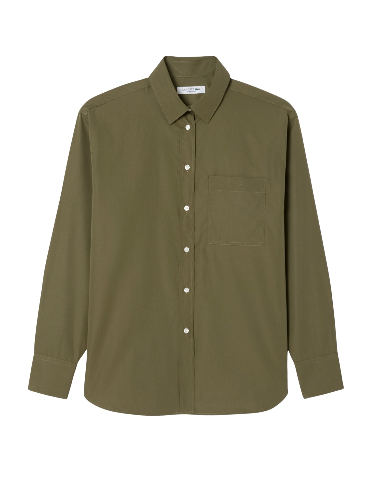 LACOSTE WOMEN Oversized Cotton Poplin Shirt Khaki Green