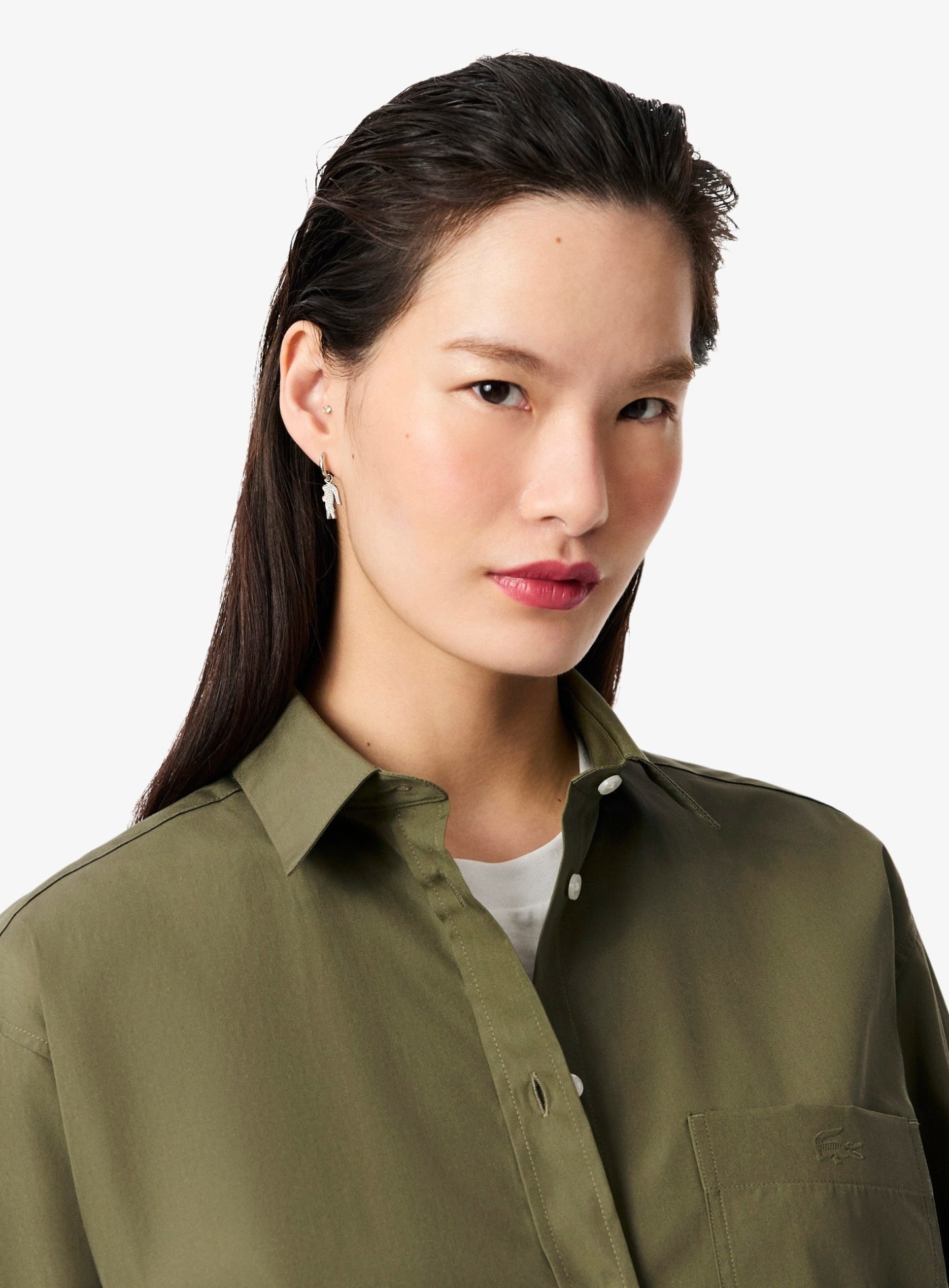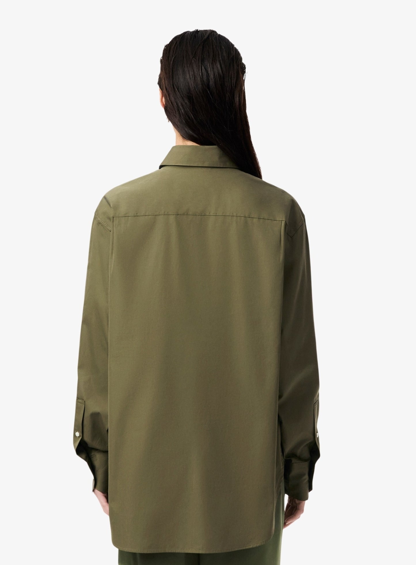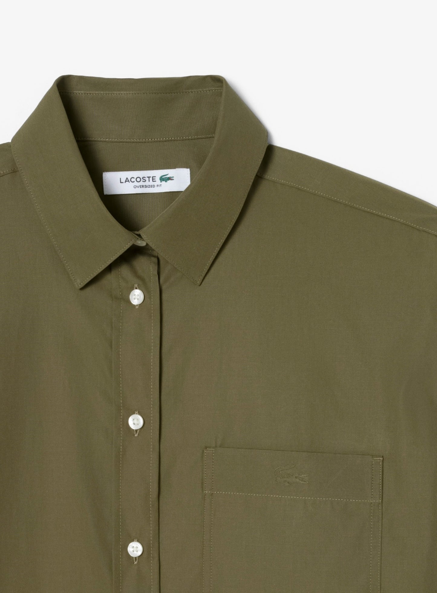السعر العادي Dhs. 448.00 AEDLACOSTE WOMEN Oversized Cotton Poplin Shirt Khaki Green