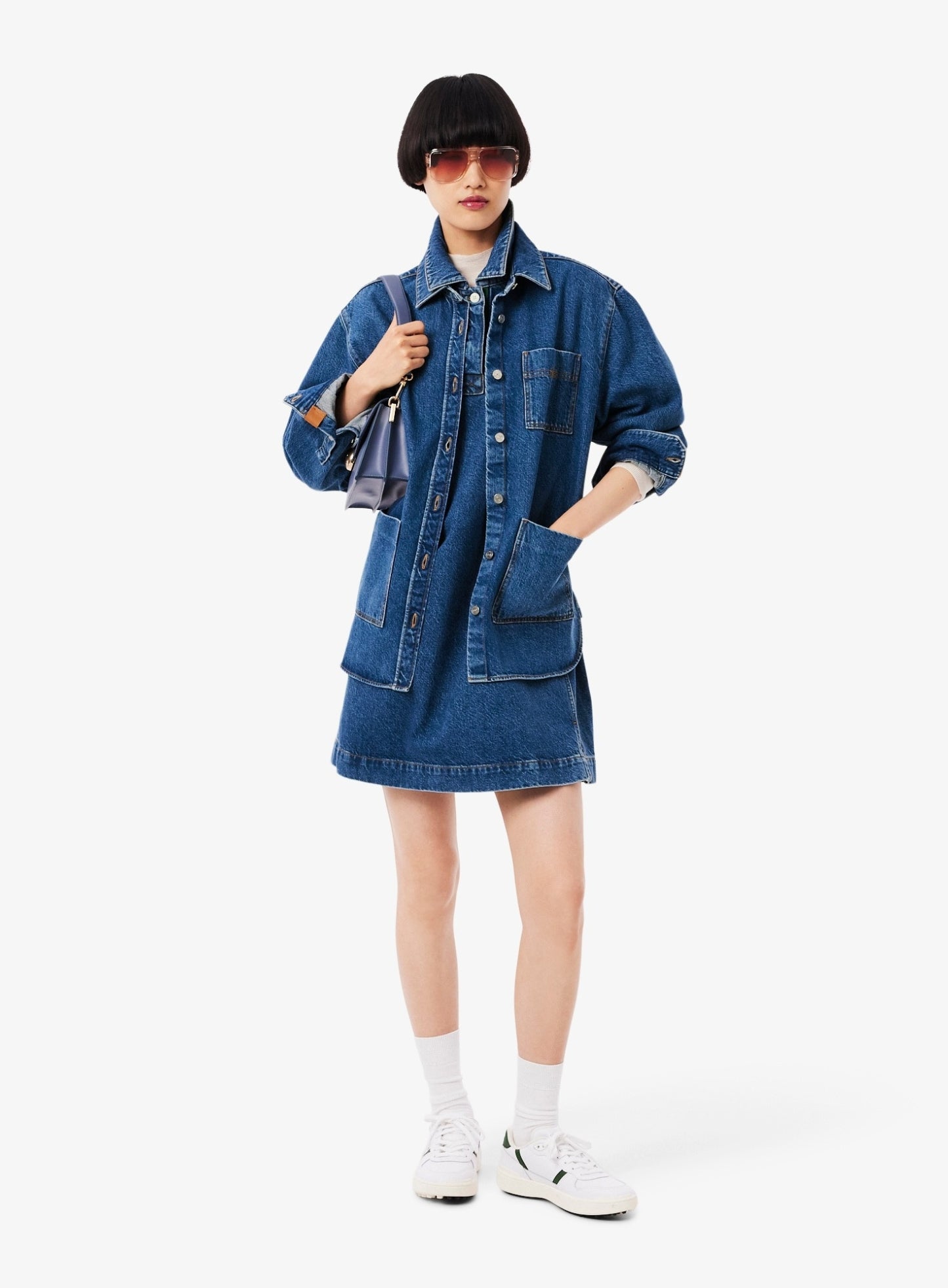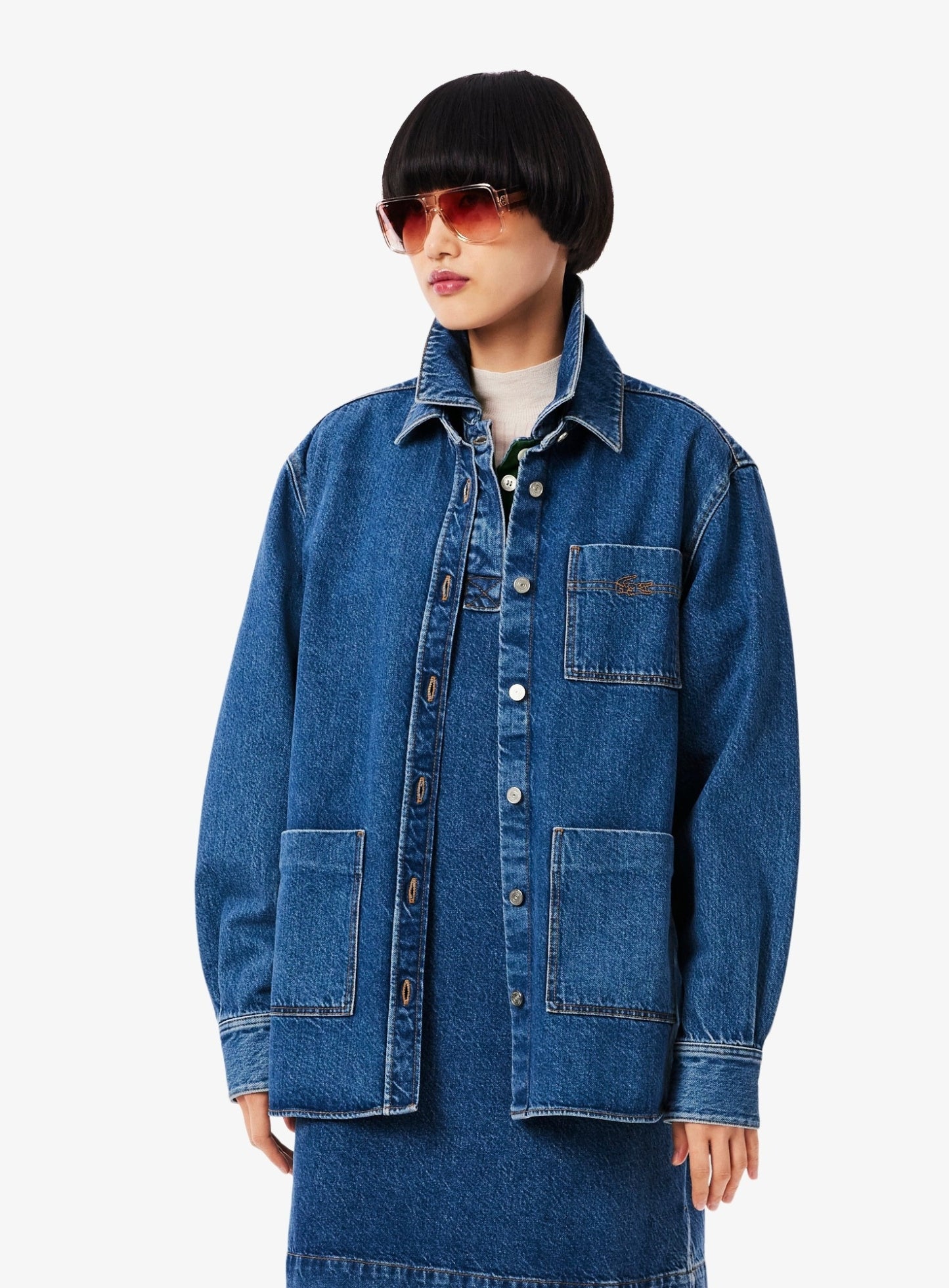 السعر العادي Dhs. 655.00 AEDLACOSTE WOMEN Oversized Denim Overshirt Blue