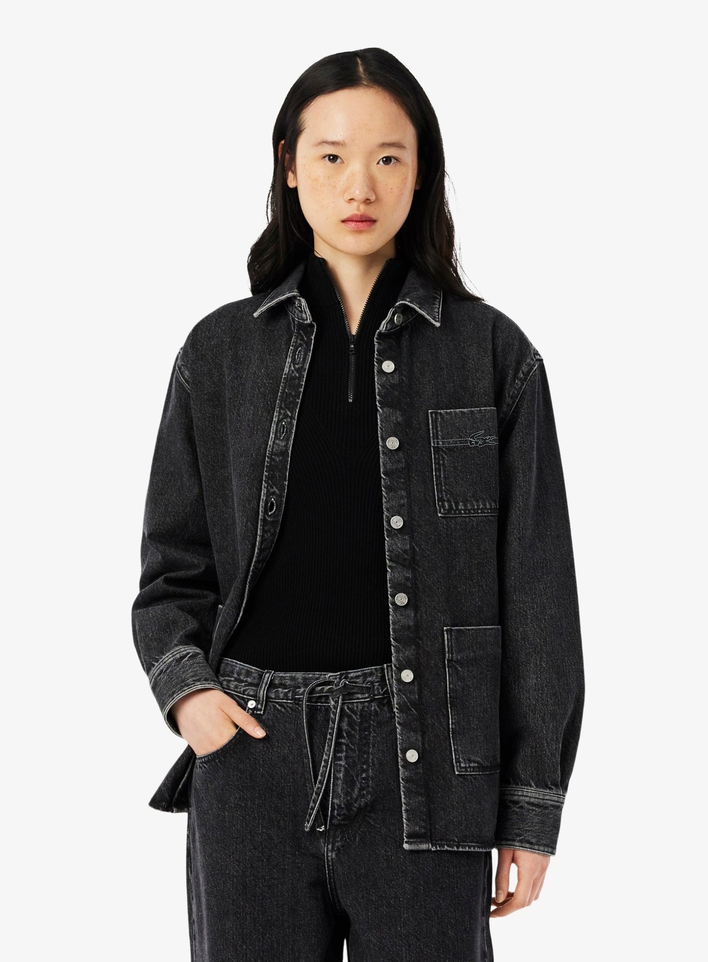 LACOSTE WOMEN Oversized Denim Overshirt Grey