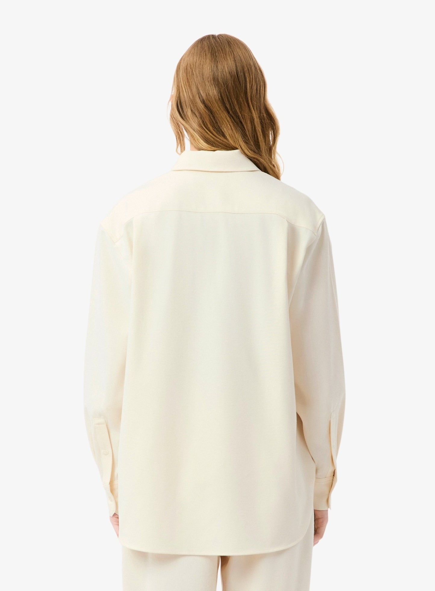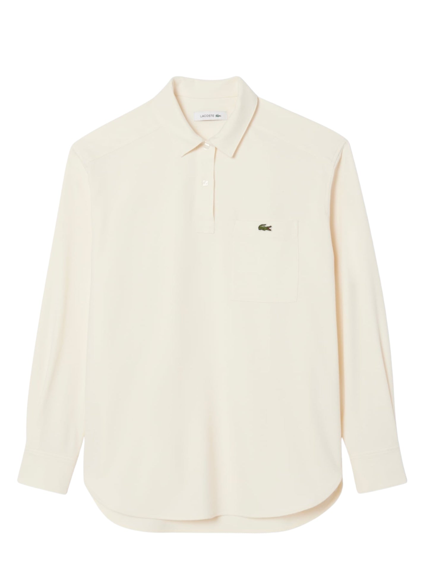 LACOSTE WOMEN Oversized Polo Style Flannel Shirt Ecru White