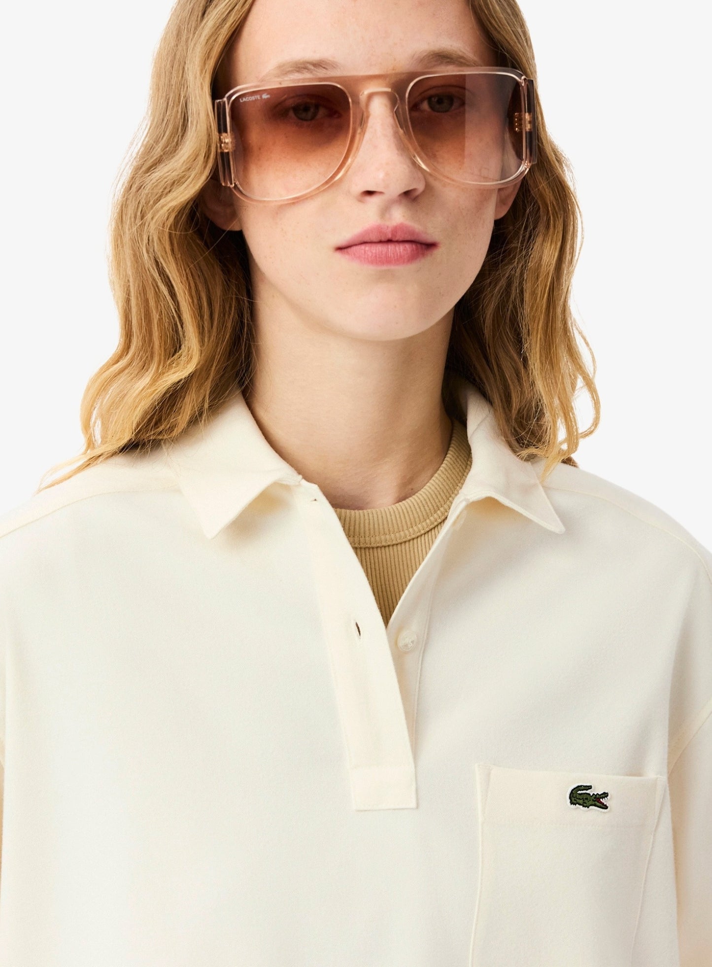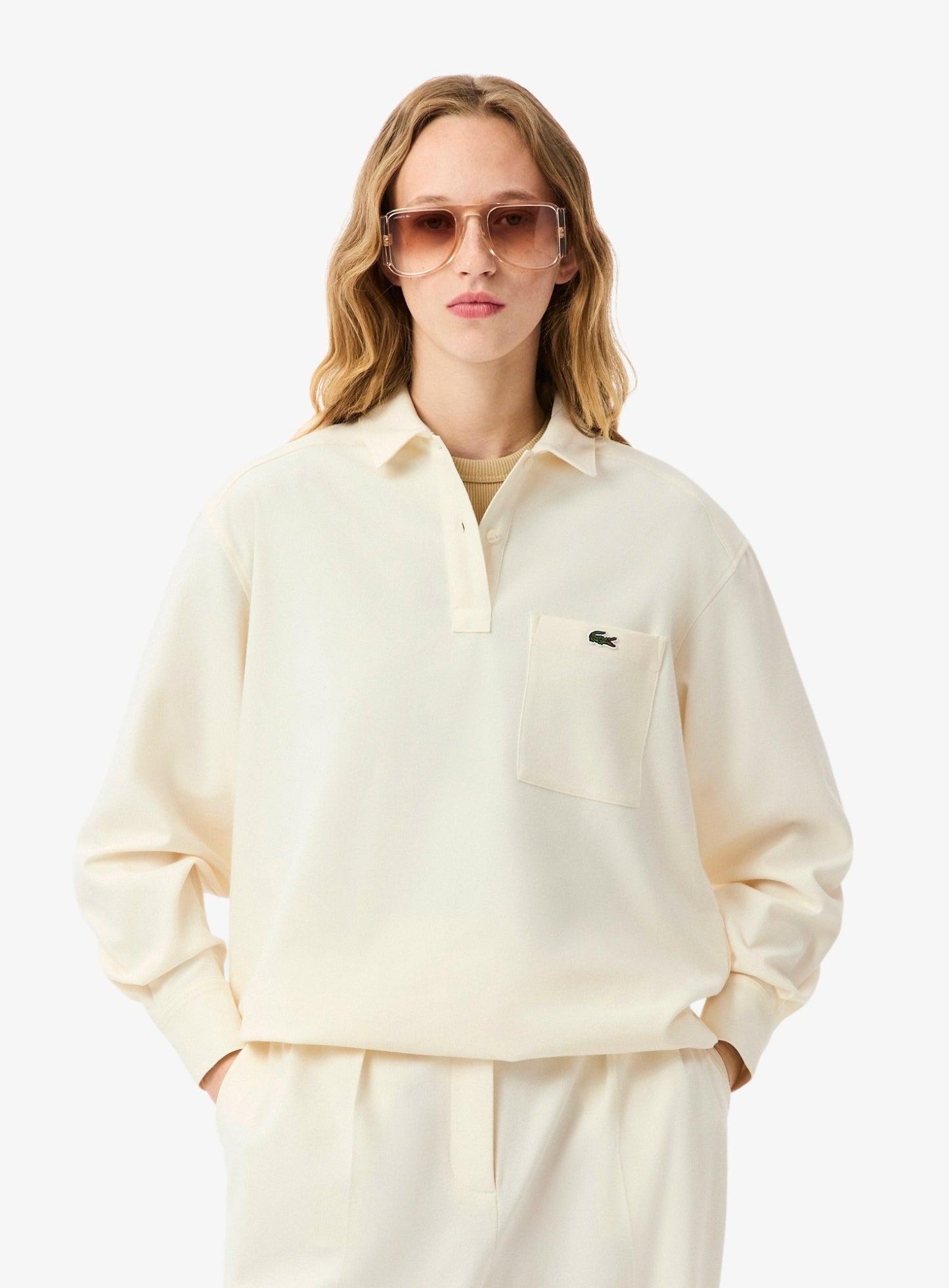 السعر العادي Dhs. 483.00 AEDLACOSTE WOMEN Oversized Polo Style Flannel Shirt Ecru White