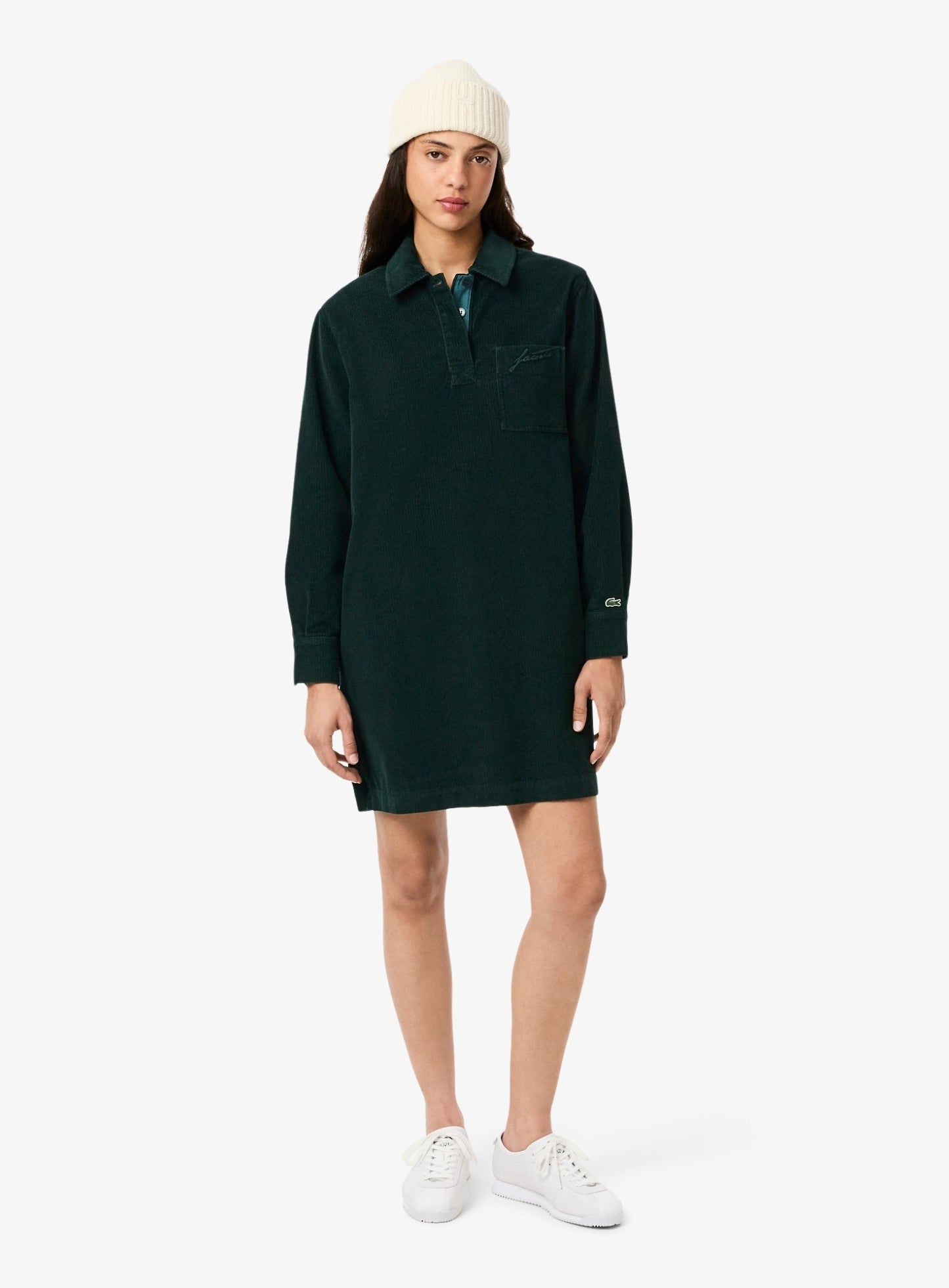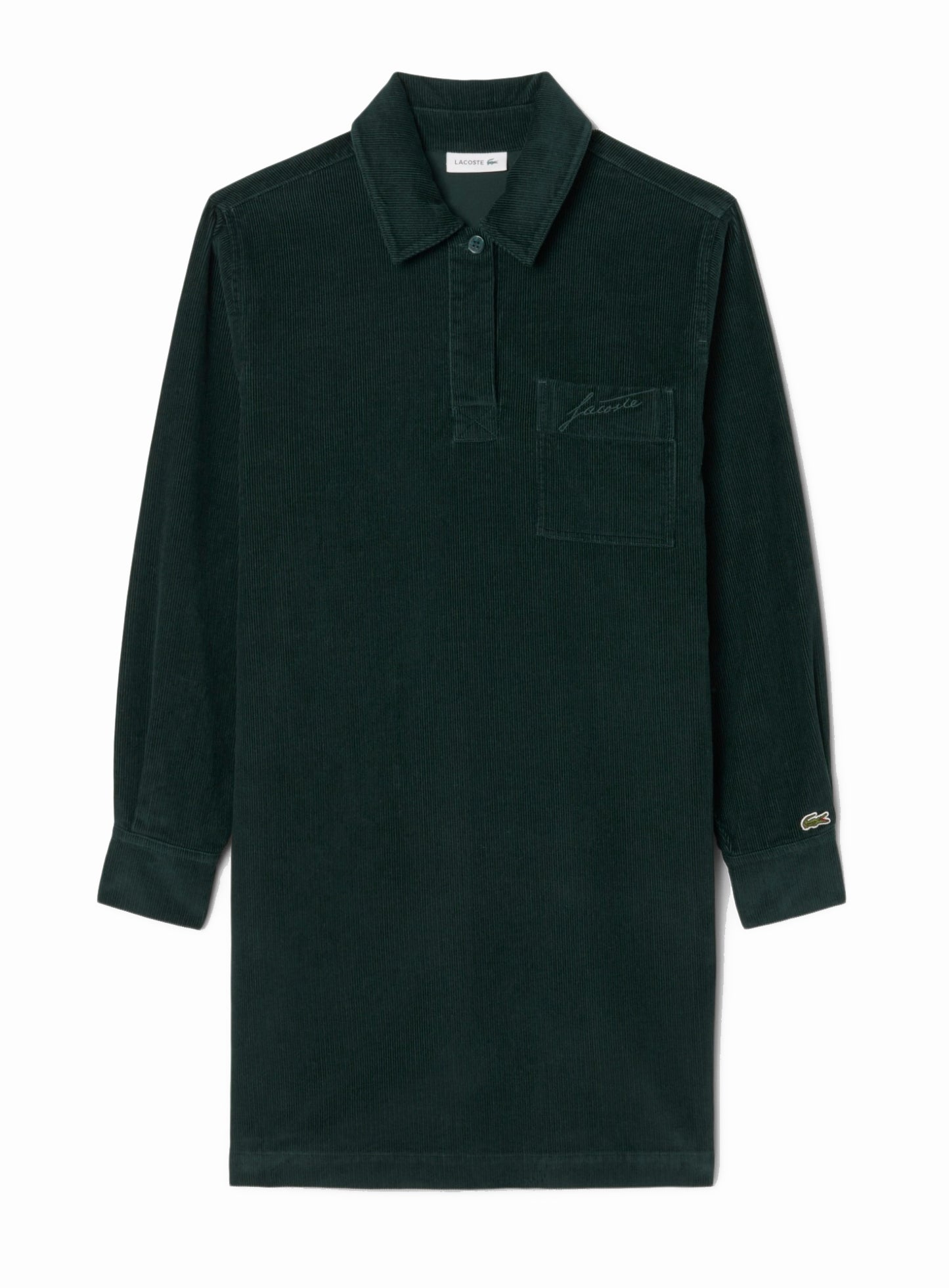 السعر العادي Dhs. 586.00 AEDLACOSTE WOMEN Oversized Velvet Polo Dress Sinople Green
