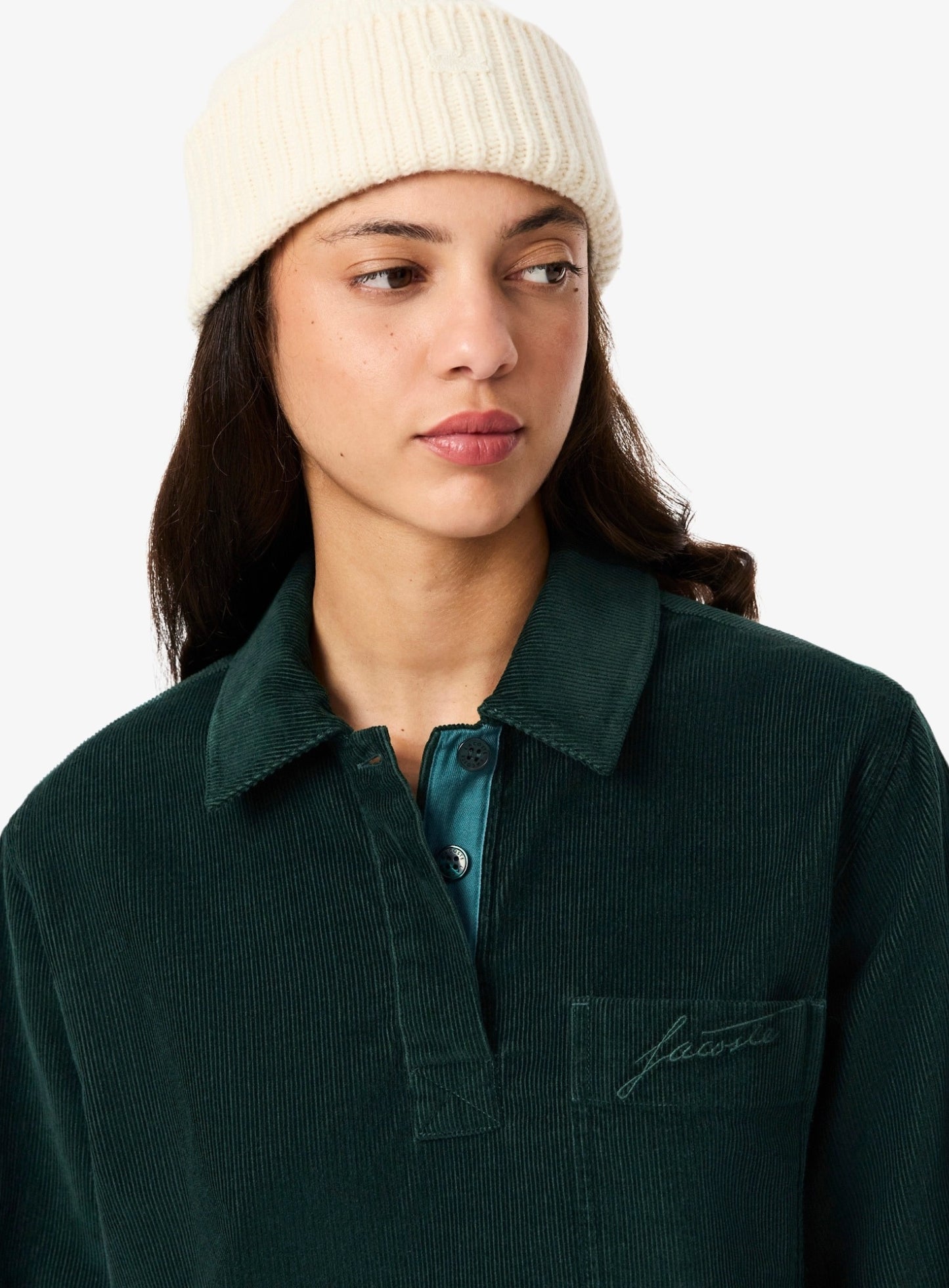 LACOSTE WOMEN Oversized Velvet Polo Dress Sinople Green