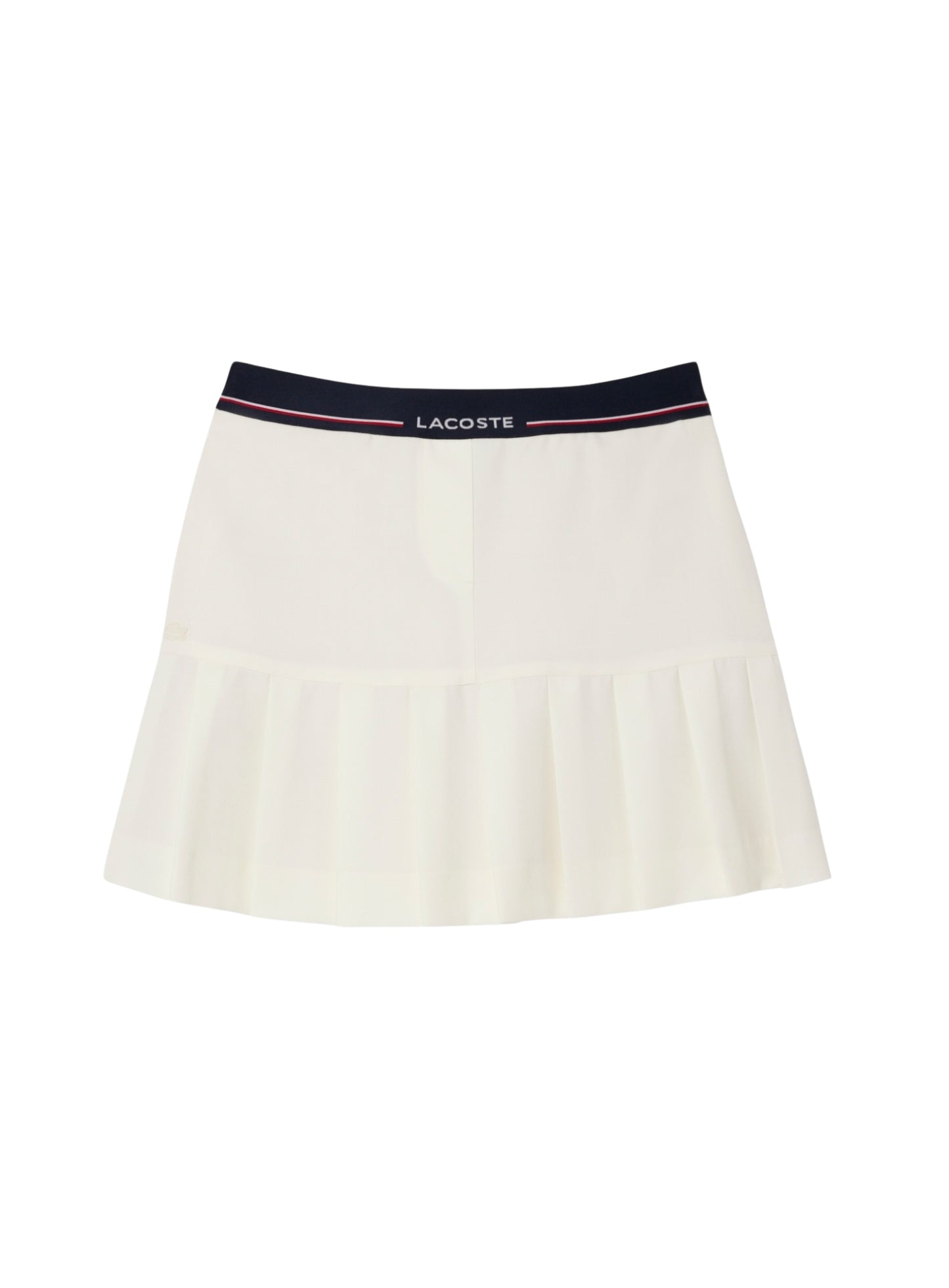LACOSTE WOMEN Short Pleated Wool Blend Skirt Ecru White