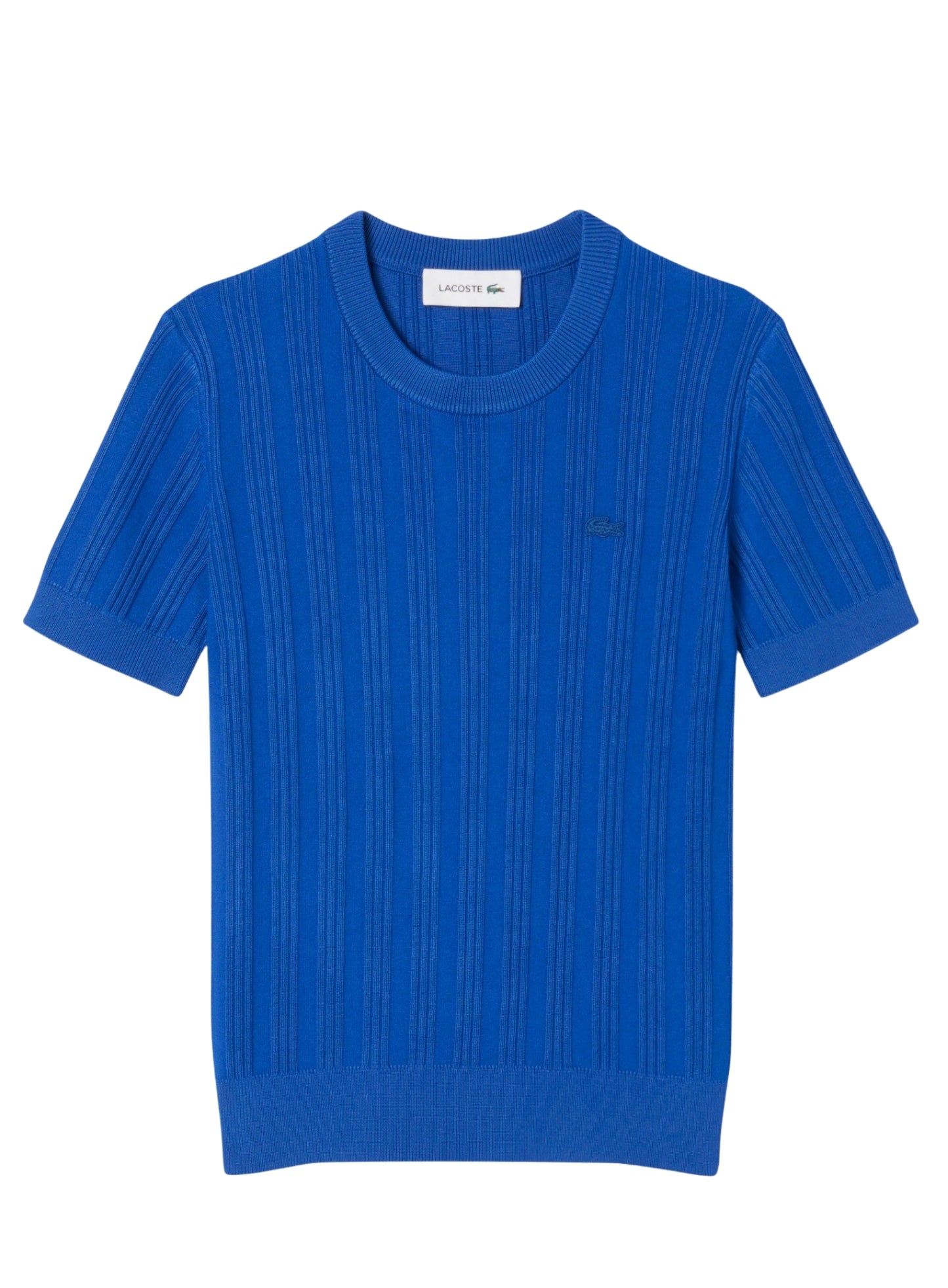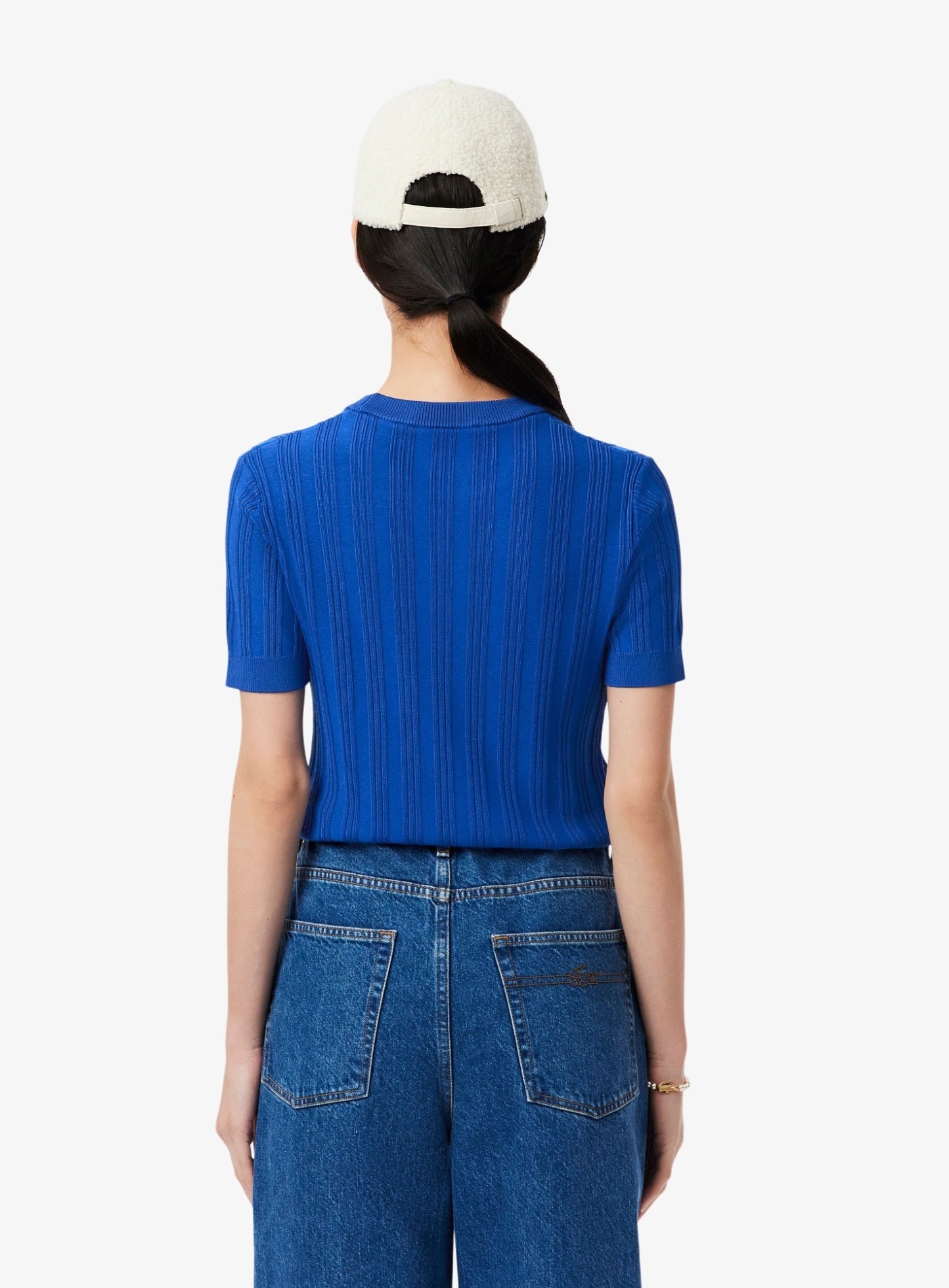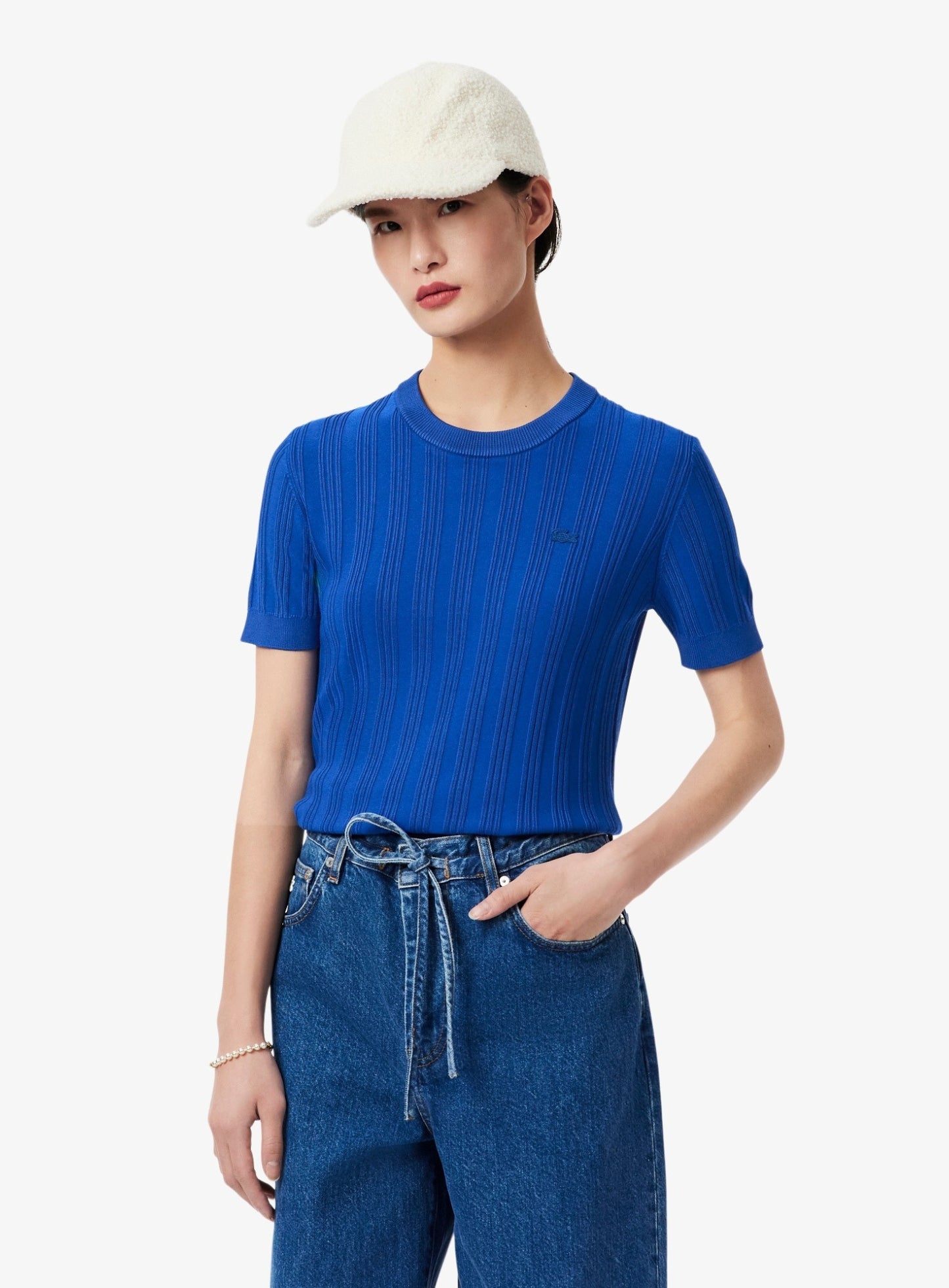 LACOSTE WOMEN Short Sleeved Rib Knit Sweater Sapphire Blue
