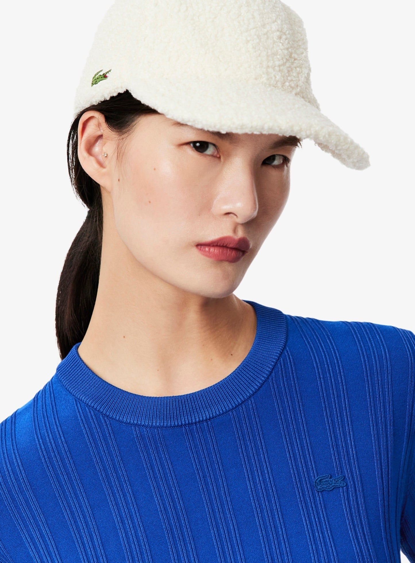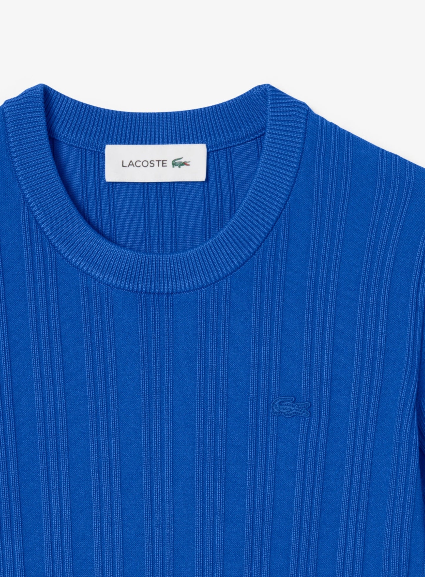 السعر العادي Dhs. 483.00 AEDLACOSTE WOMEN Short Sleeved Rib Knit Sweater Sapphire Blue