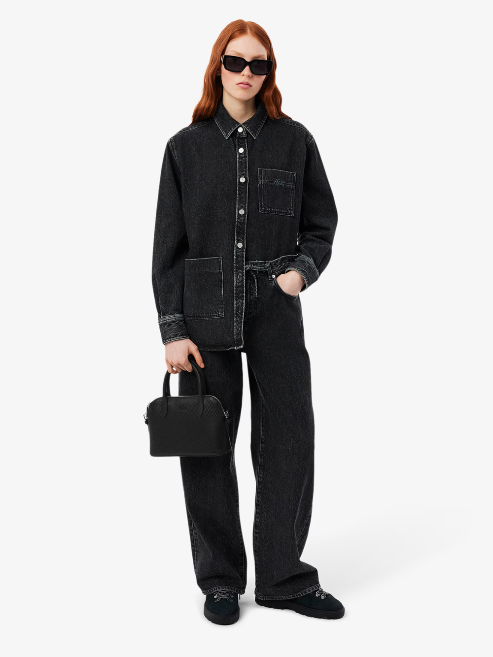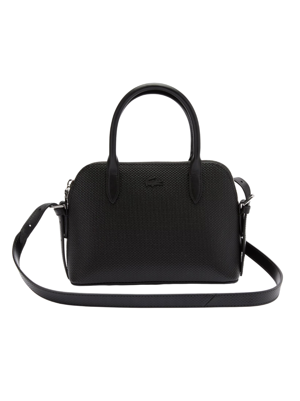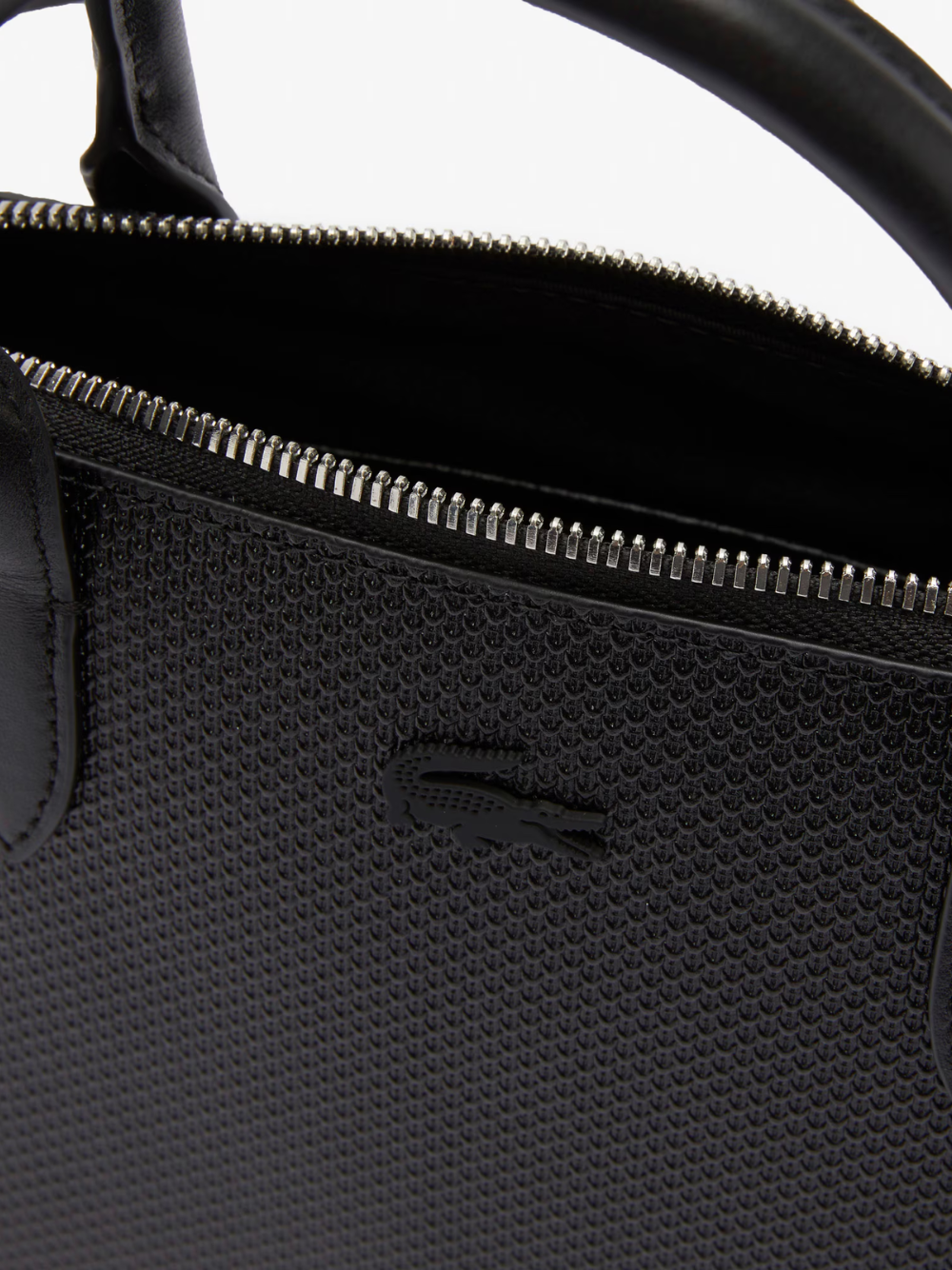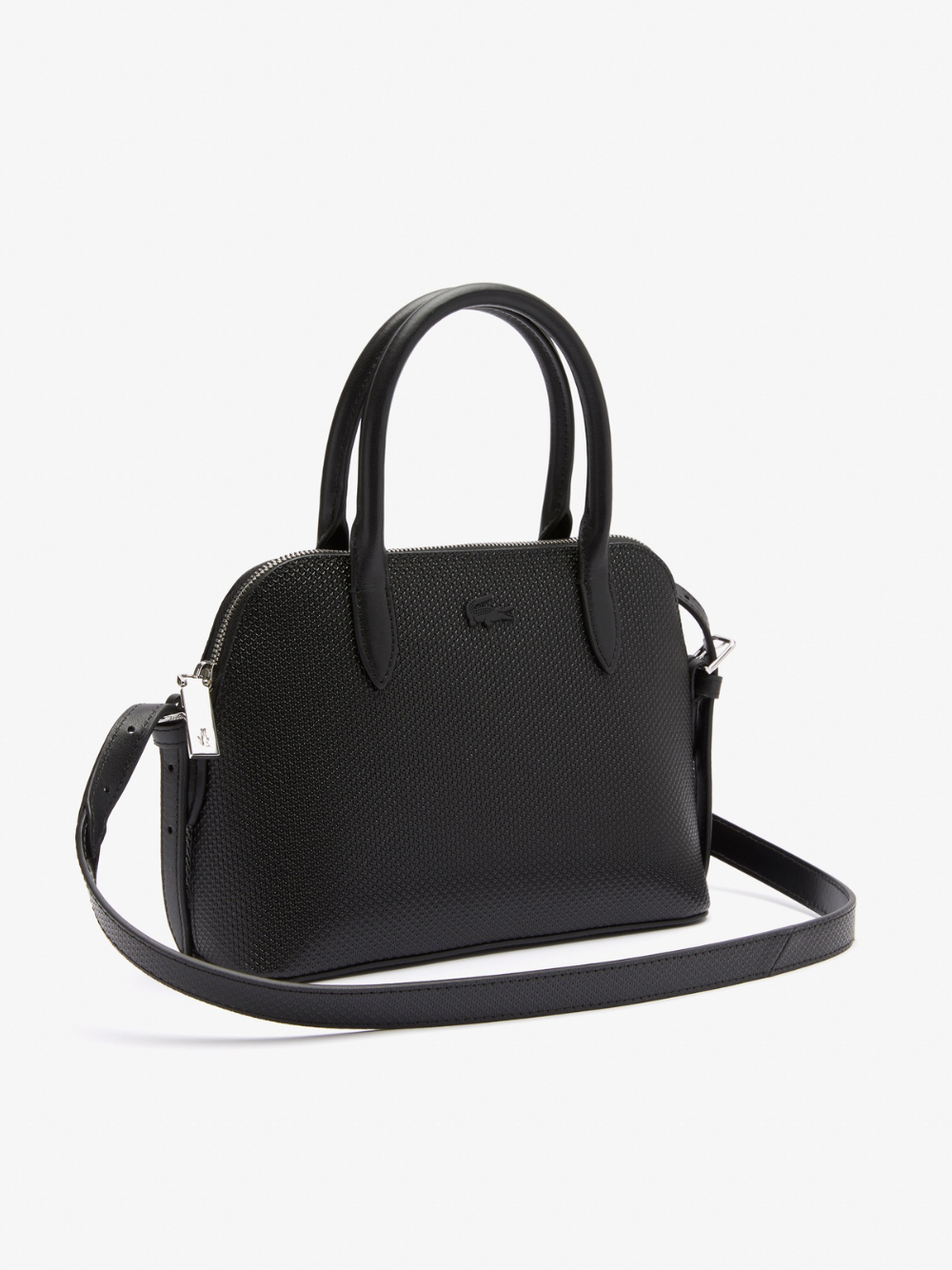 LACOSTE WOMEN Small Piqué Leather Chantaco Bugatti Bag Black