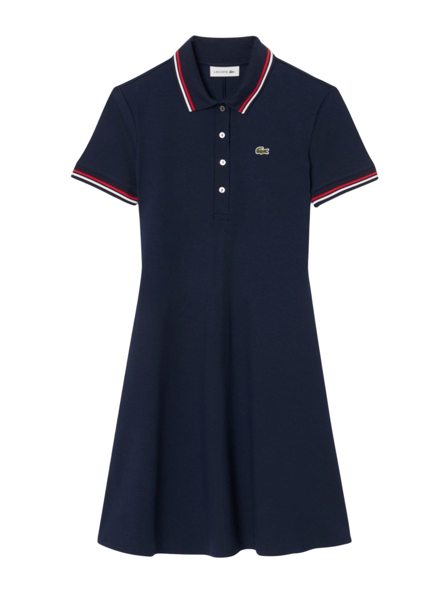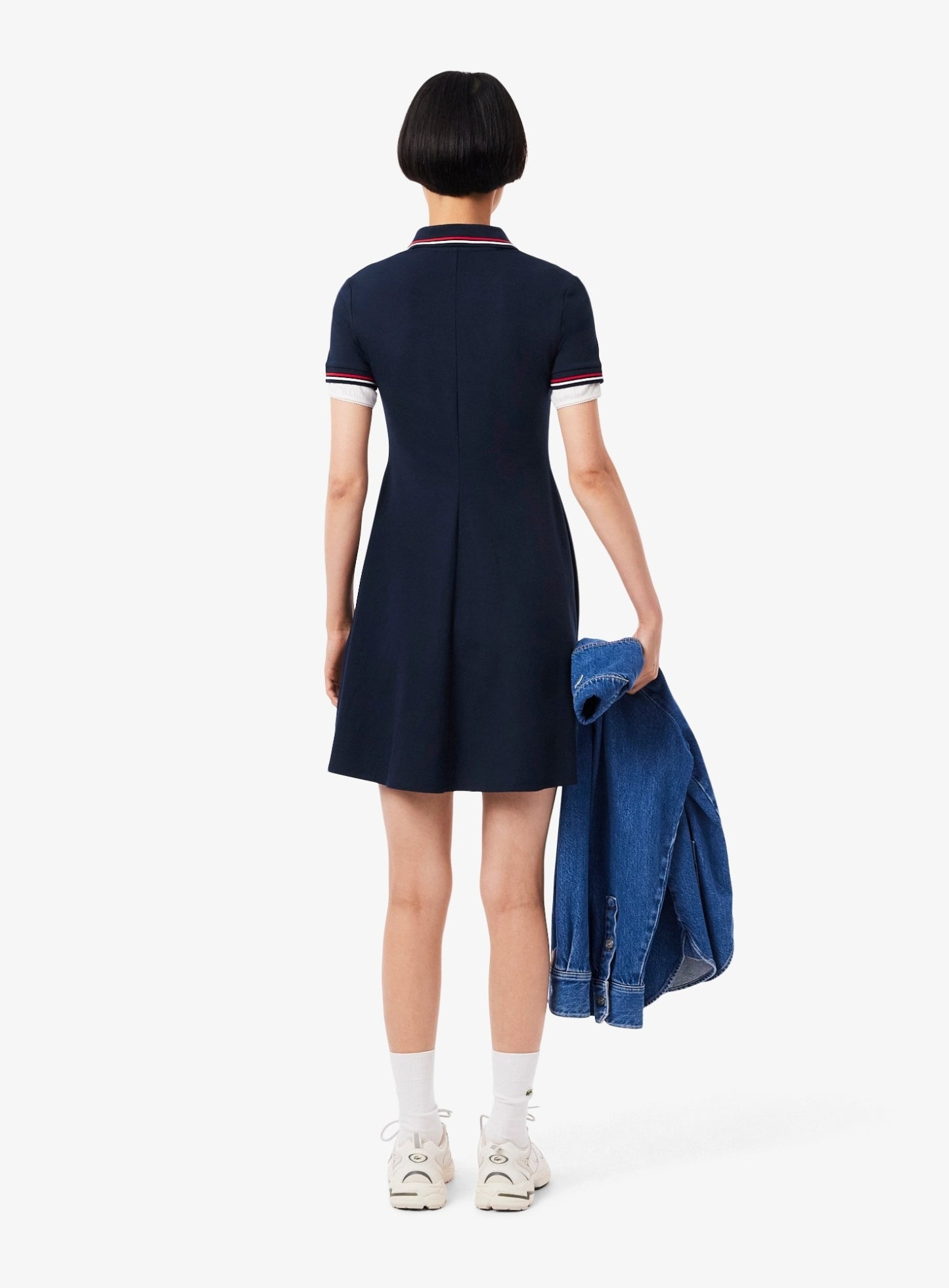 LACOSTE WOMEN Stretch Polo Collar Skater Dress Navy