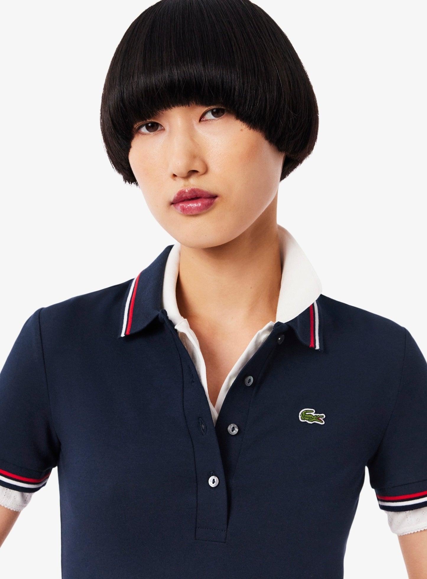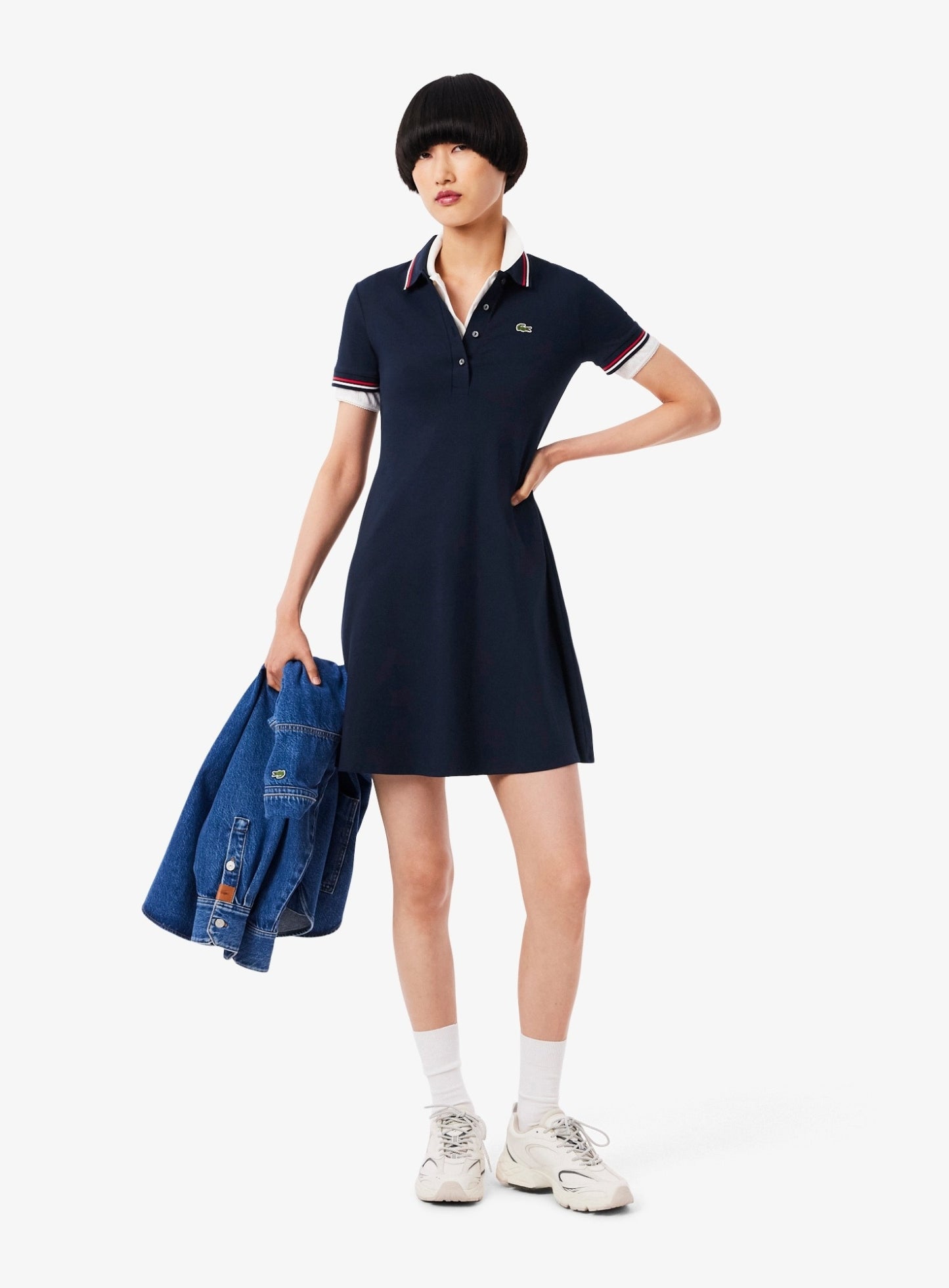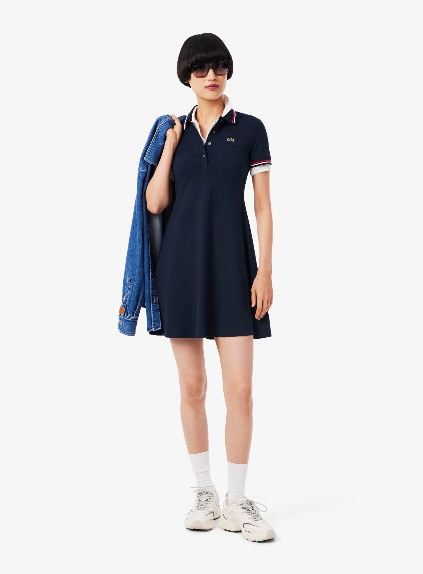 السعر العادي Dhs. 483.00 AEDLACOSTE WOMEN Stretch Polo Collar Skater Dress Navy