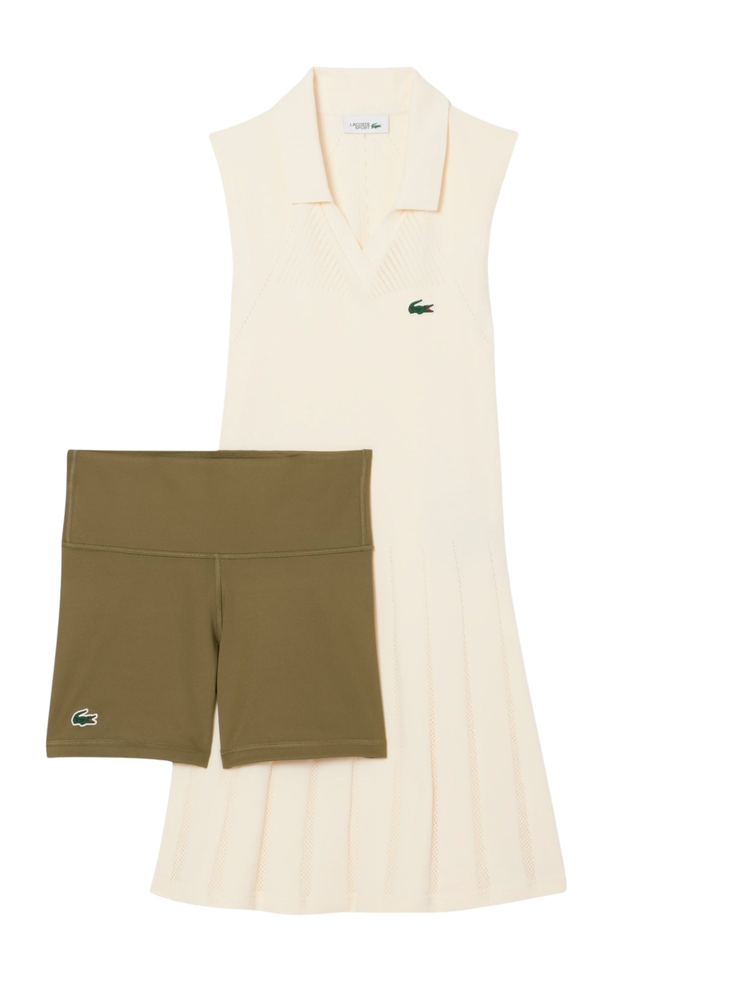 السعر العادي Dhs. 466.00 AEDLACOSTE WOMEN Stretch Tennis Dress and Shorts White Khaki Green