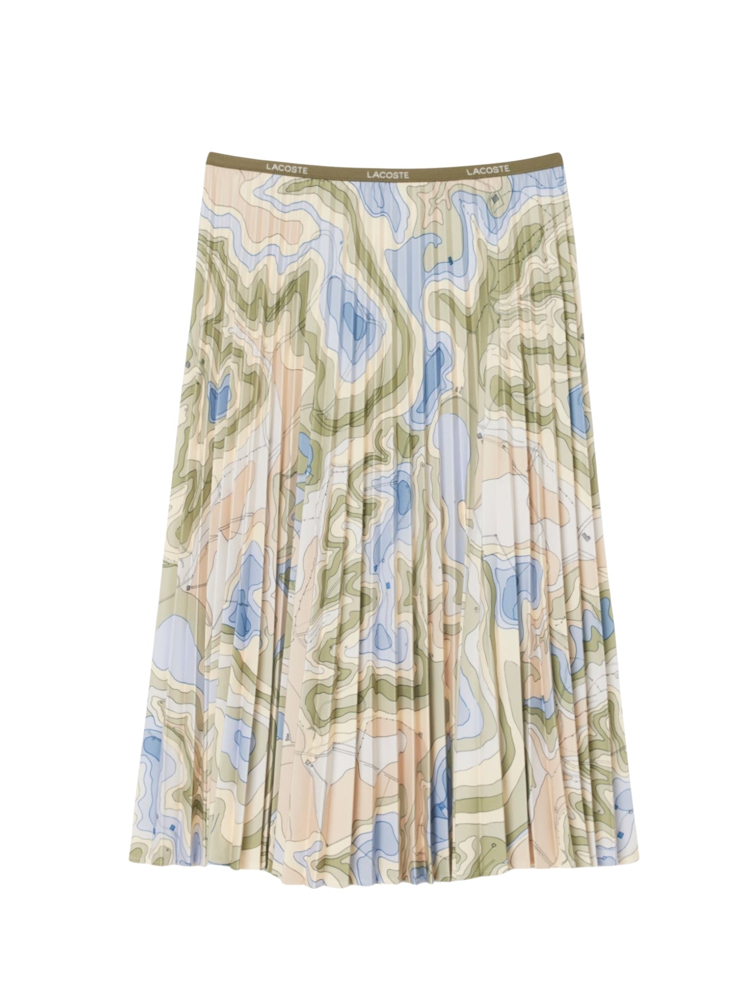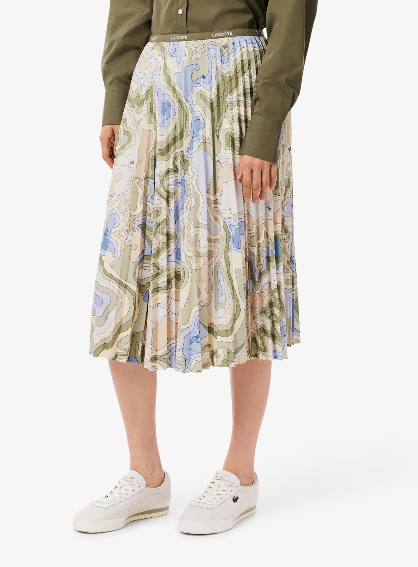LACOSTE WOMEN Topography Print Pleated Skirt White Blue